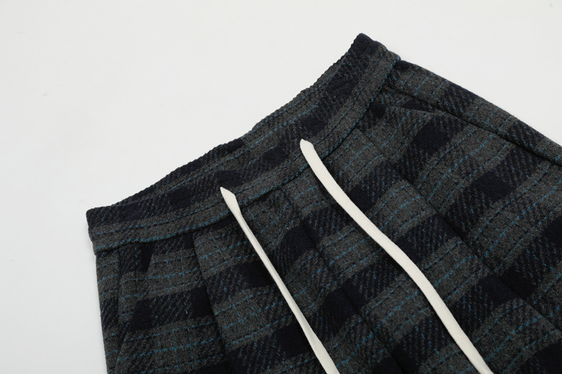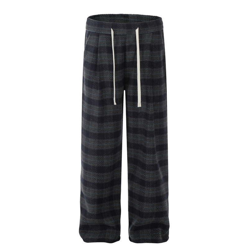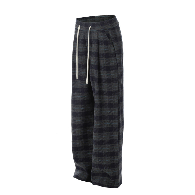 DC Loose Straight Leg Elastic Drawstring Plaid Straight Pants