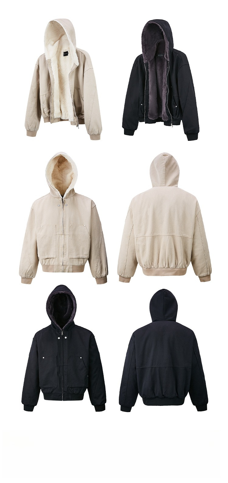 MADEEXTREME Mountain Carving Imitation Rabbit Fur Hooded Jacket Inside