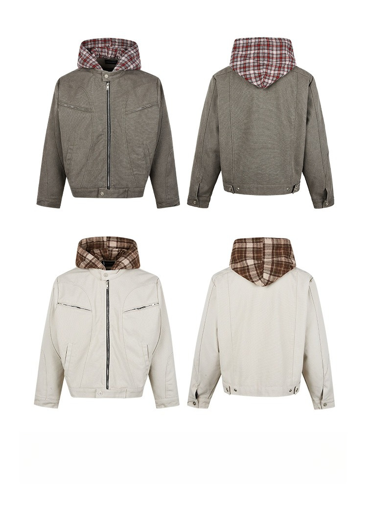 MADEEXTREME Plaid Hooded Fake Two-piece Tooling Jacket Cotton Jacket