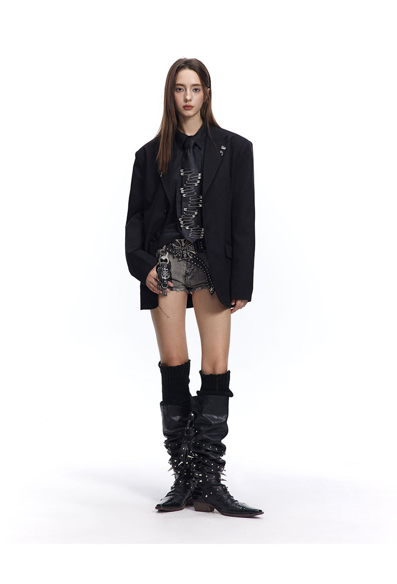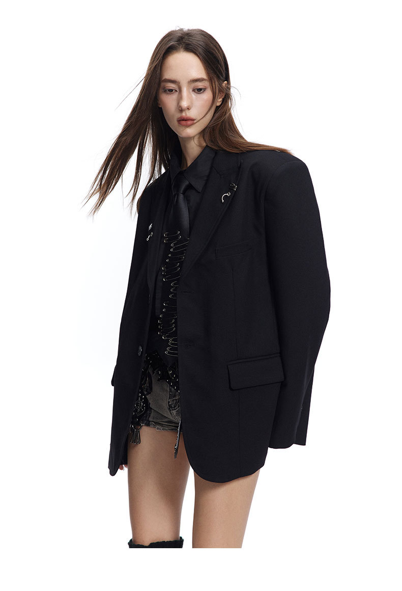 MADEEXTREME Premium Sense Loose Solid Color Suit Medium and Long Jacket