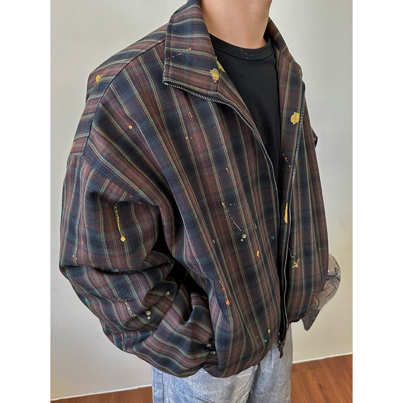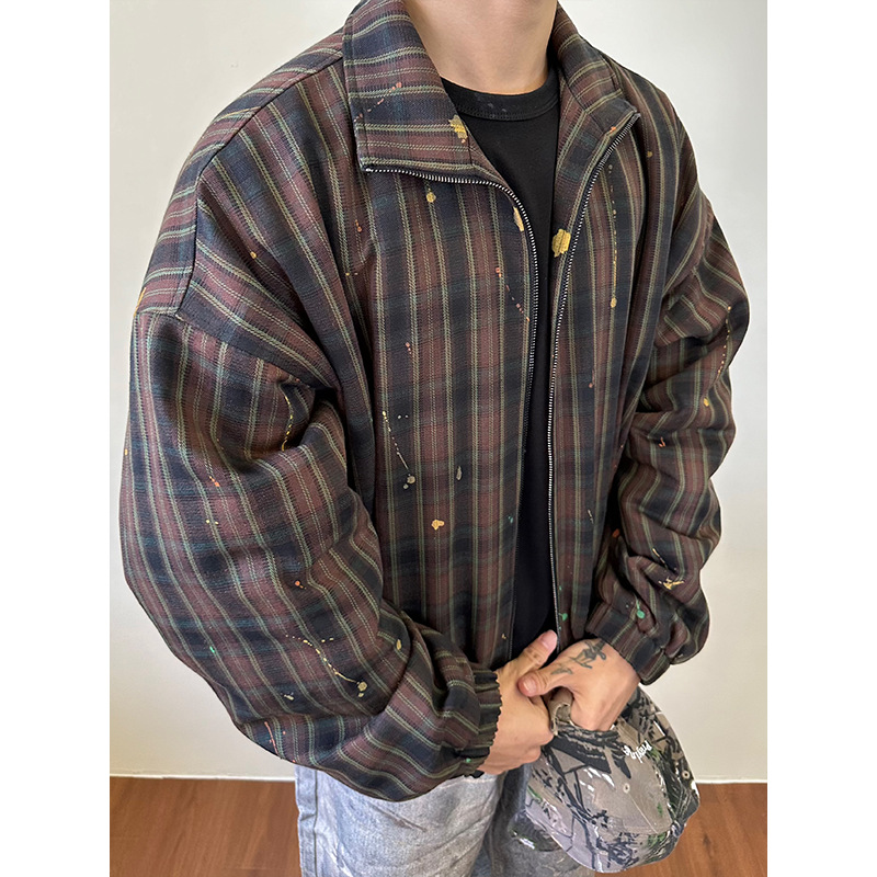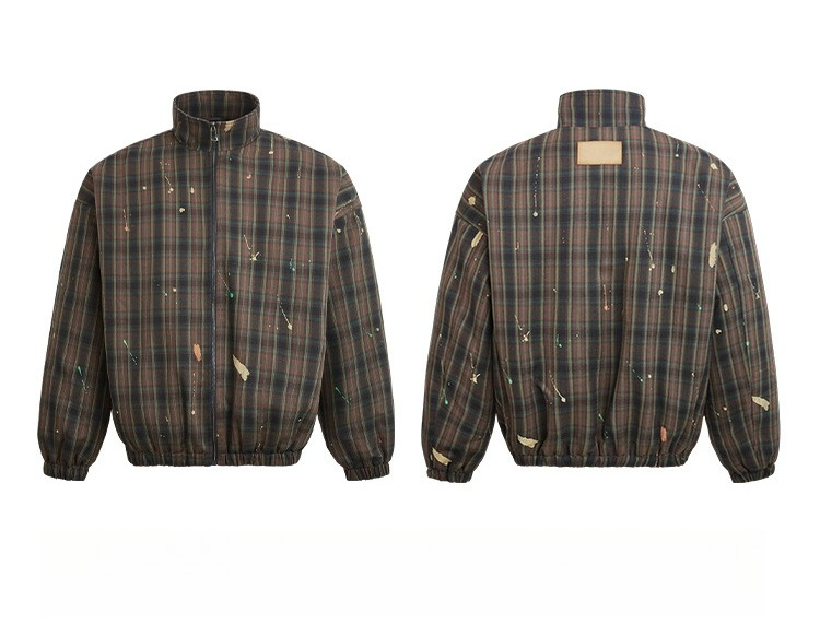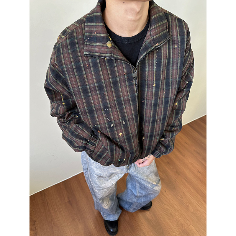 MADEEXTREME Silhouette Ink Splashing Thermal Casual Stand-up Collar Jacket Cotton Clothes
