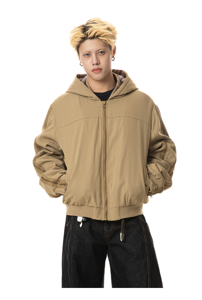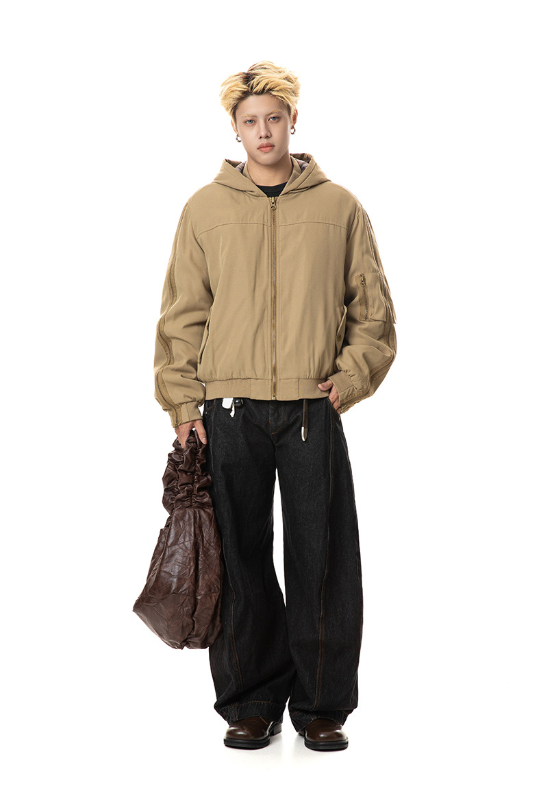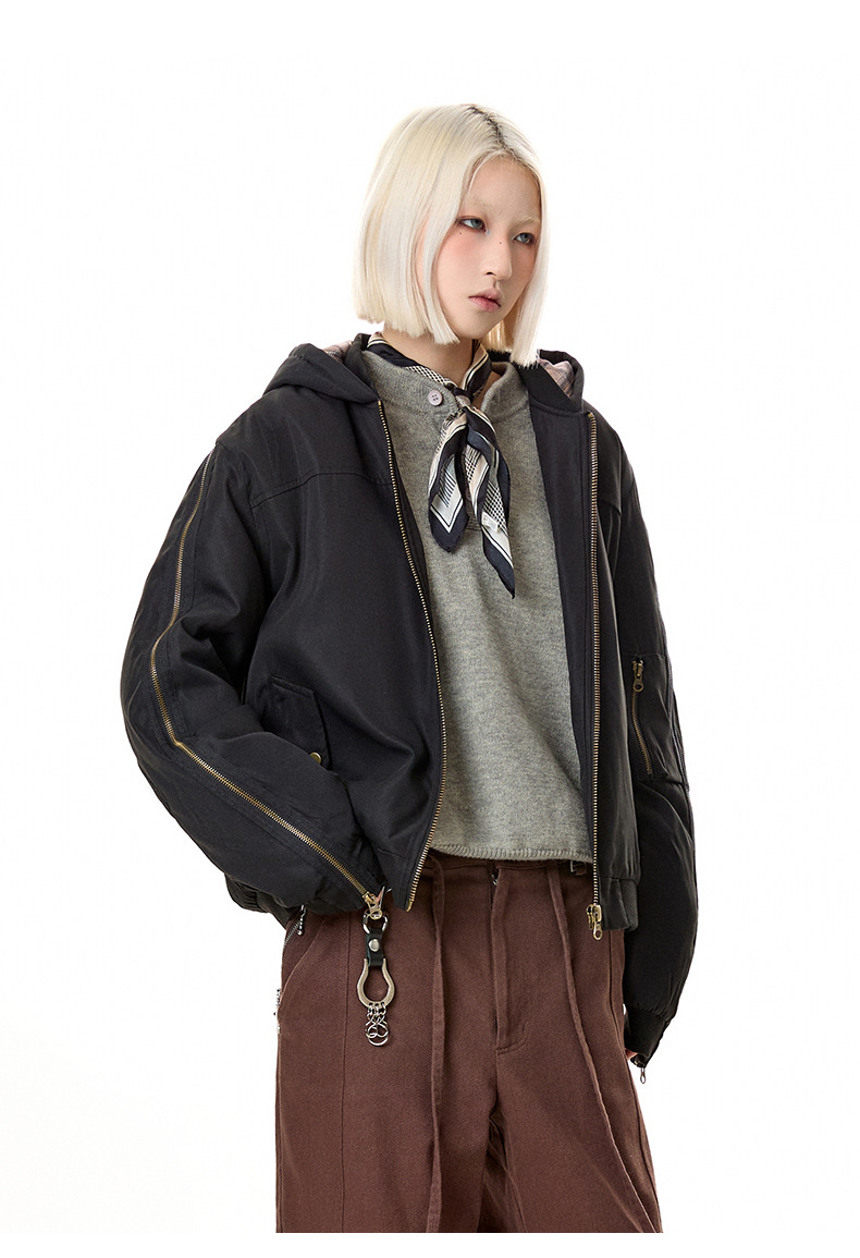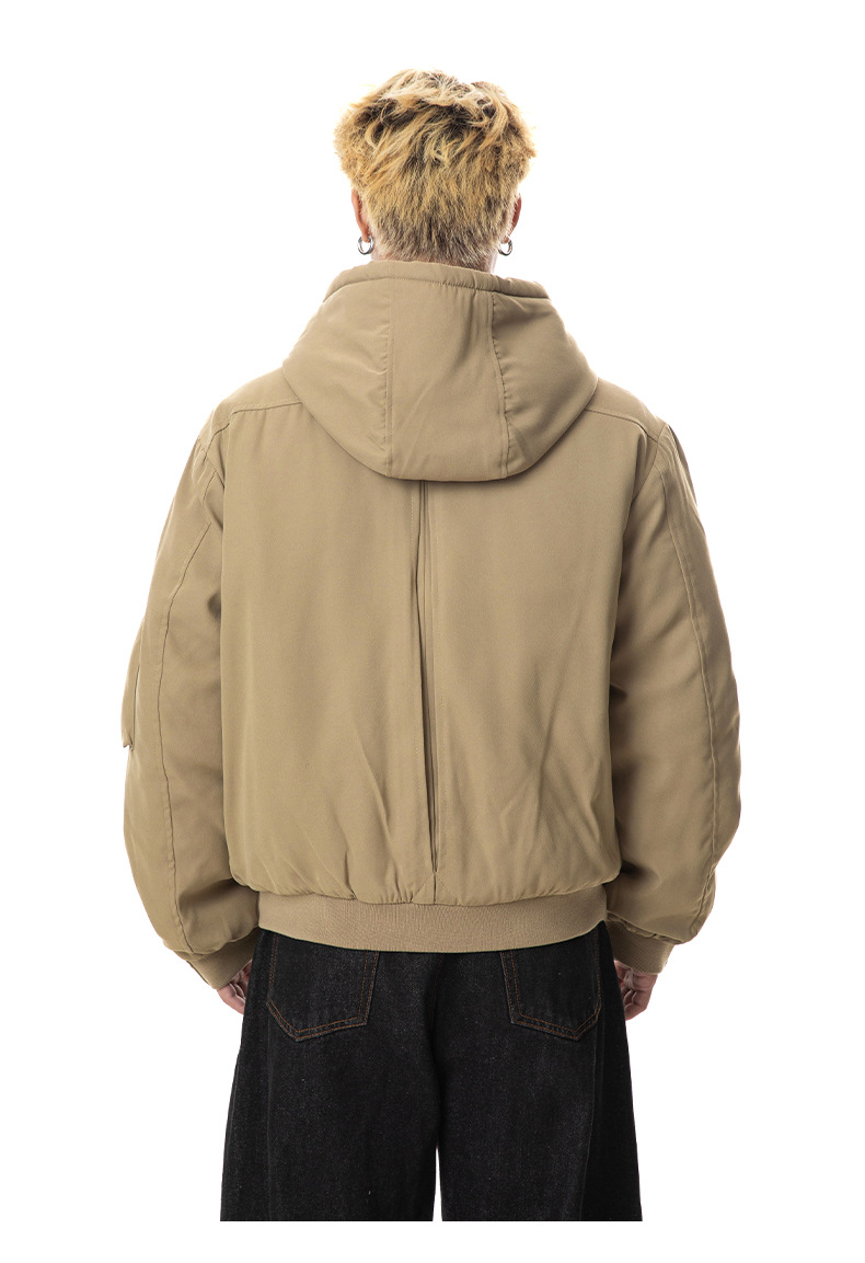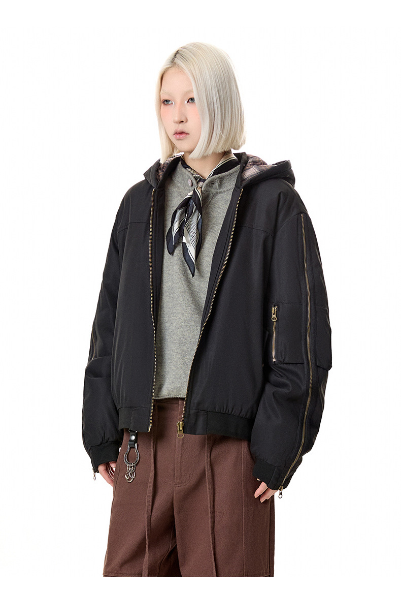 MADEEXTREME Solid Color Plaid Hooded MA1 Thickened Cotton Jacket