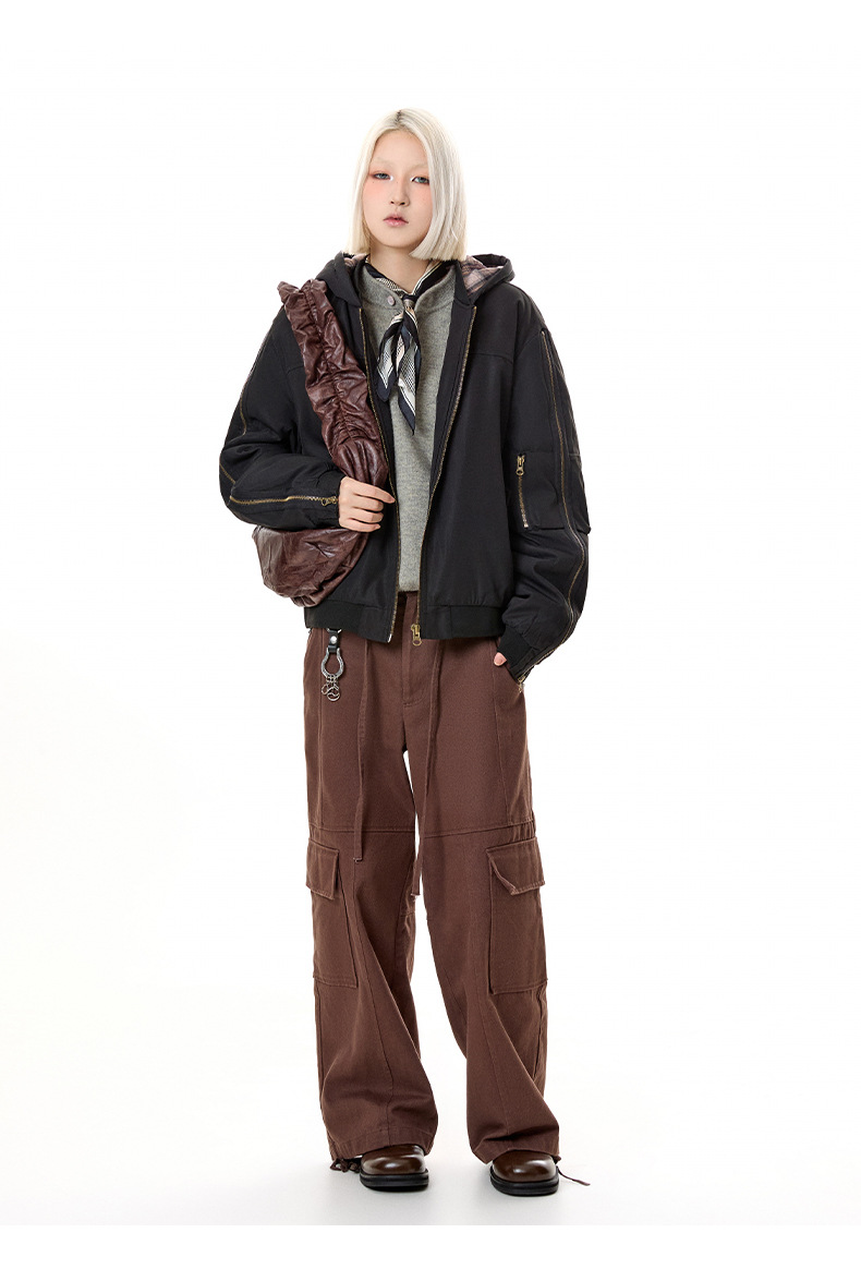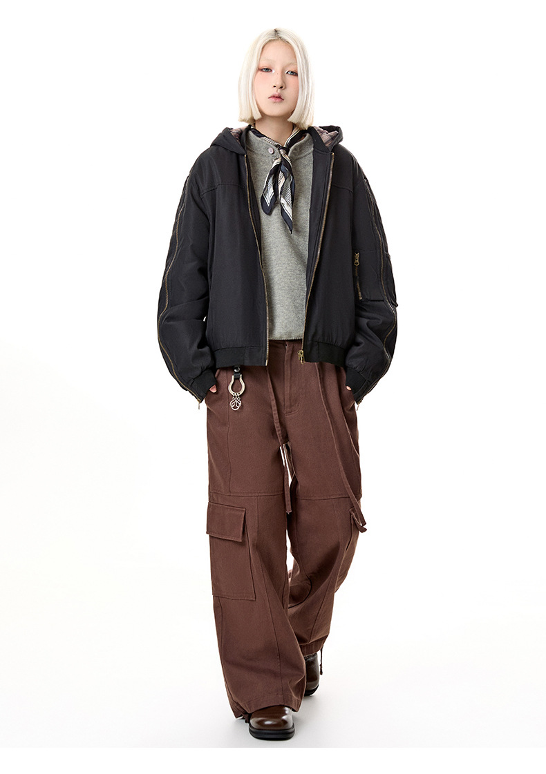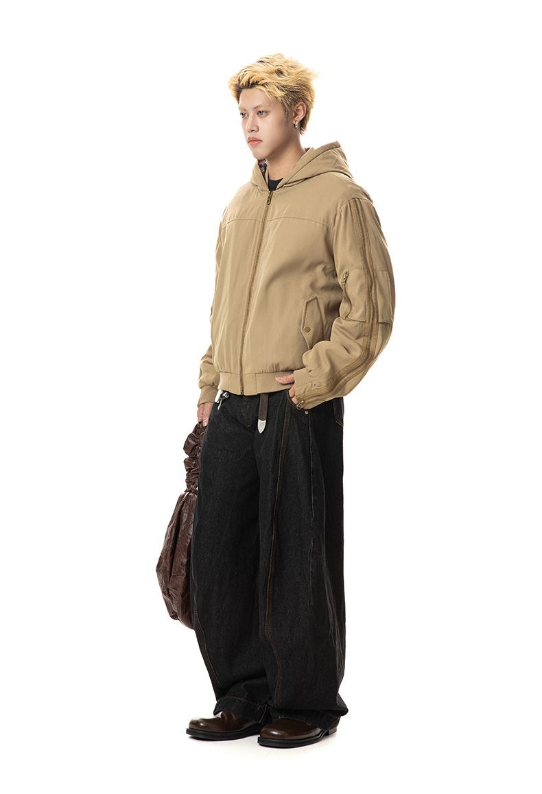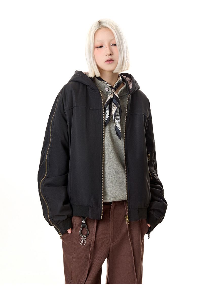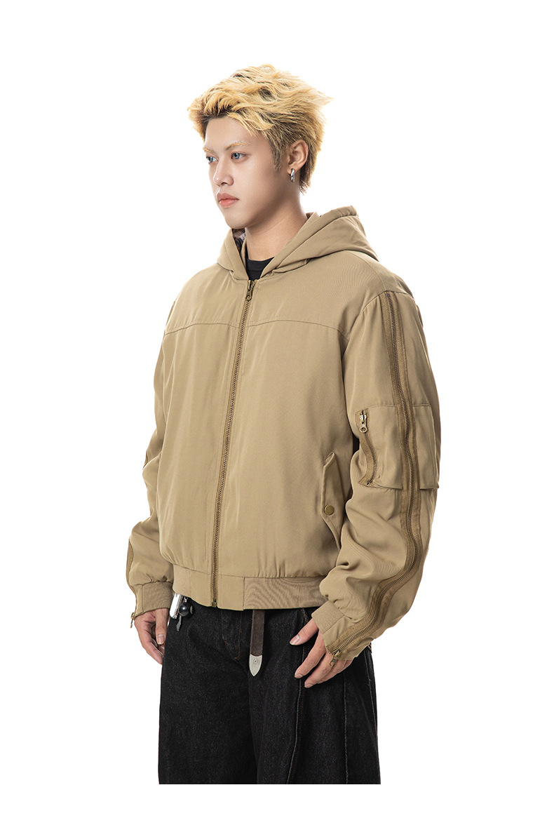 MADEEXTREME Solid Color Plaid Hooded MA1 Thickened Cotton Jacket