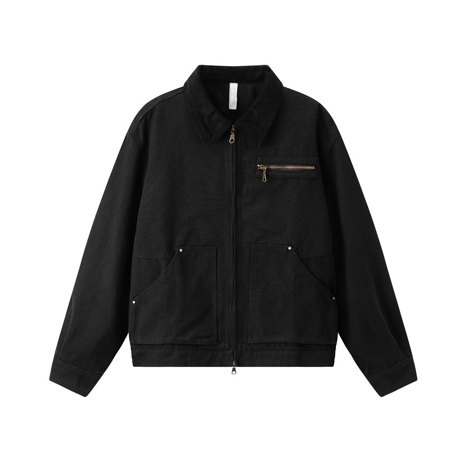 Introducing our Vintage All-Cotton Detroit Jacket, a stylish and versatile canvas jacket designed to elevate your wardrobe. This loose-fitting outerwear piece combines timeless appeal with modern sensibilities, making it a must-have for fashion enthusiasts.