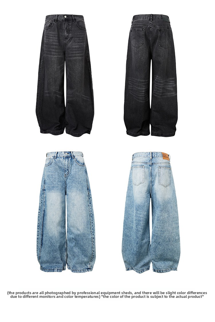 MADEEXTREME Vintage Baggy Cat Whiskers Niche Washed Old Loose Wide Leg Jeans