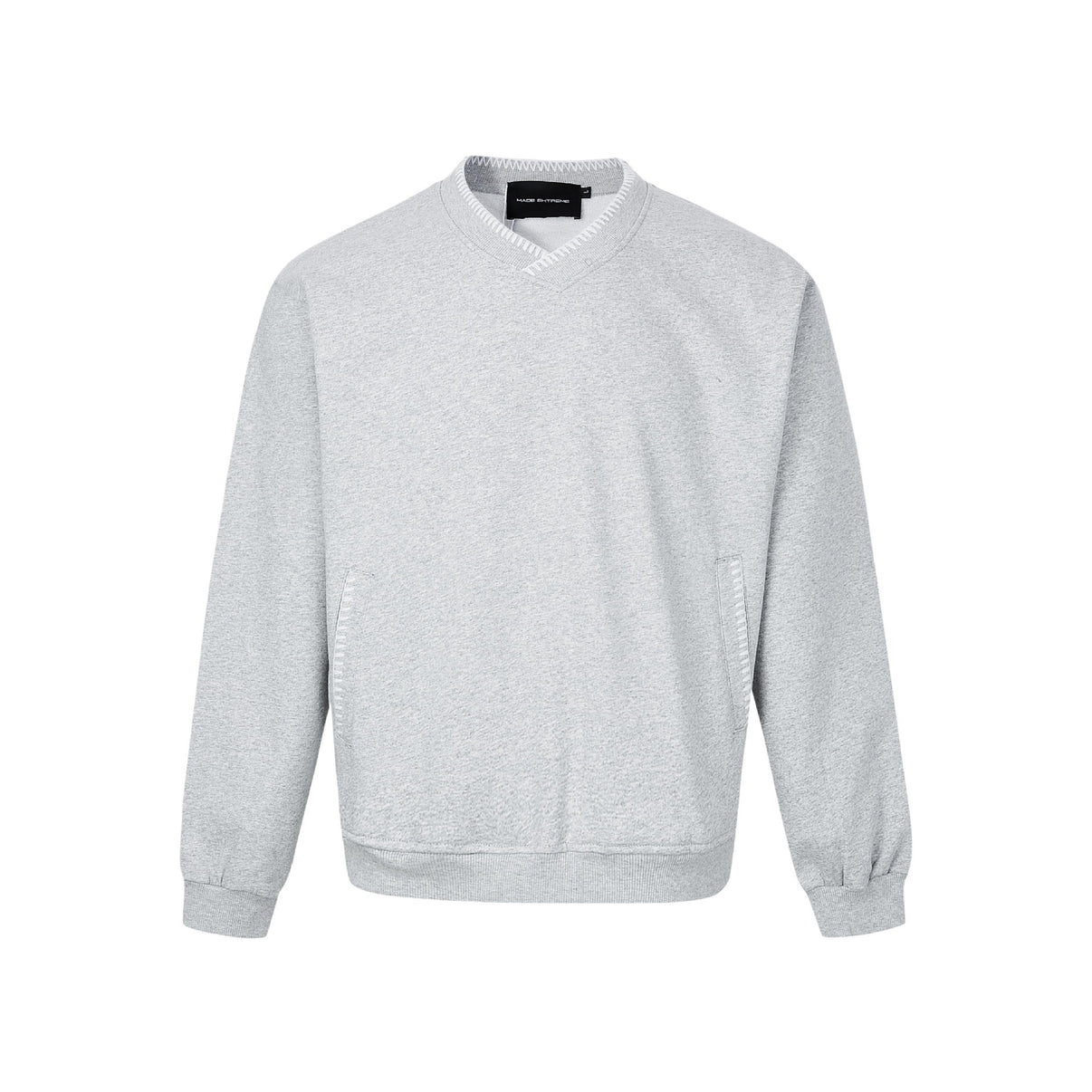 MADEEXTREME V-neck Beaded Edge Embroidered Thermal Long Sleeve Sweatshirt