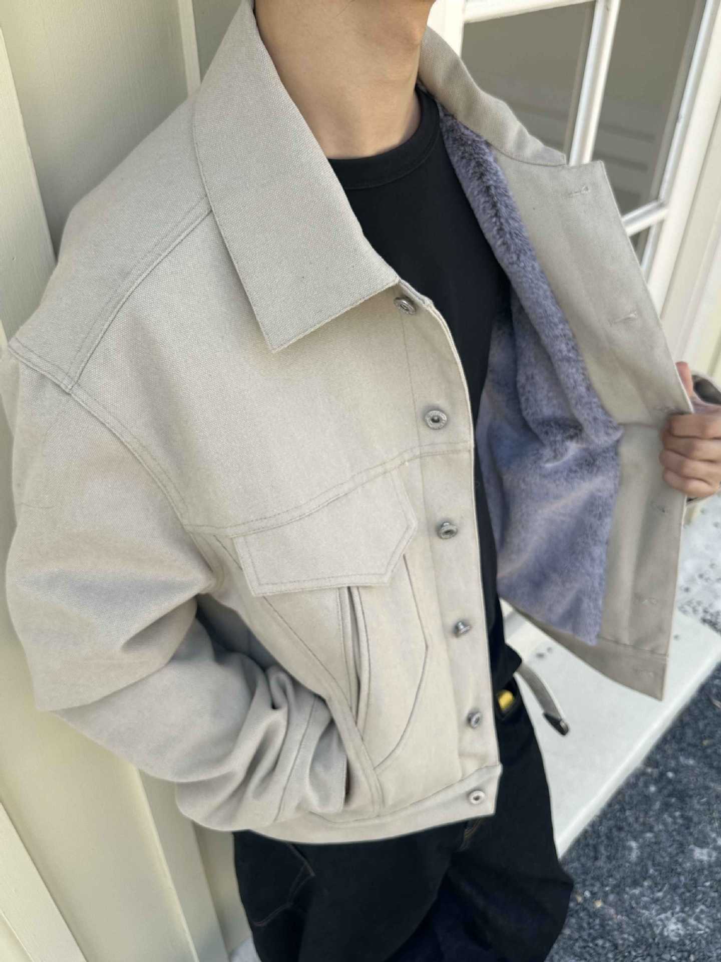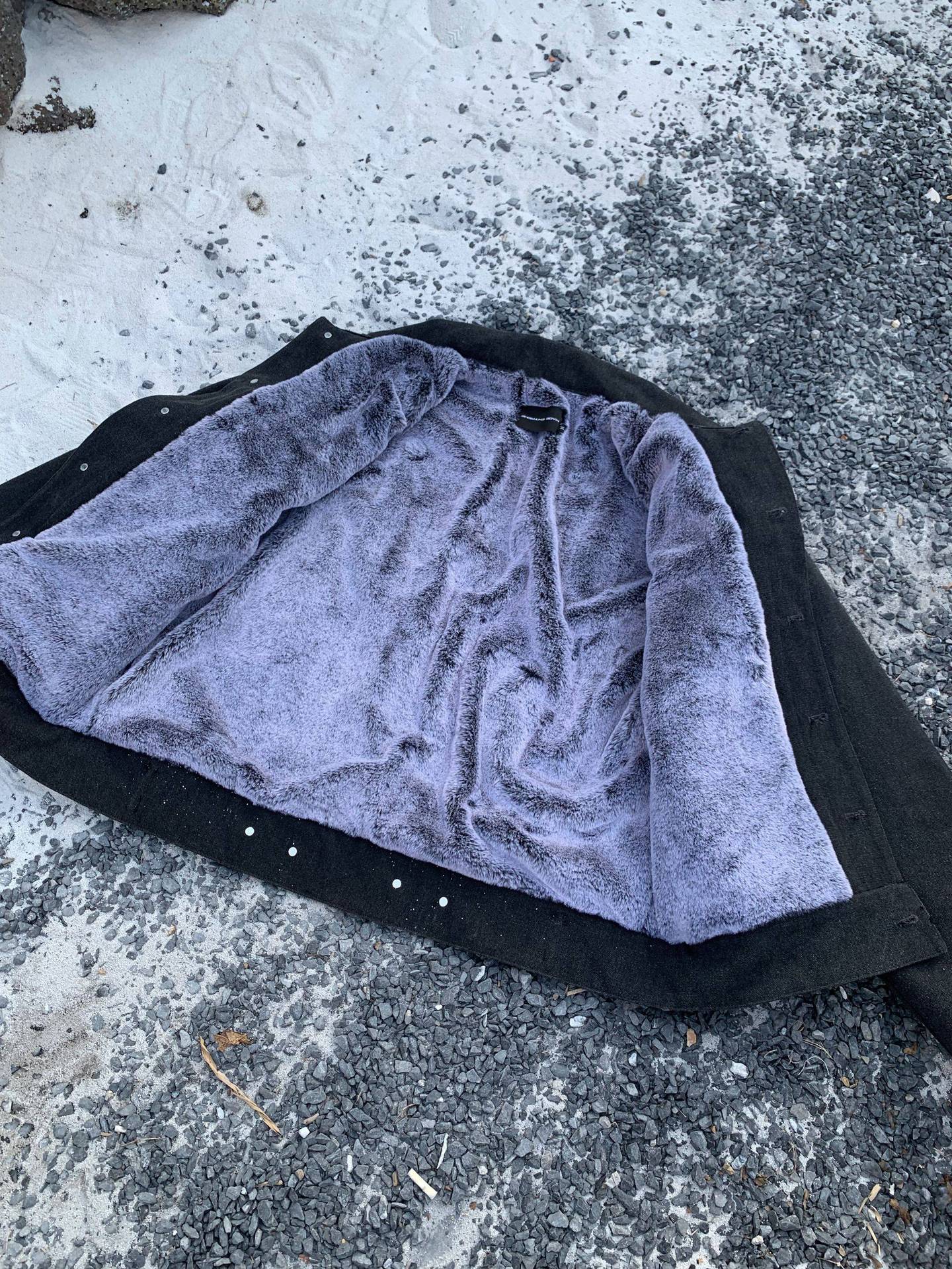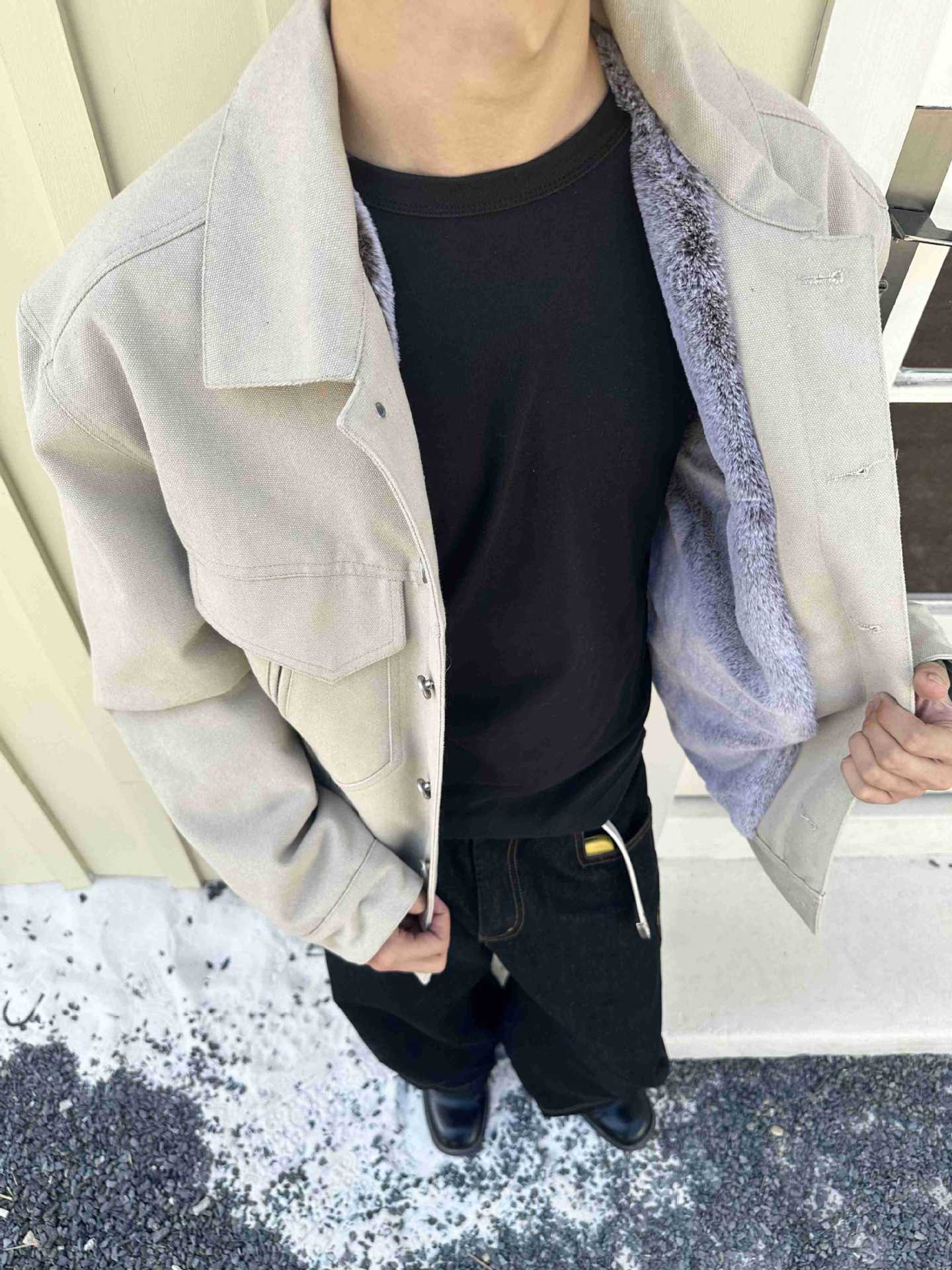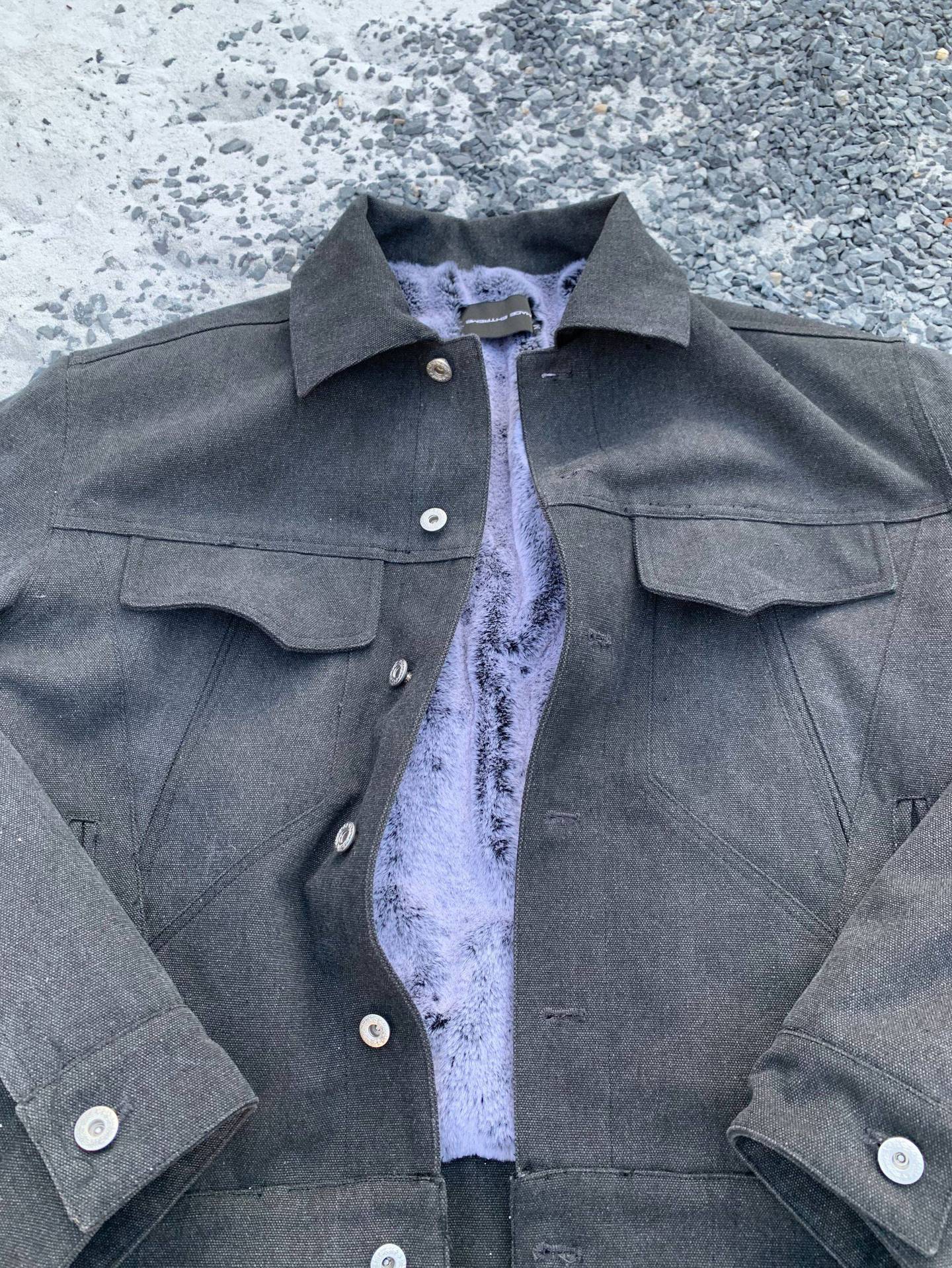 MADEEXTREME Blue Water Pattern Washed Canvas Imitation Rabbit Hair Silhouette Thermal Jacket