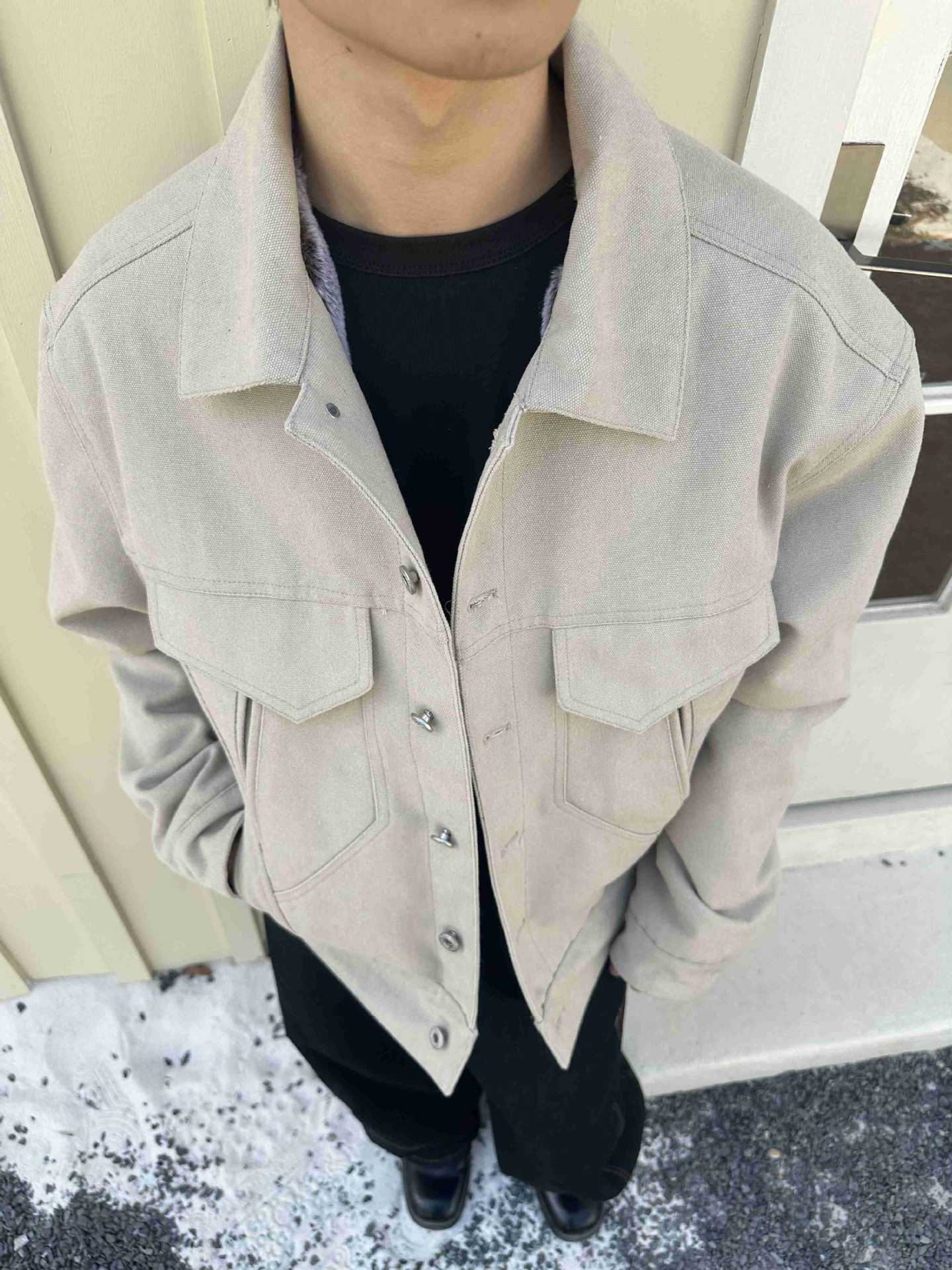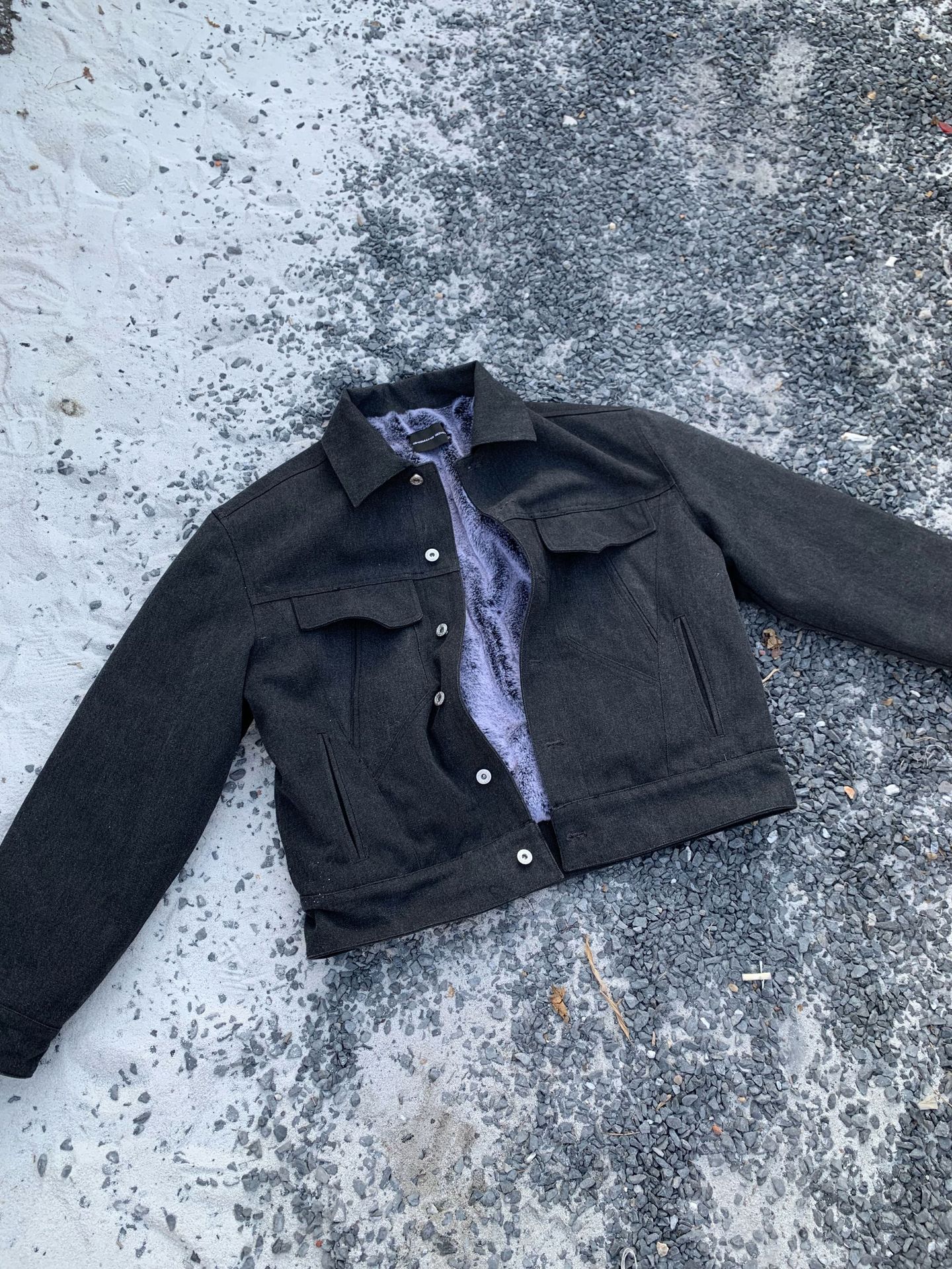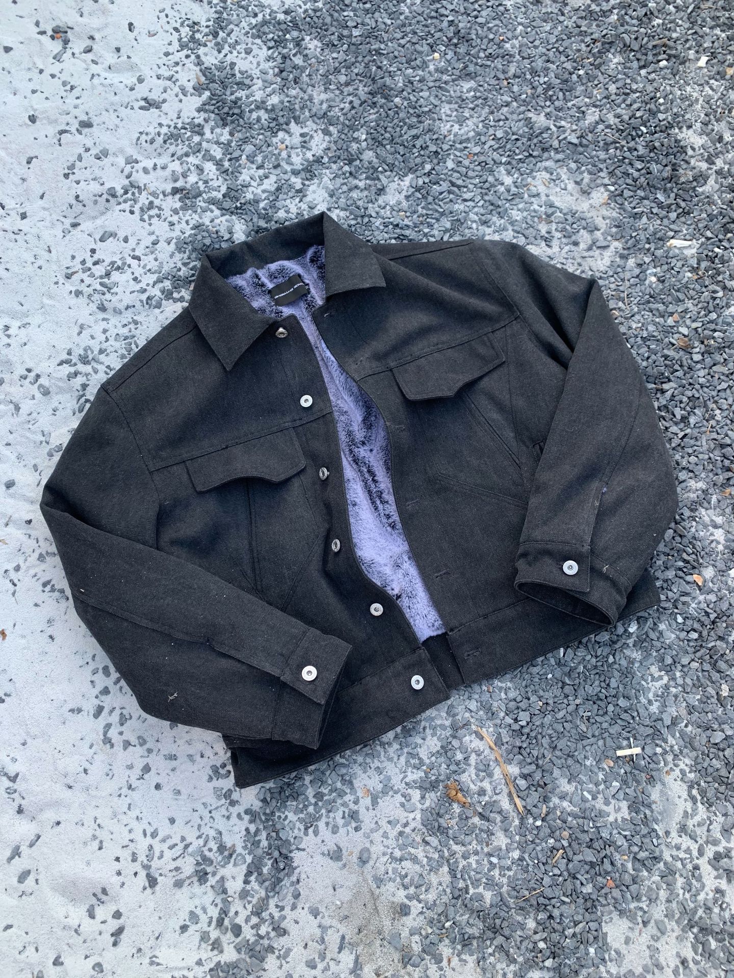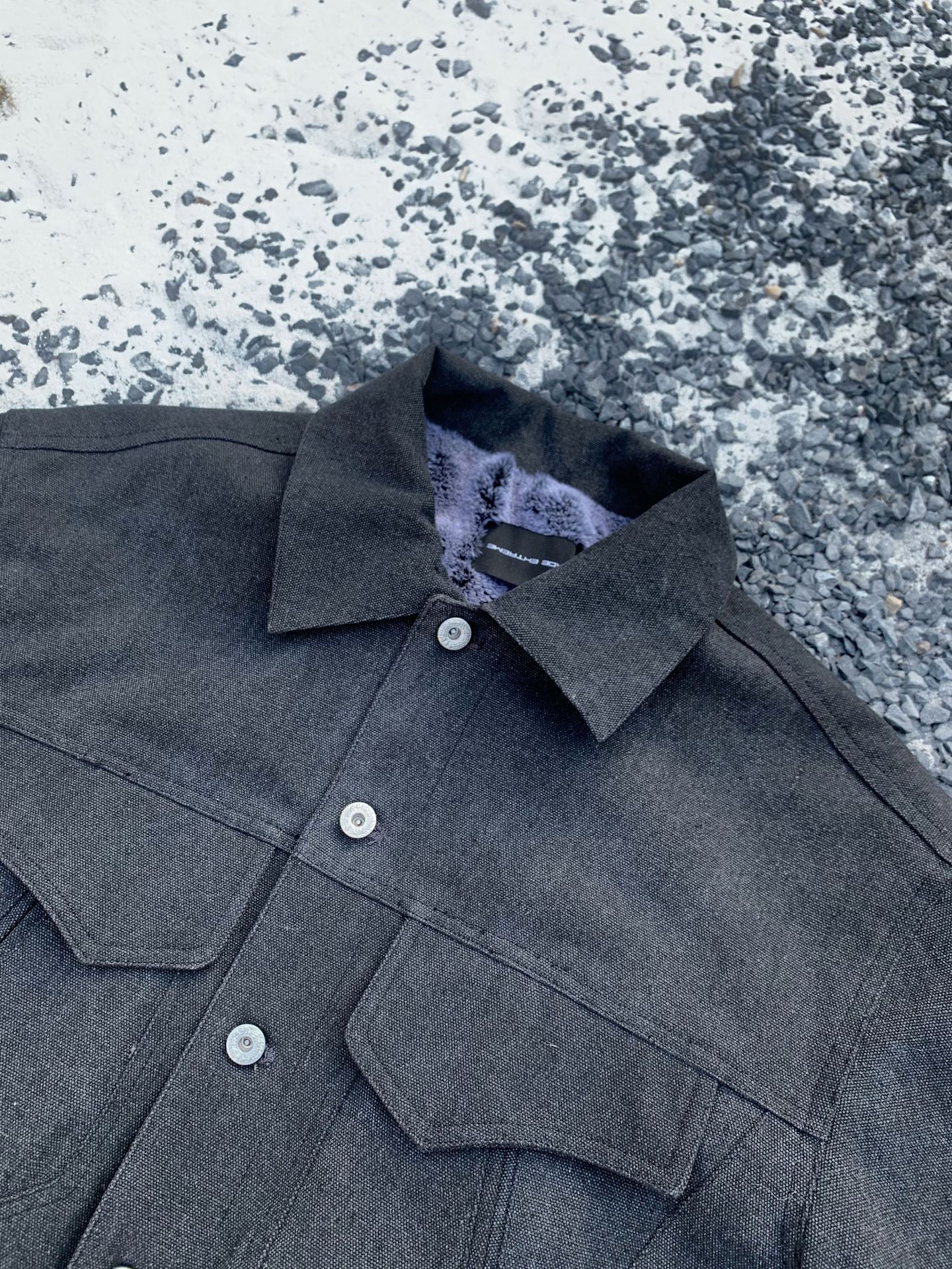 MADEEXTREME Blue Water Pattern Washed Canvas Imitation Rabbit Hair Silhouette Thermal Jacket