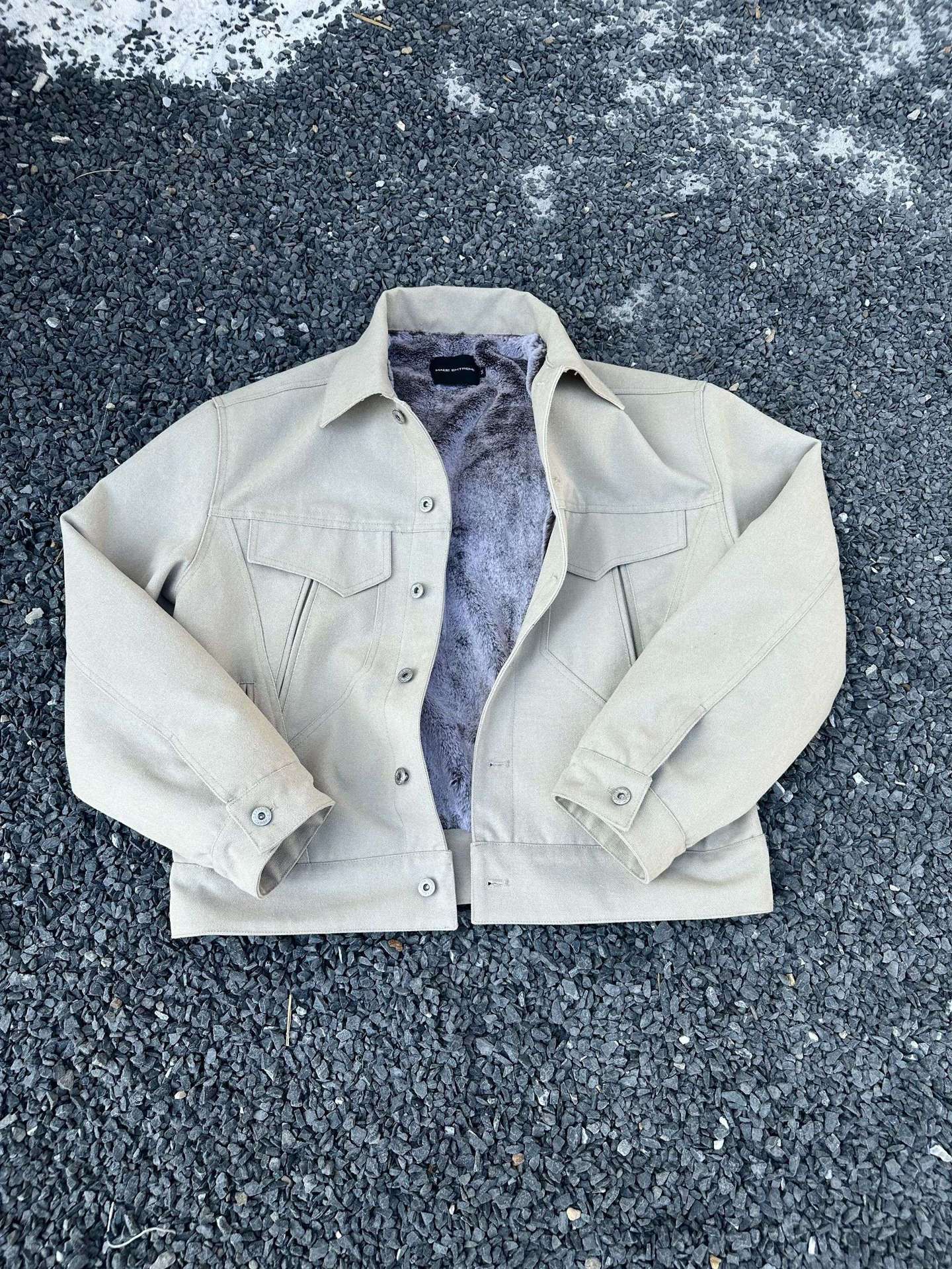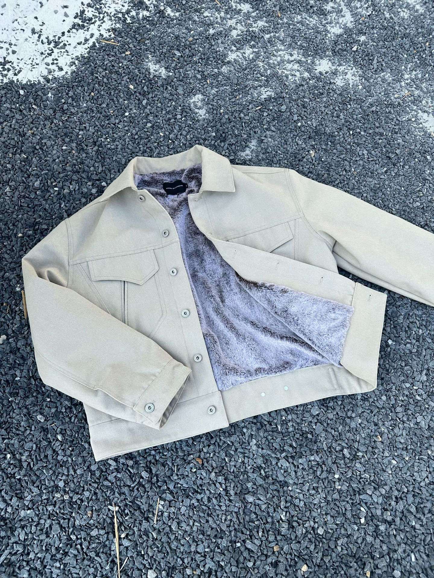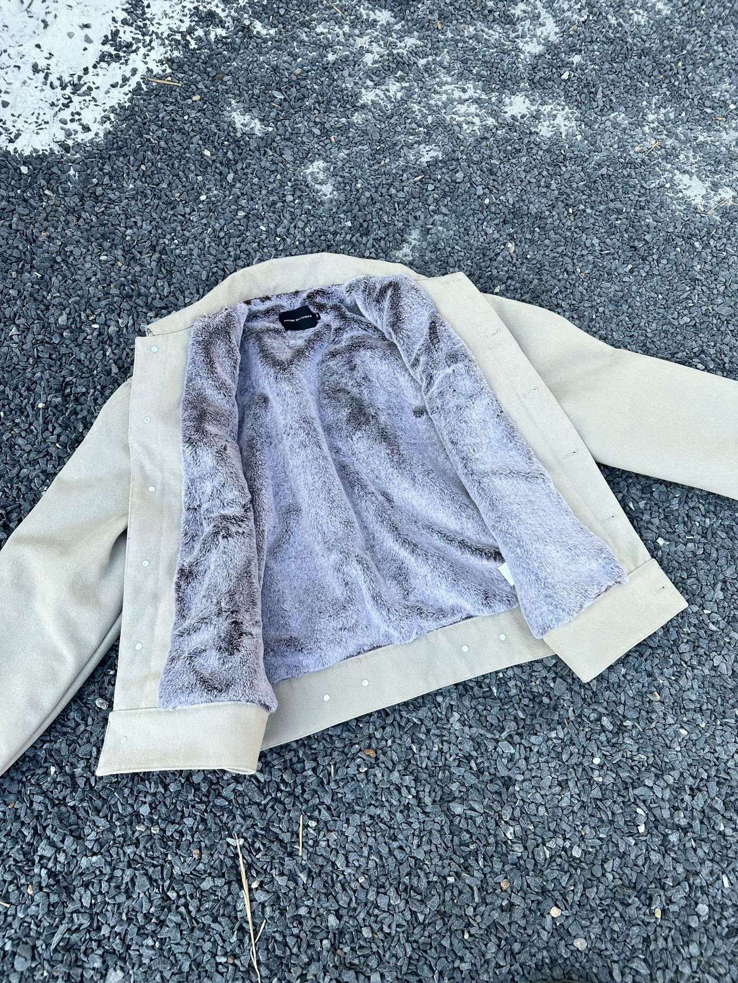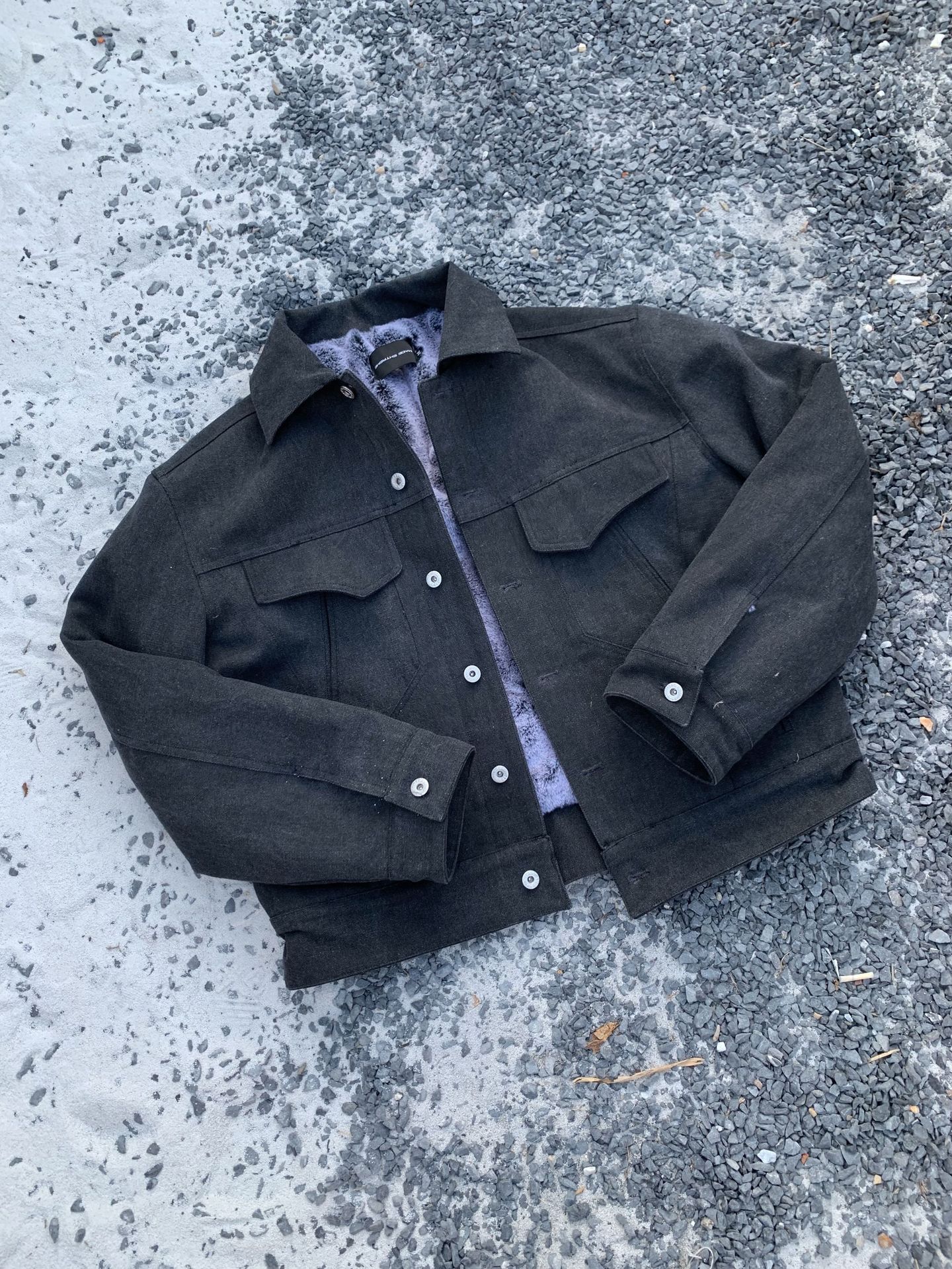 MADEEXTREME Blue Water Pattern Washed Canvas Imitation Rabbit Hair Silhouette Thermal Jacket