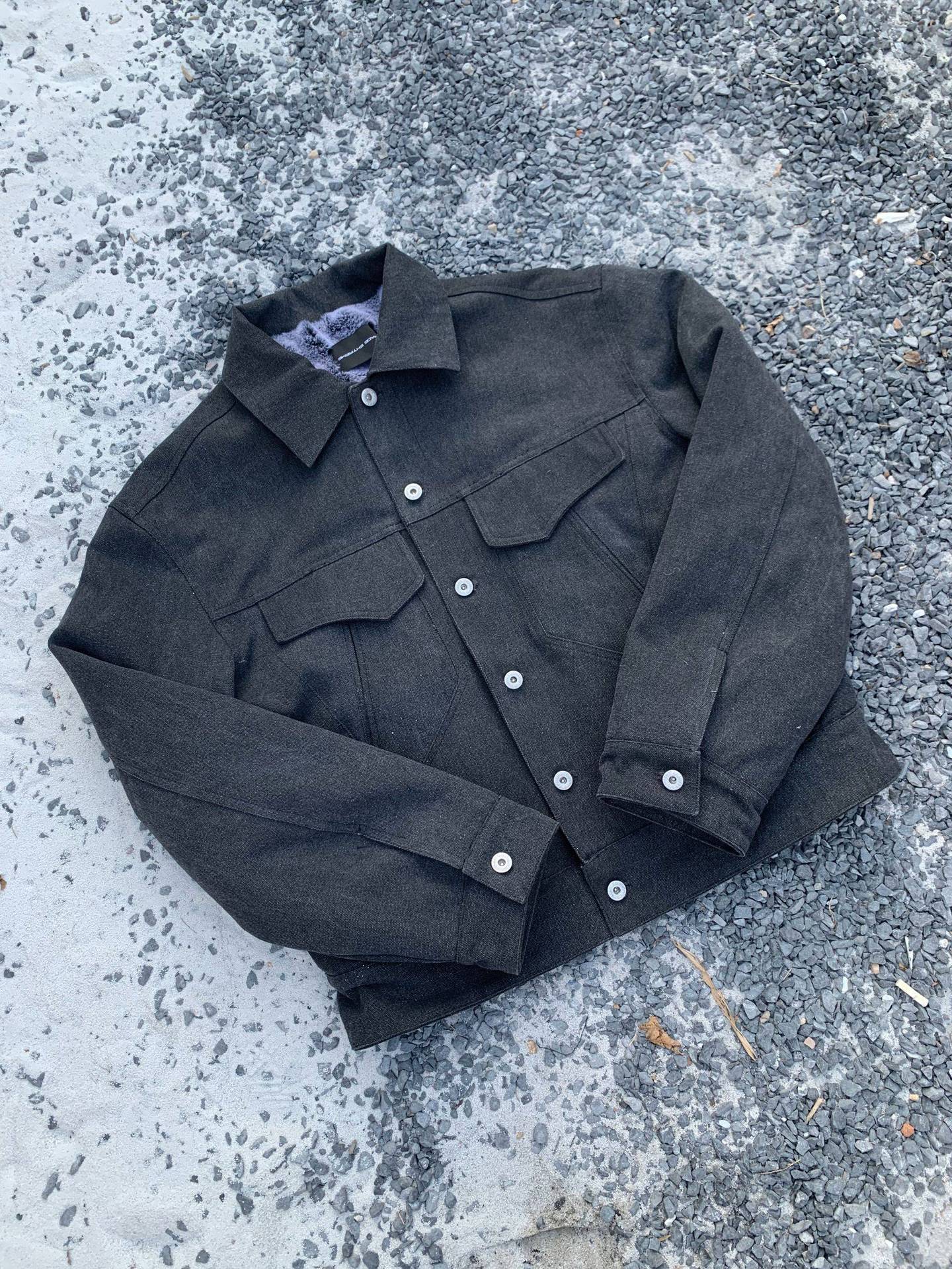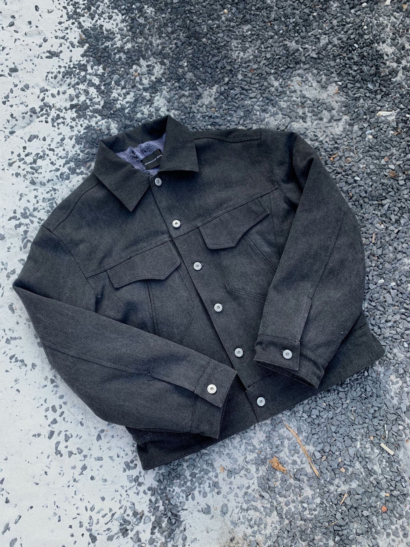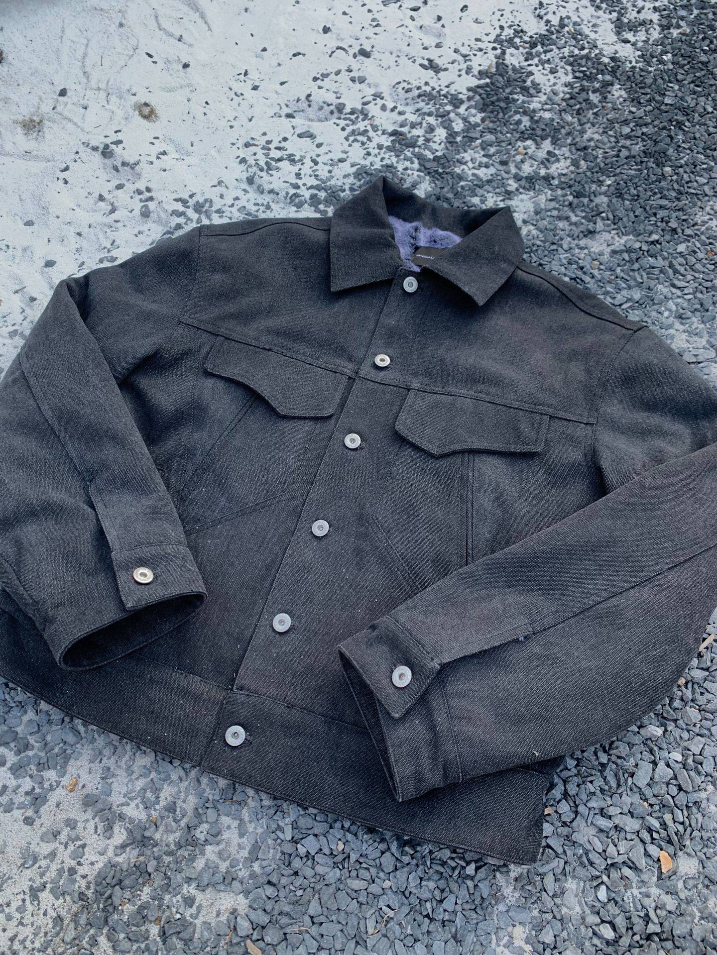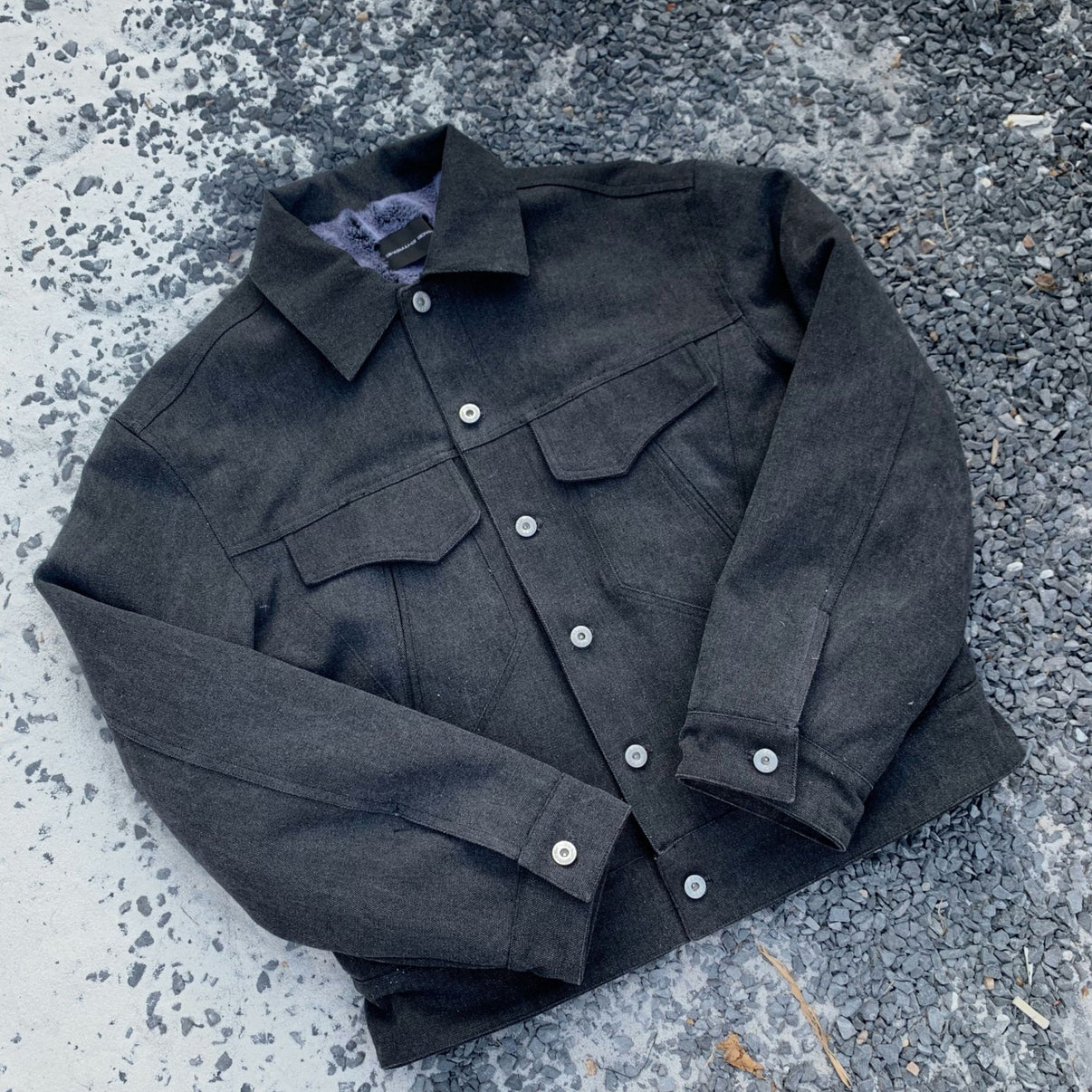 MADEEXTREME Blue Water Pattern Washed Canvas Imitation Rabbit Hair Silhouette Thermal Jacket