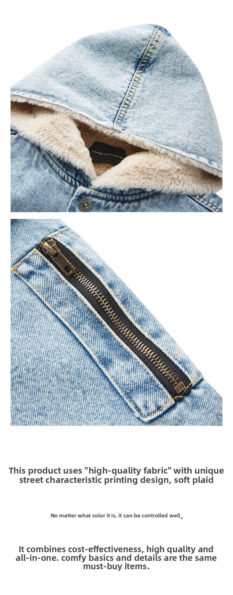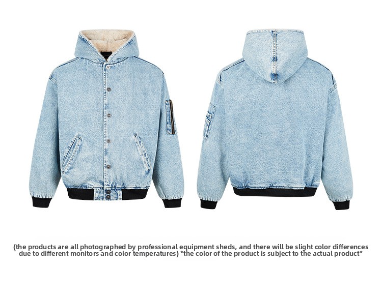 MADEEXTREME Imitation Rabbit Fur Seat Mountain Carving Denim Blue Fried Snowflake Autumn and Winter Thickened Thermal Jacket Jacket