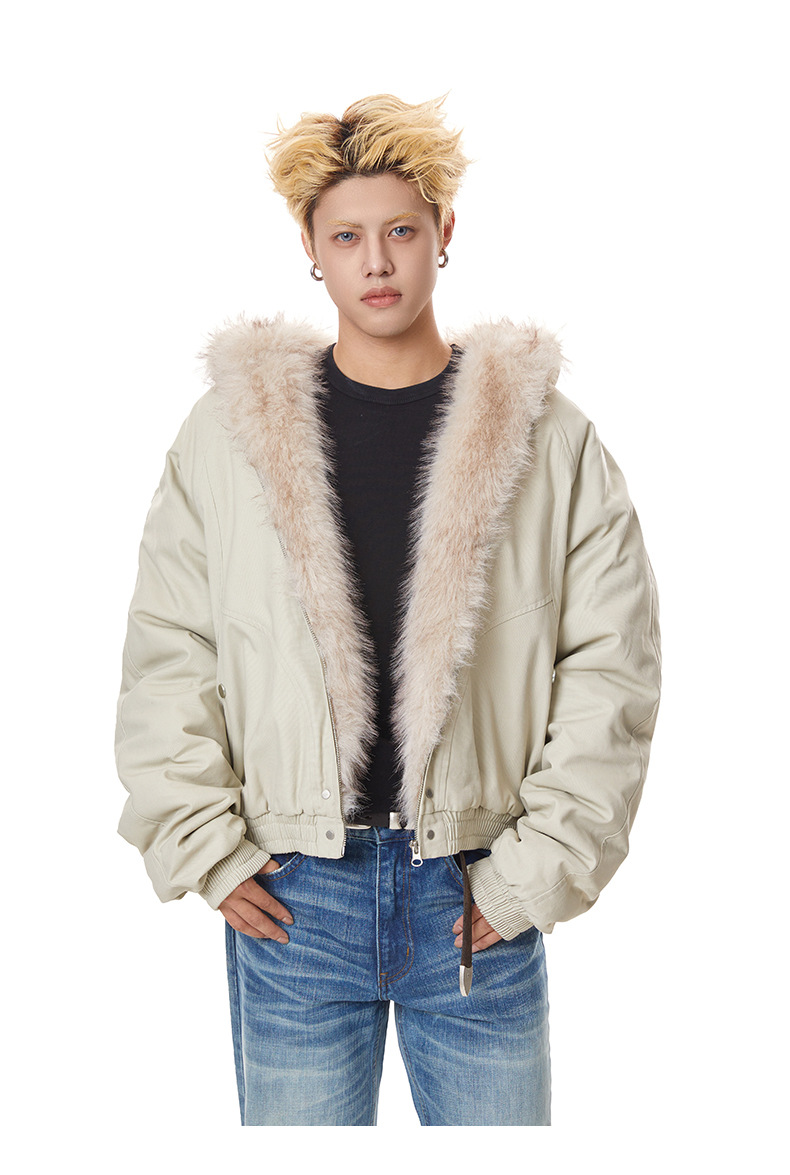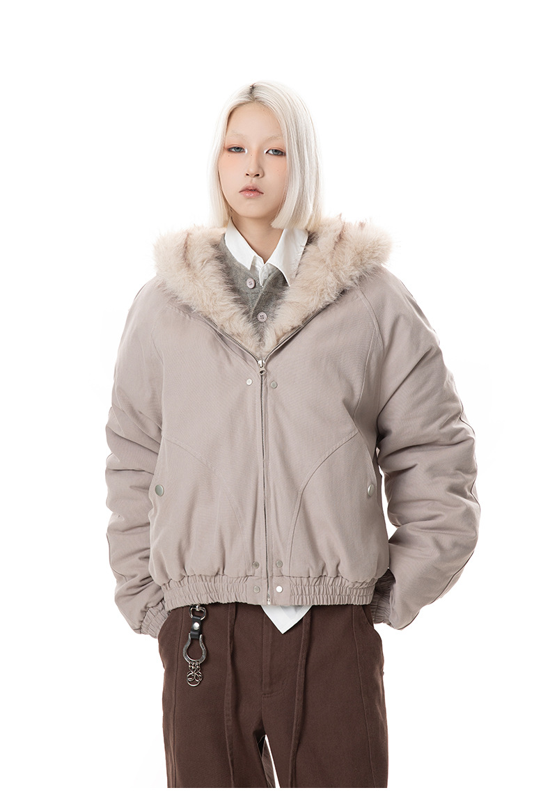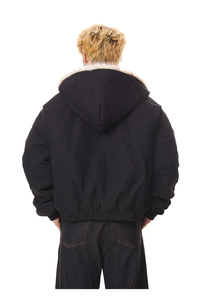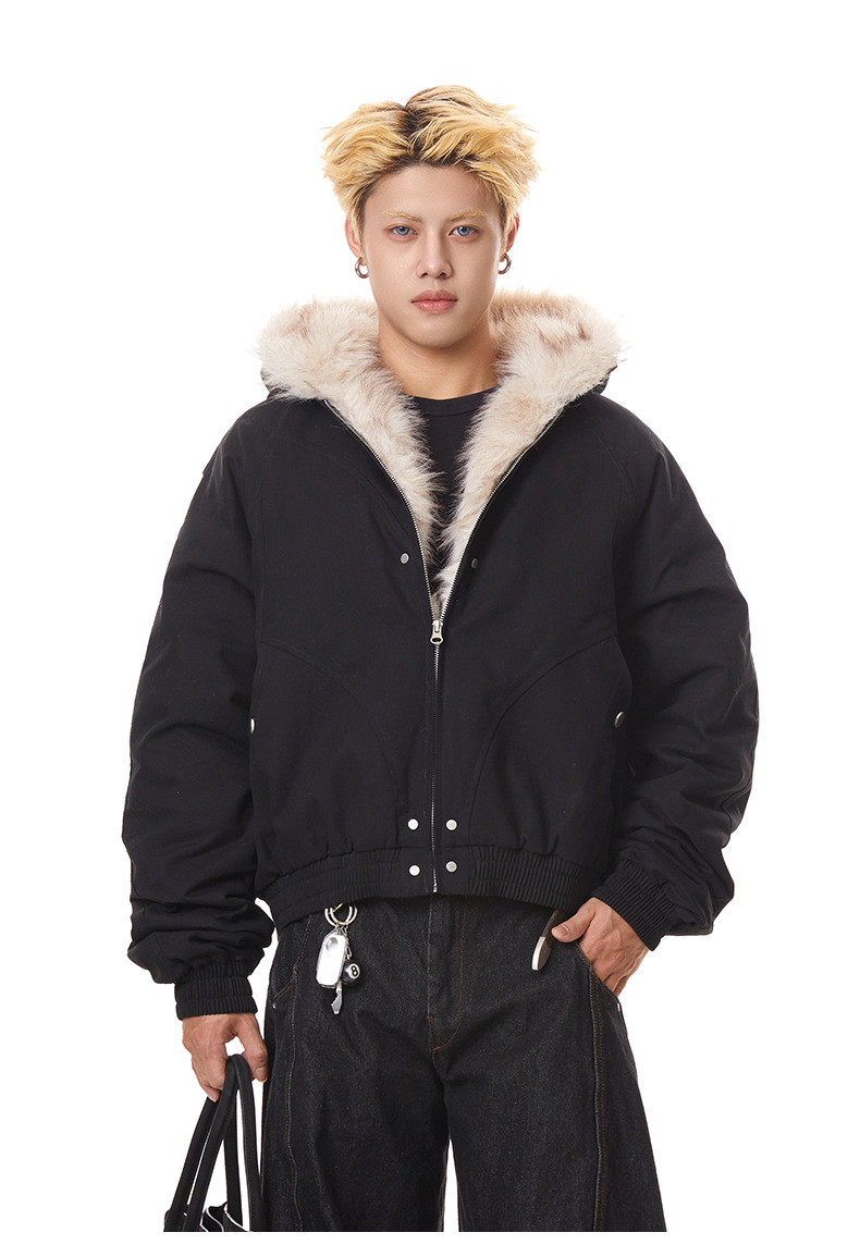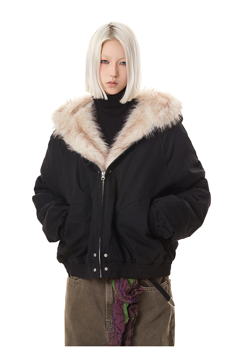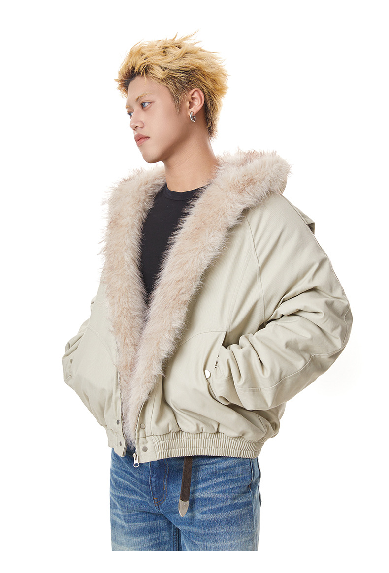 MADEEXTREME Mountain Carving Fur Collar Thickened Warm Autumn and Winter Cotton Jacket