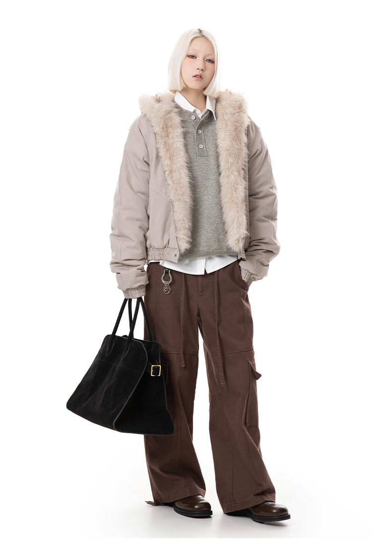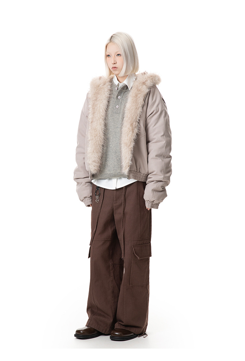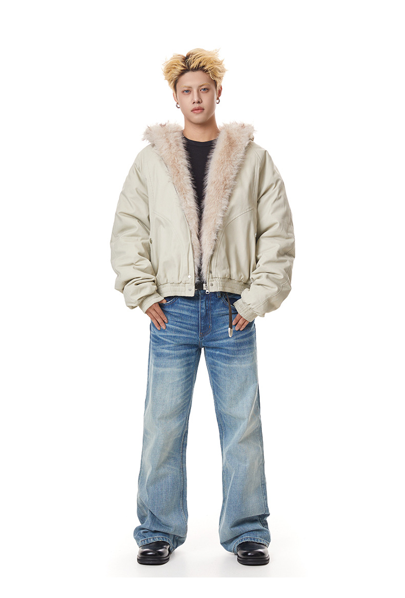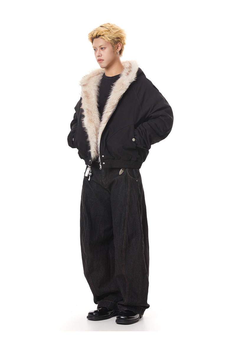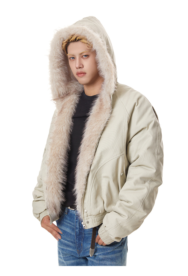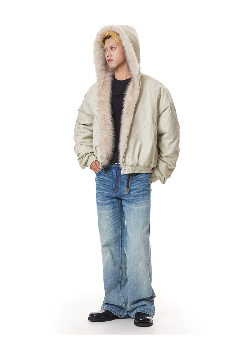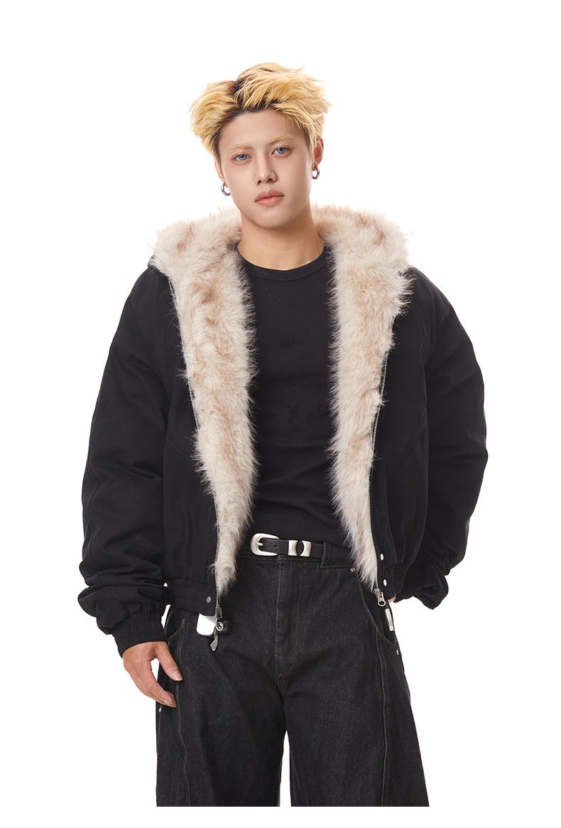 MADEEXTREME Mountain Carving Fur Collar Thickened Warm Autumn and Winter Cotton Jacket