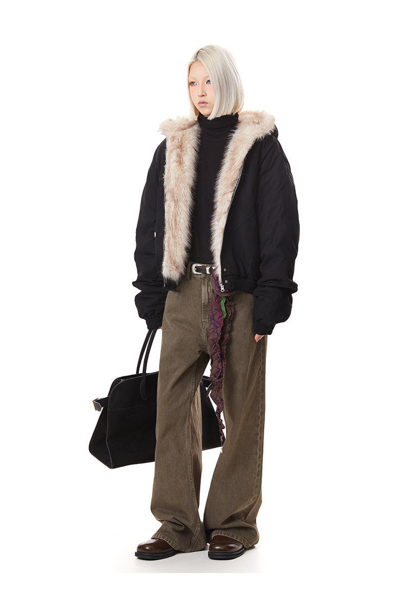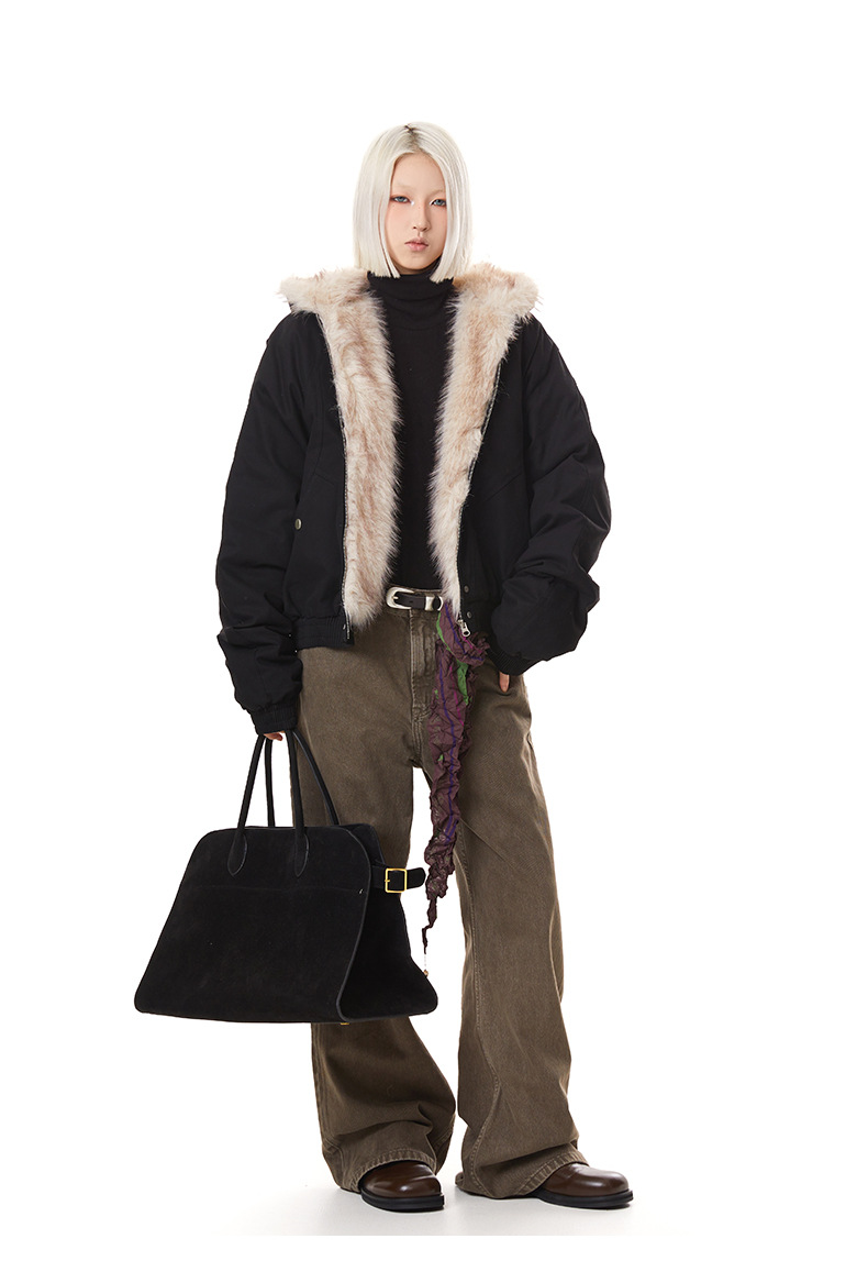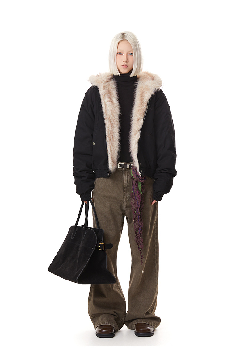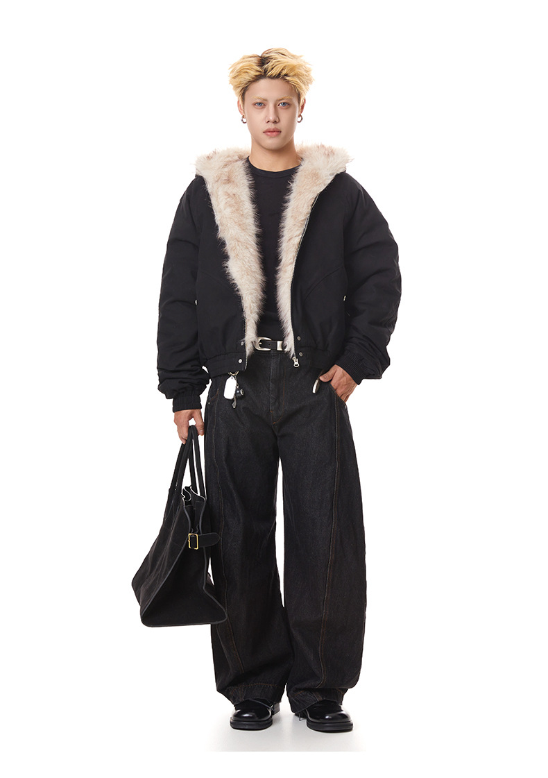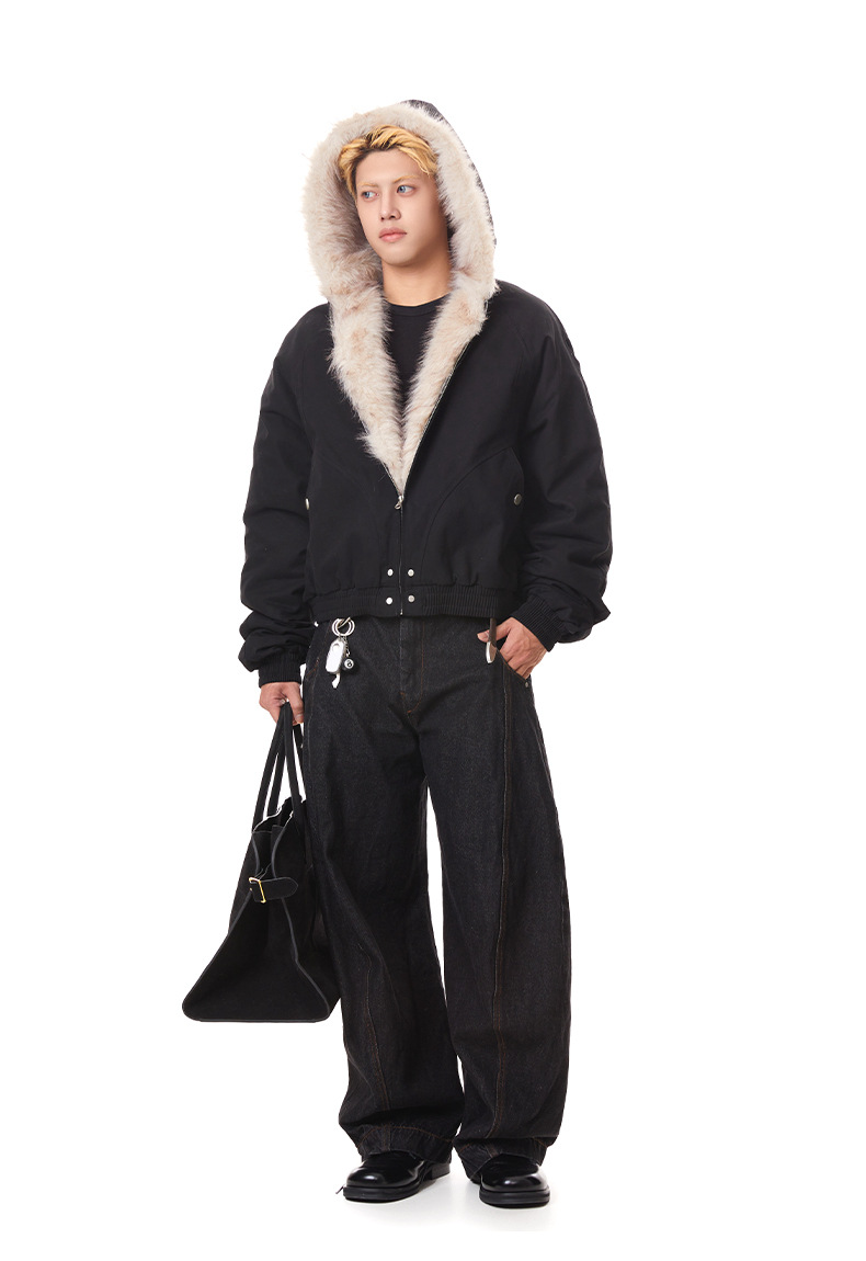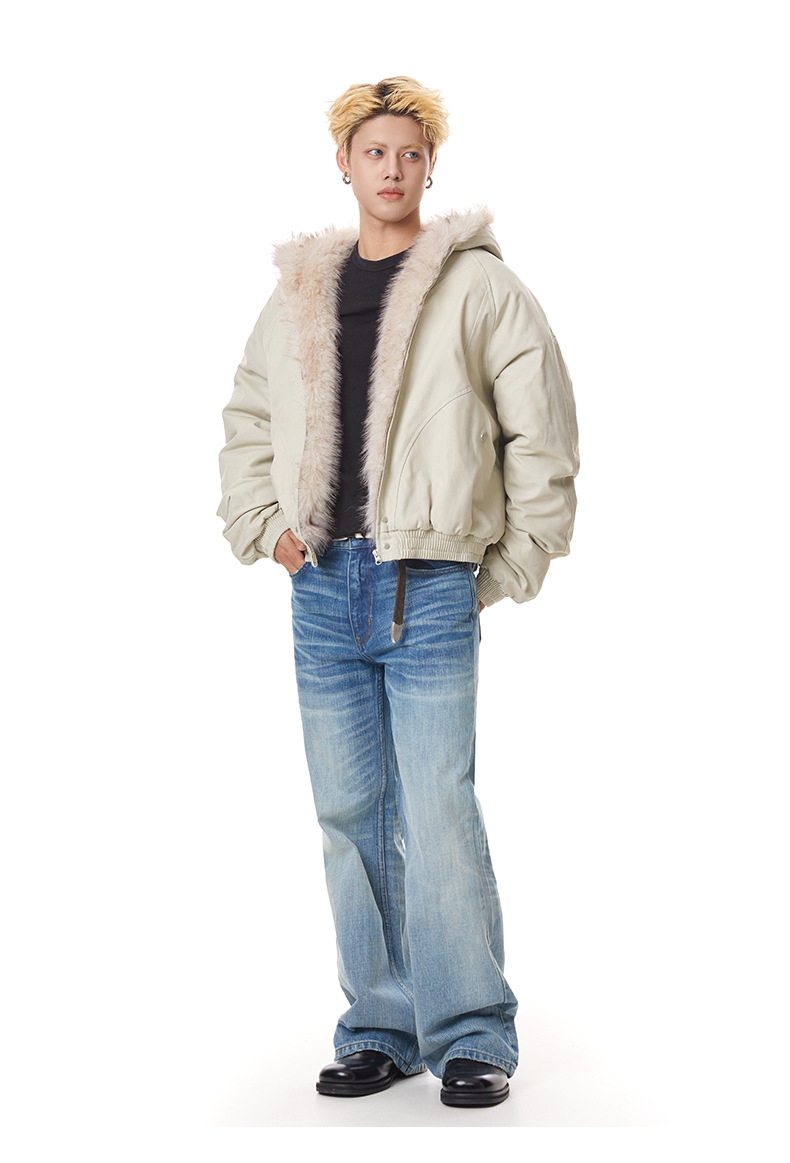 MADEEXTREME Mountain Carving Fur Collar Thickened Warm Autumn and Winter Cotton Jacket
