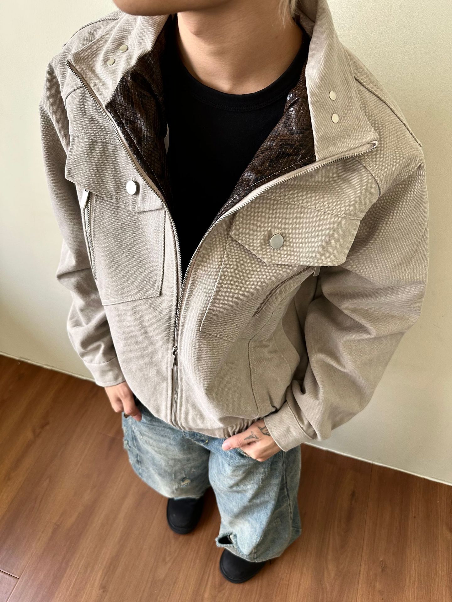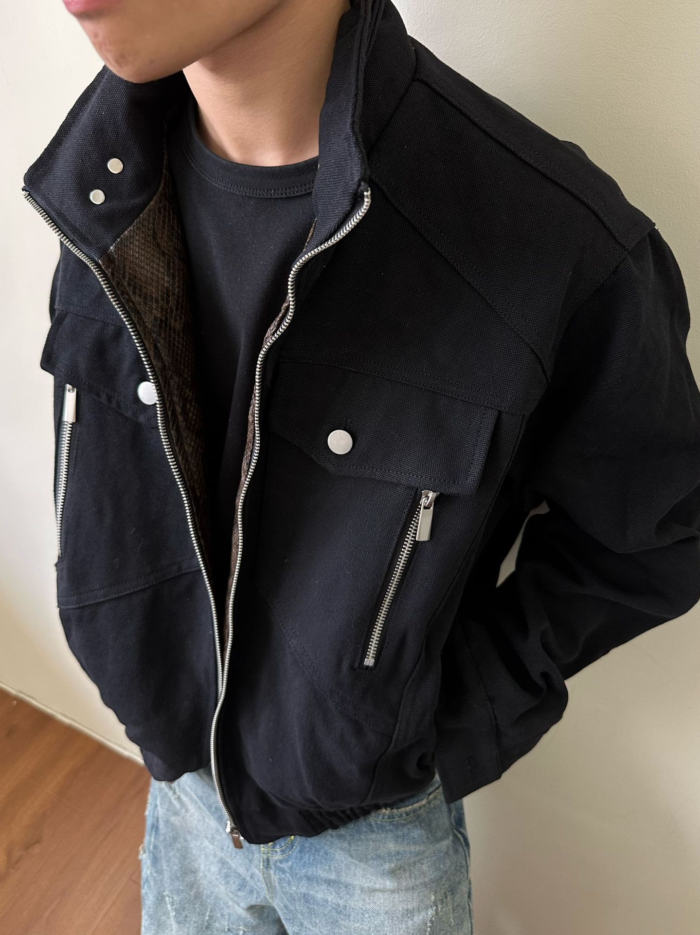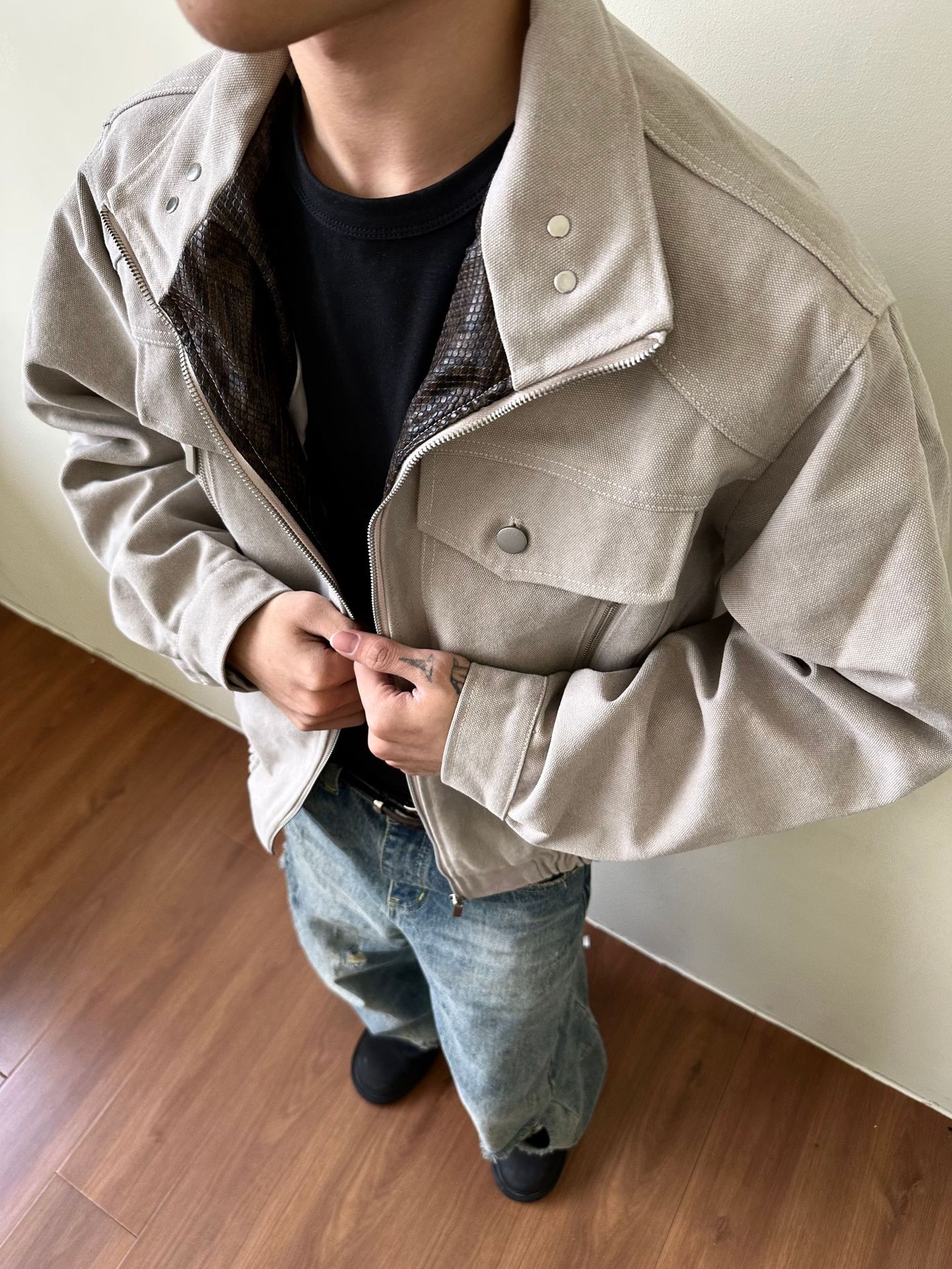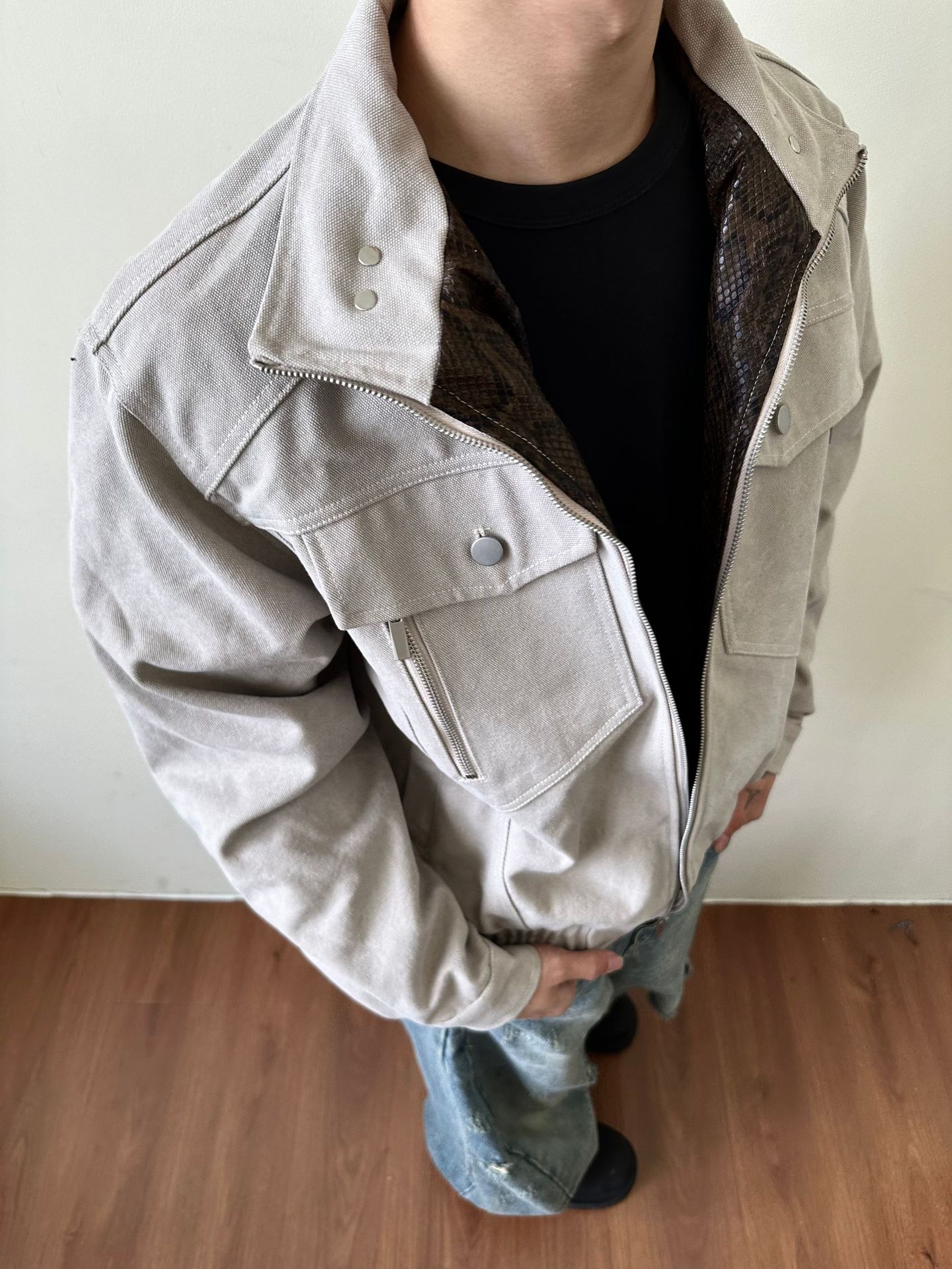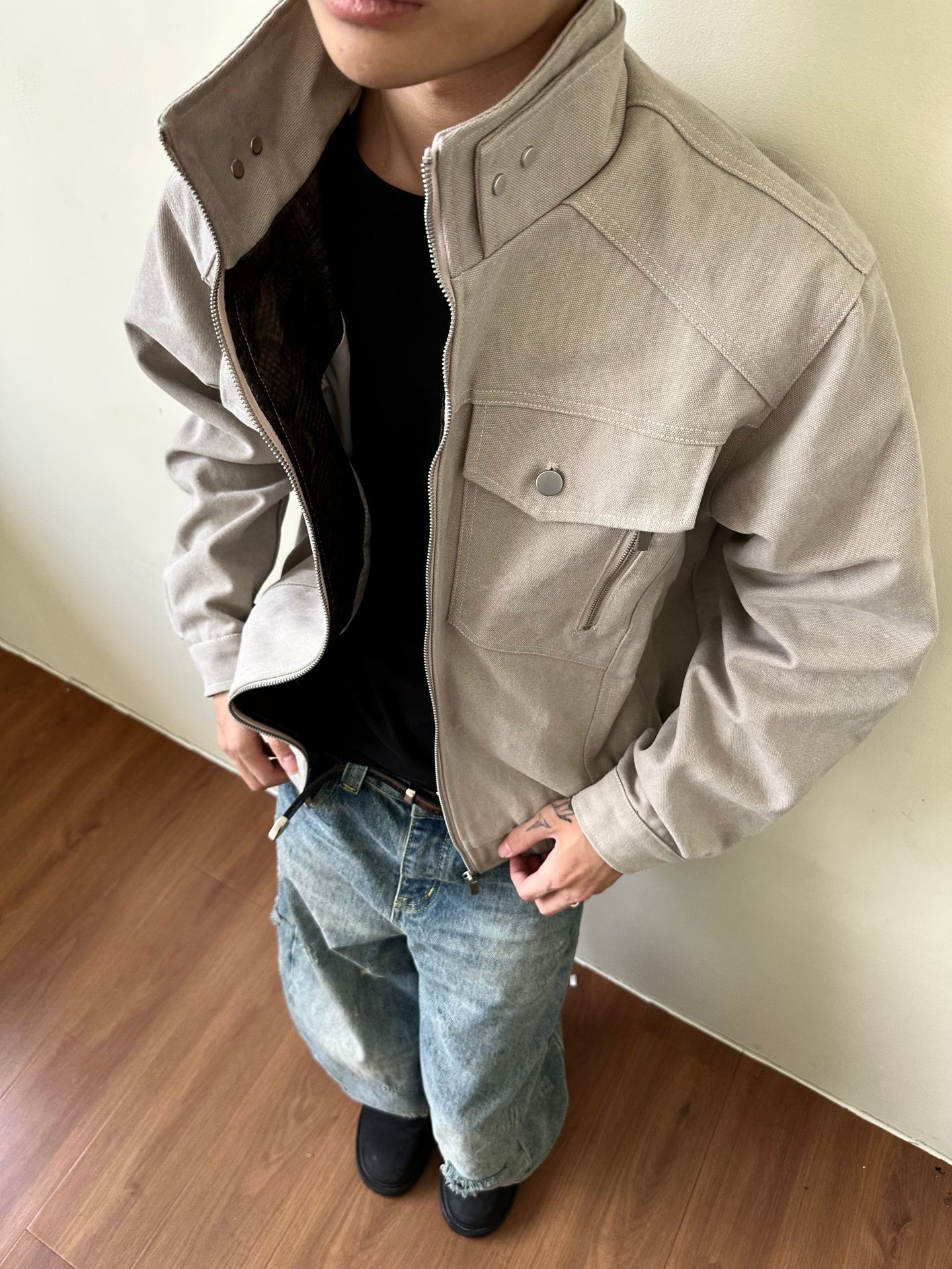 MADEEXTREME Stand-up Collar Stiff Military Cloth Washed Tooling Vintage Jacket