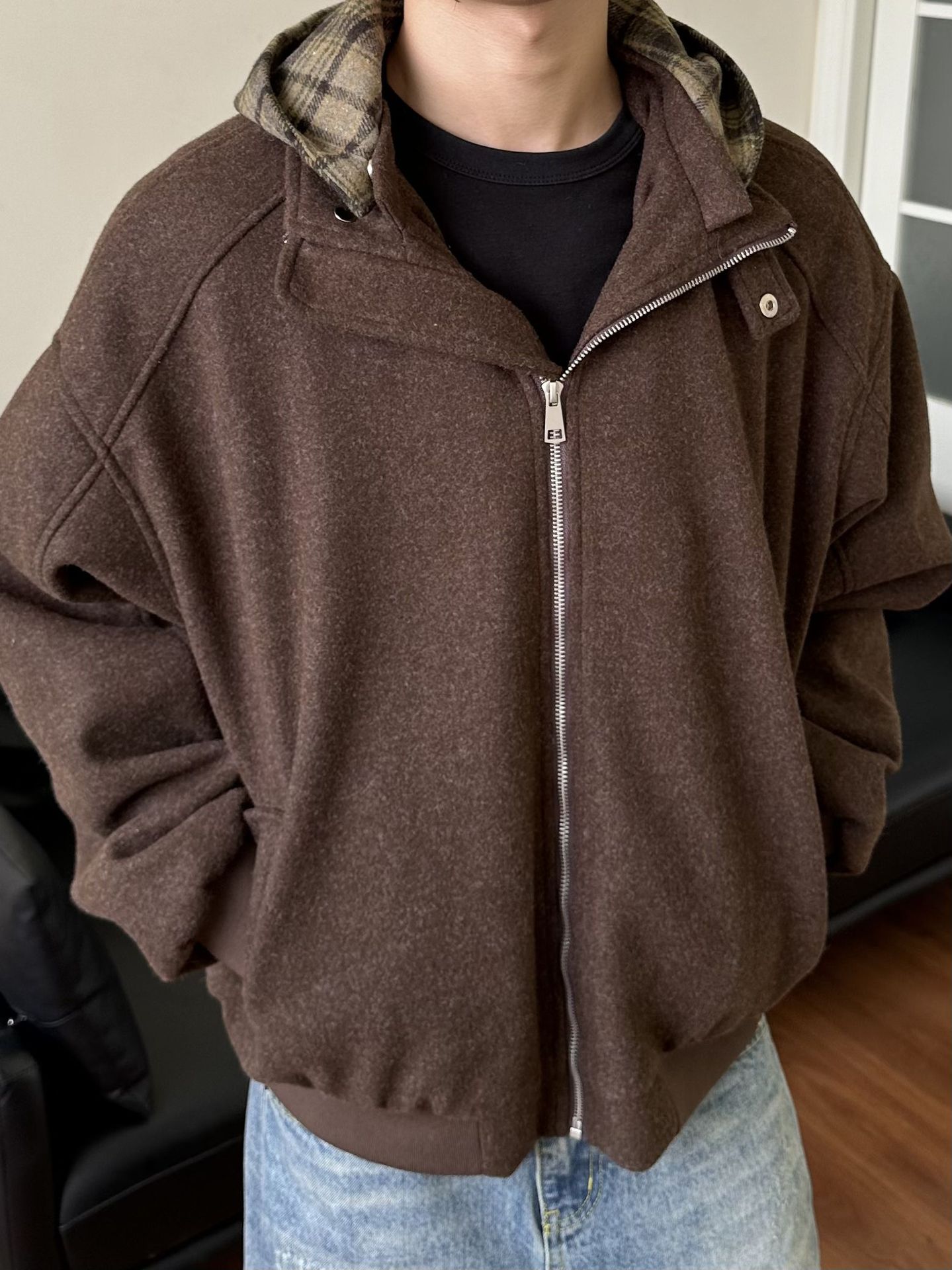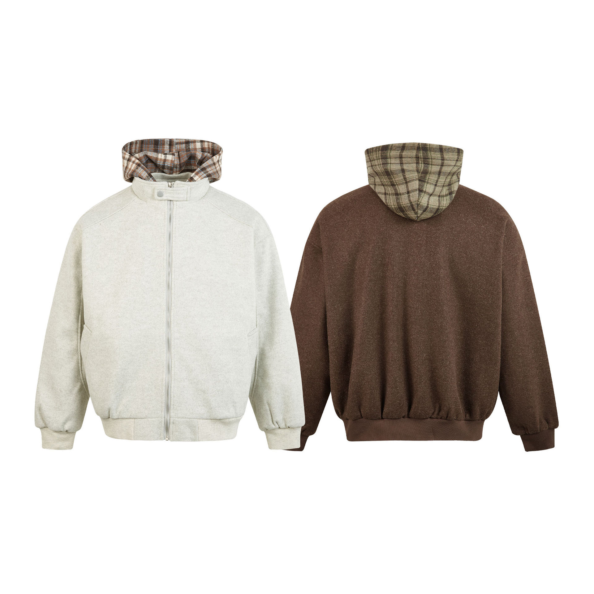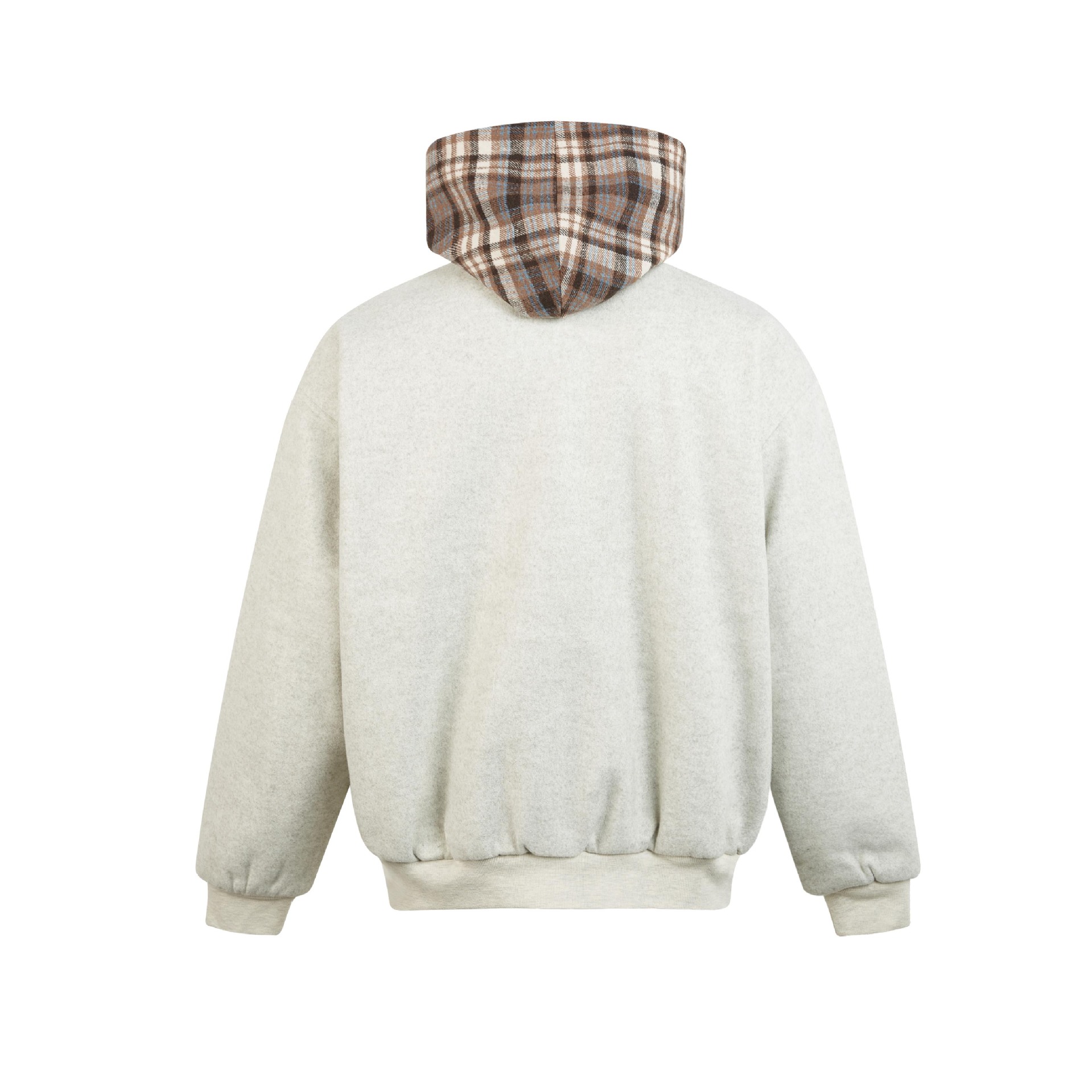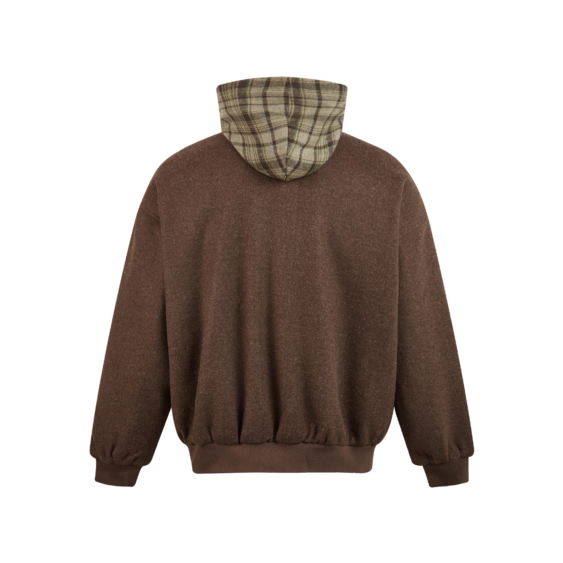MADEEXTREME Thickened Fake Two-piece Plaid Hooded Zipper Cotton Jacket