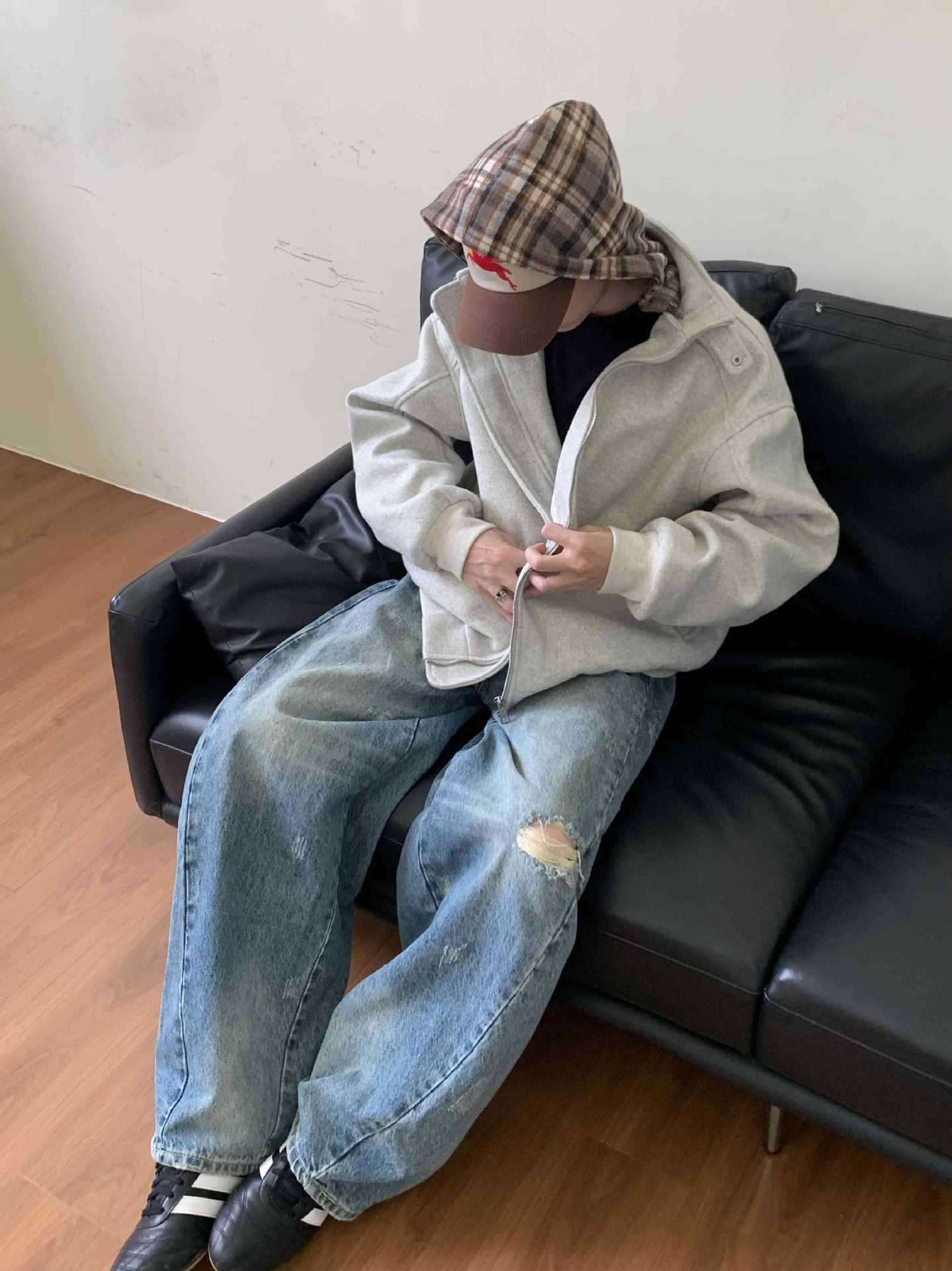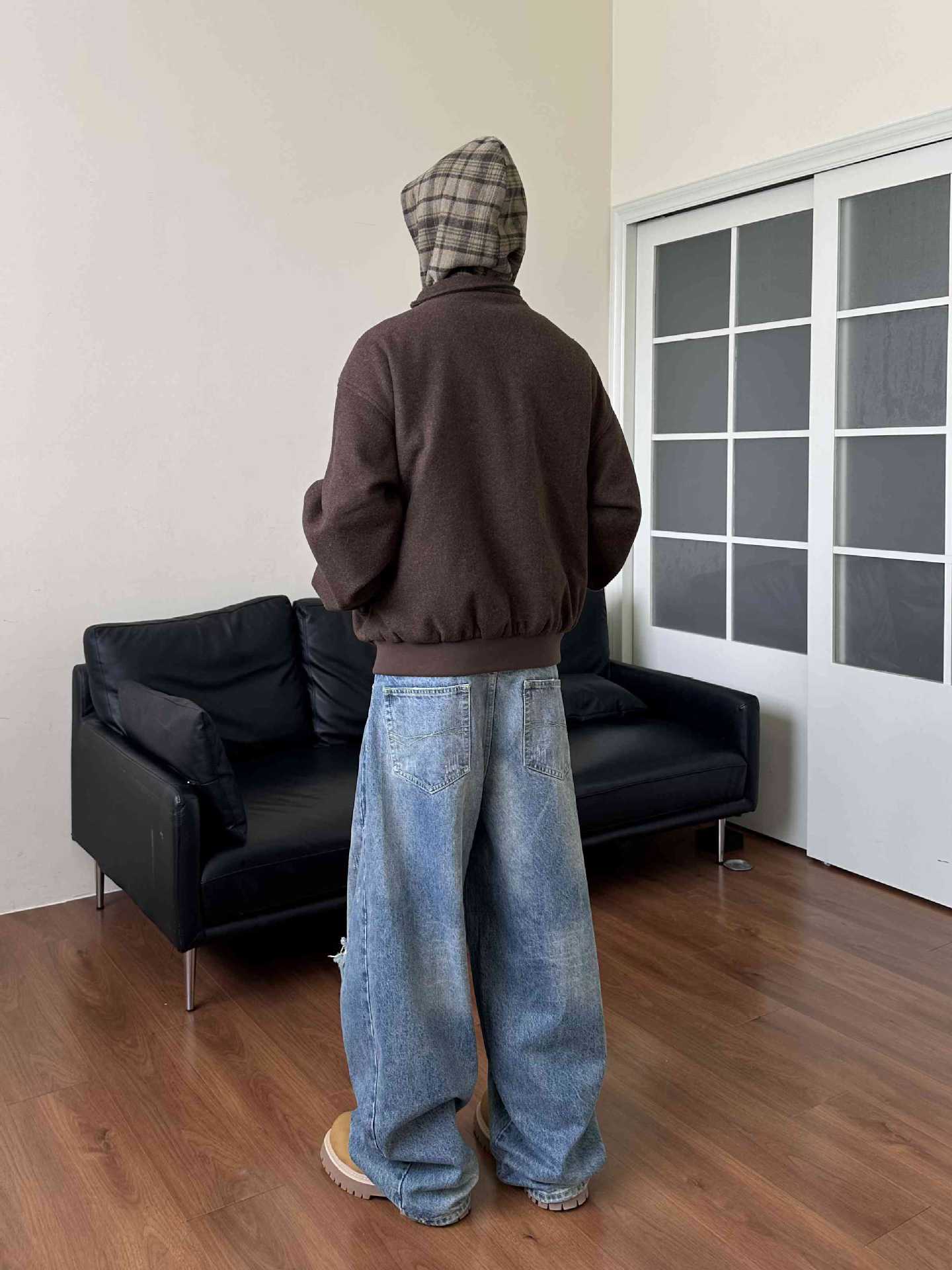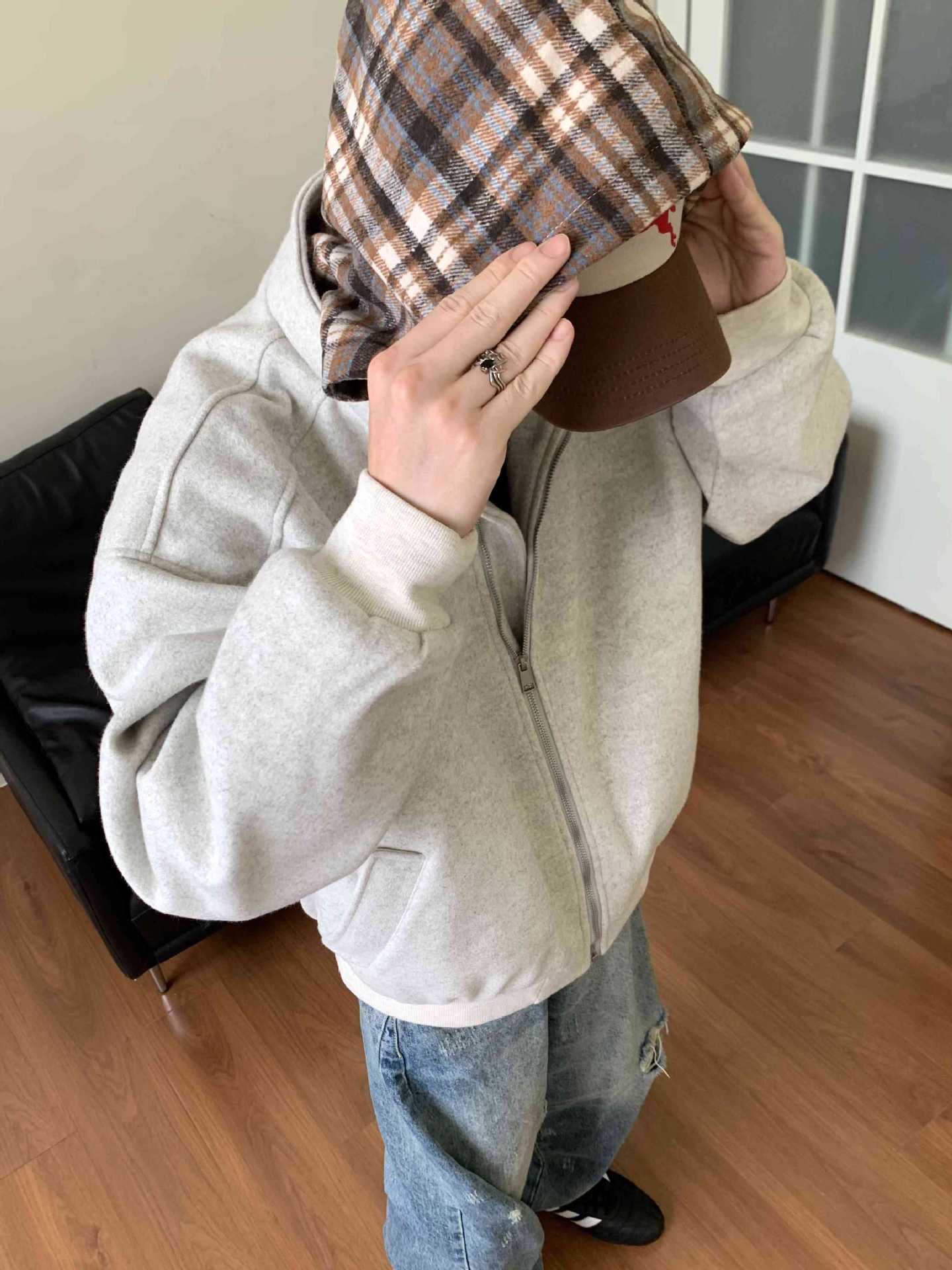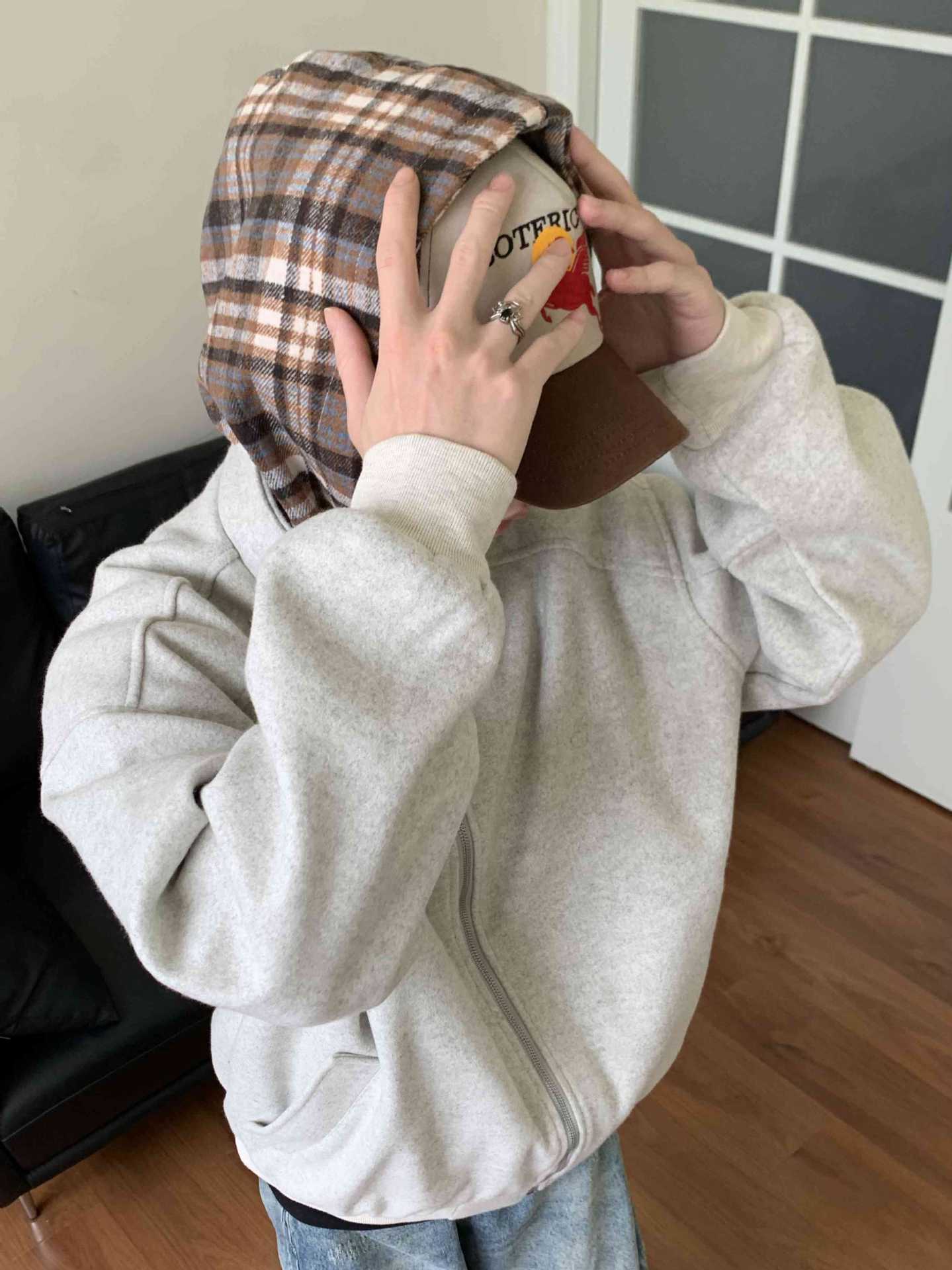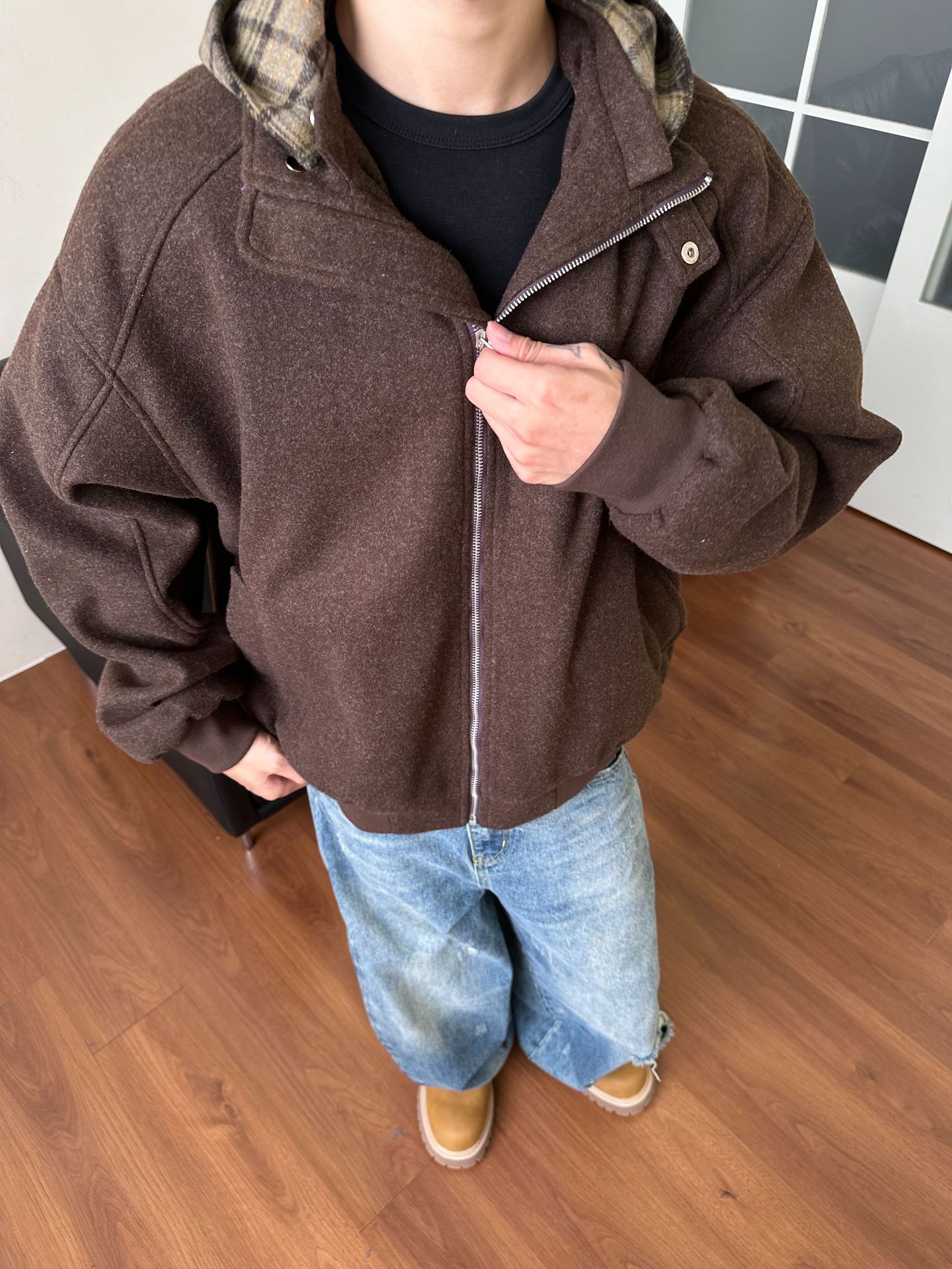 MADEEXTREME Thickened Fake Two-piece Plaid Hooded Zipper Cotton Jacket