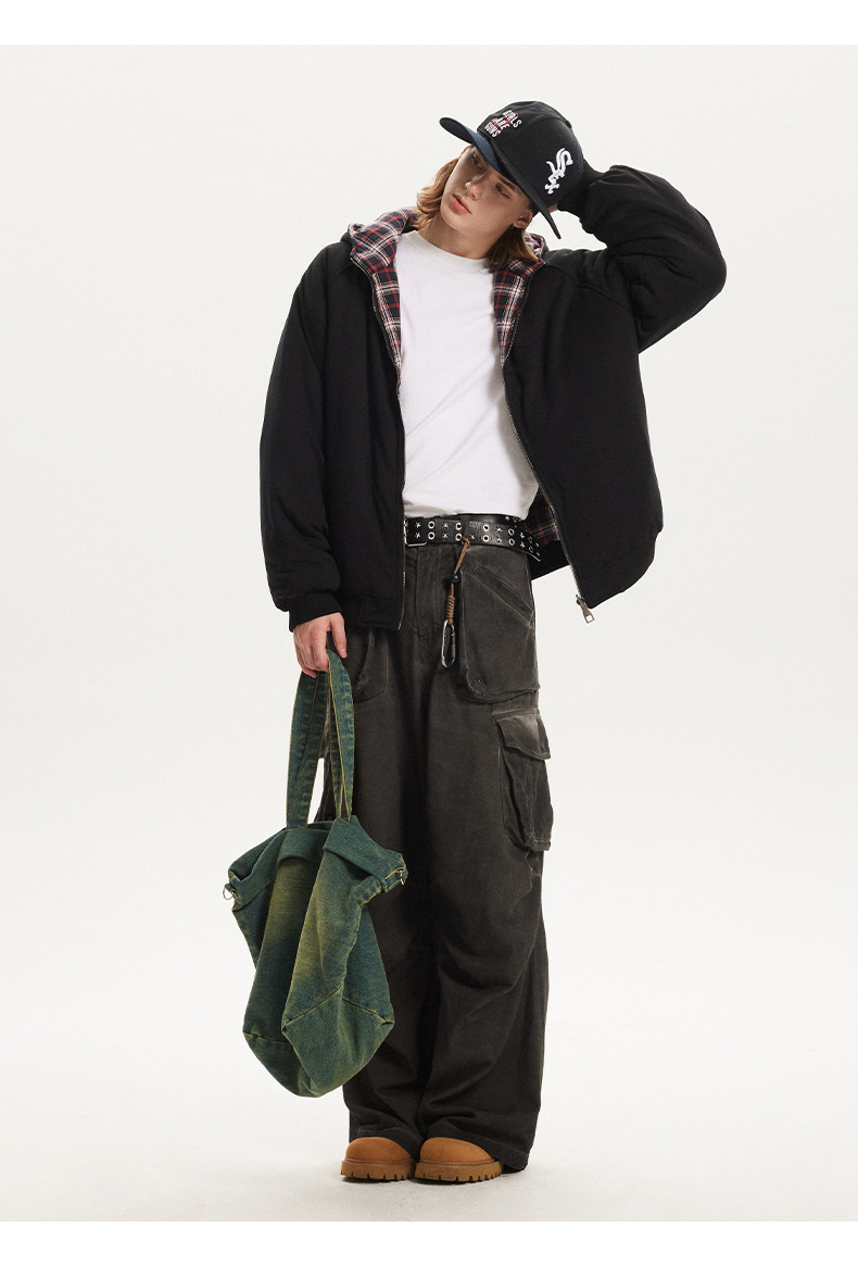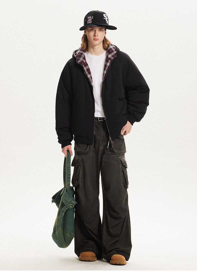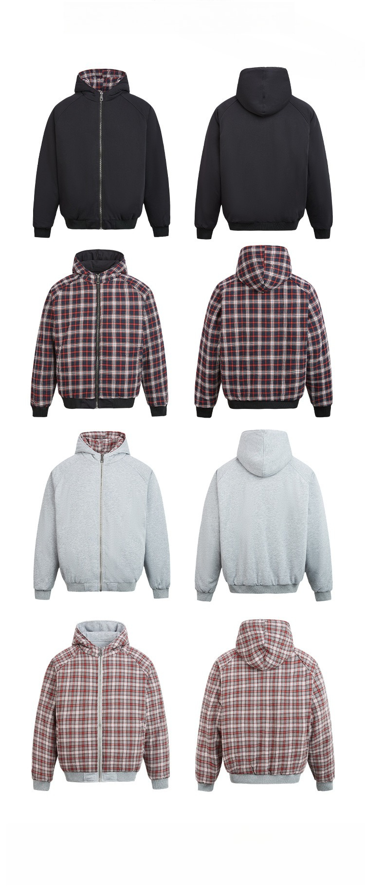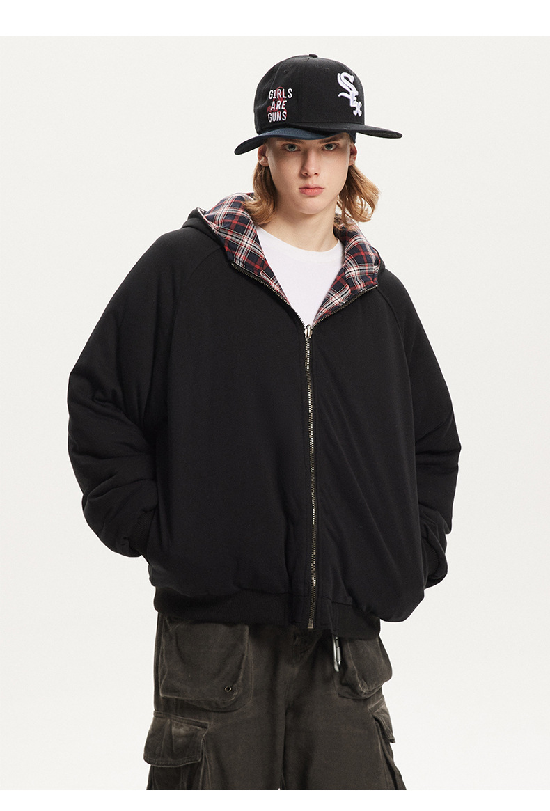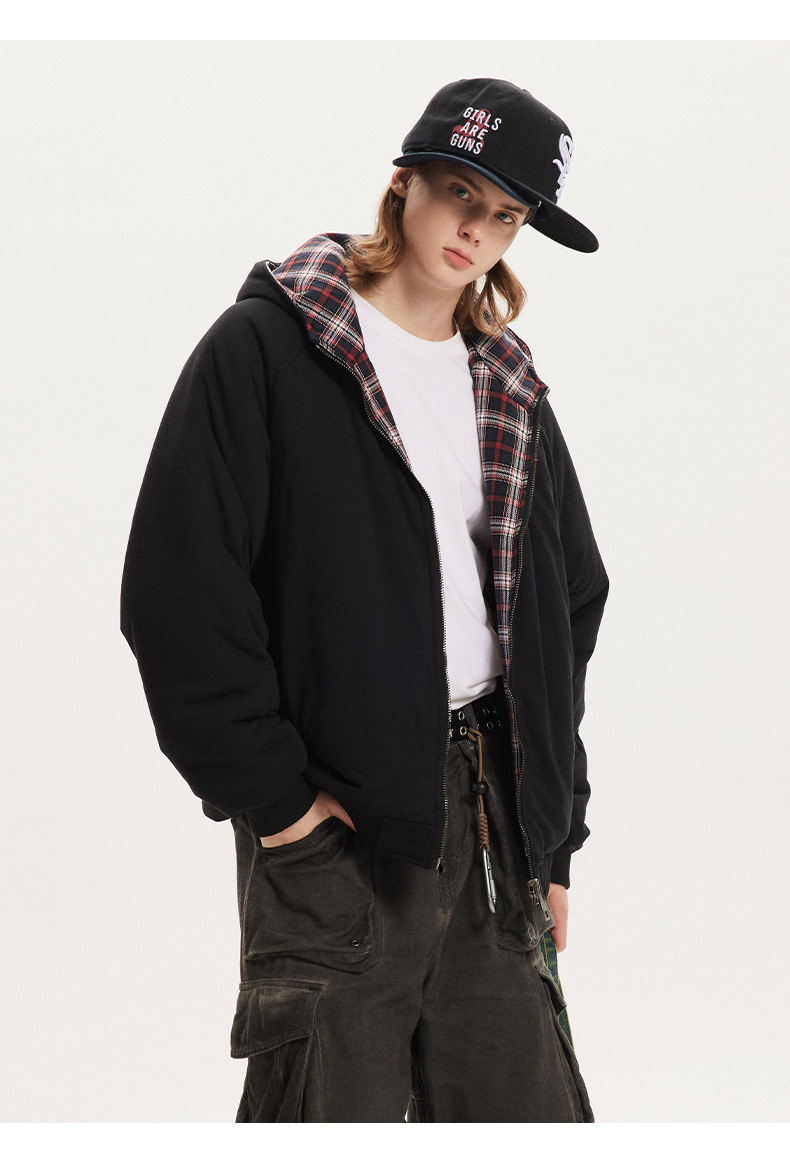 MADEEXTREME Thickened Plaid Double-sided Zip-up Hooded Cotton Jacket
