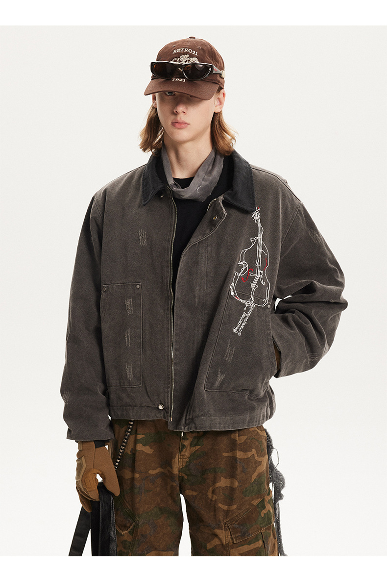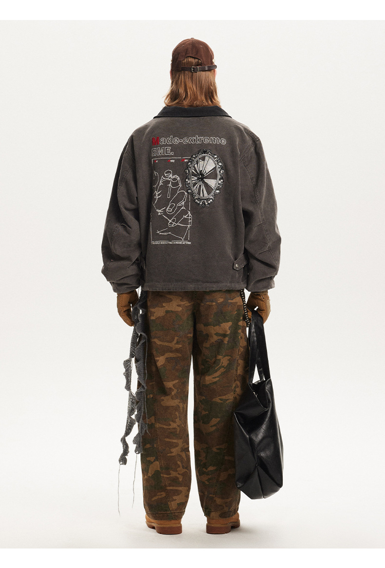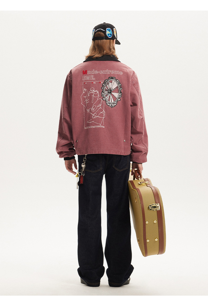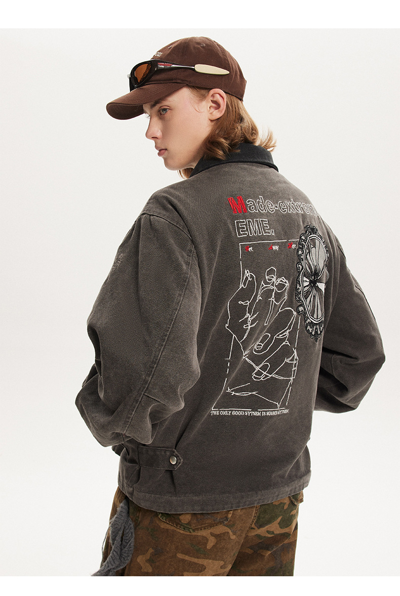 MADEEXTREME Vintage Street Embroidered Lapel Jacket Cotton