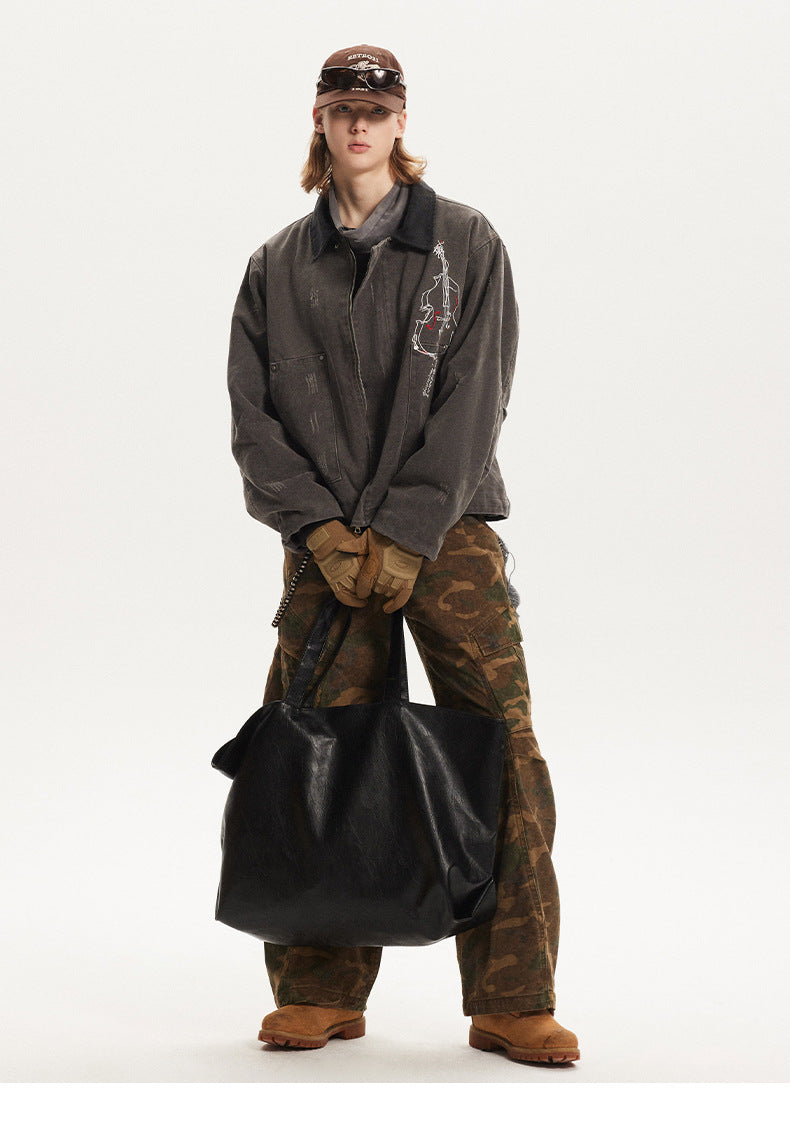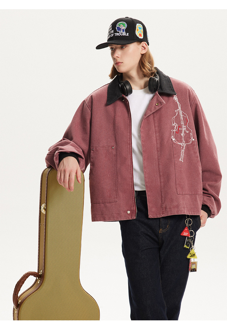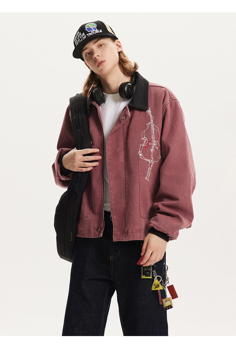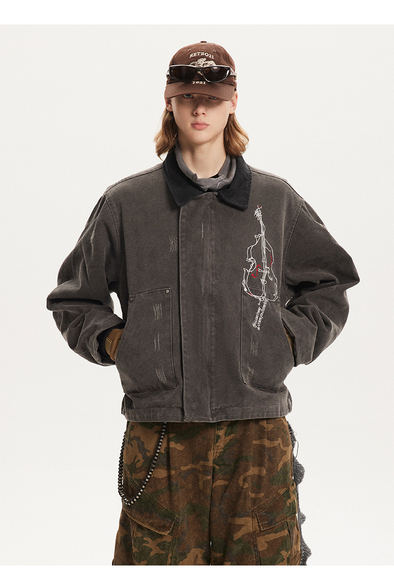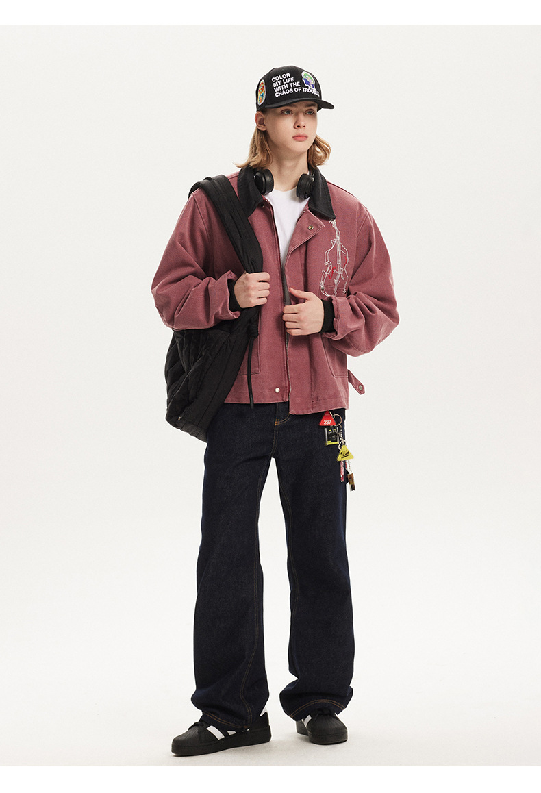 MADEEXTREME Vintage Street Embroidered Lapel Jacket Cotton