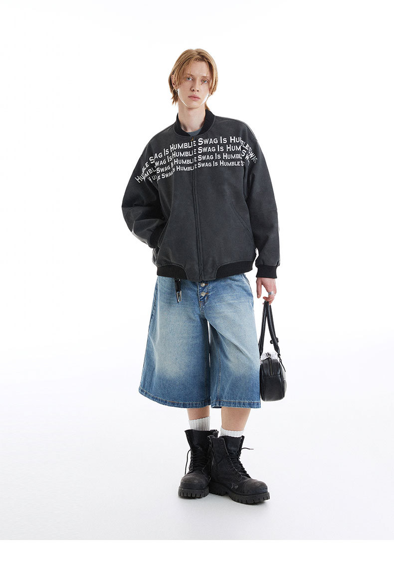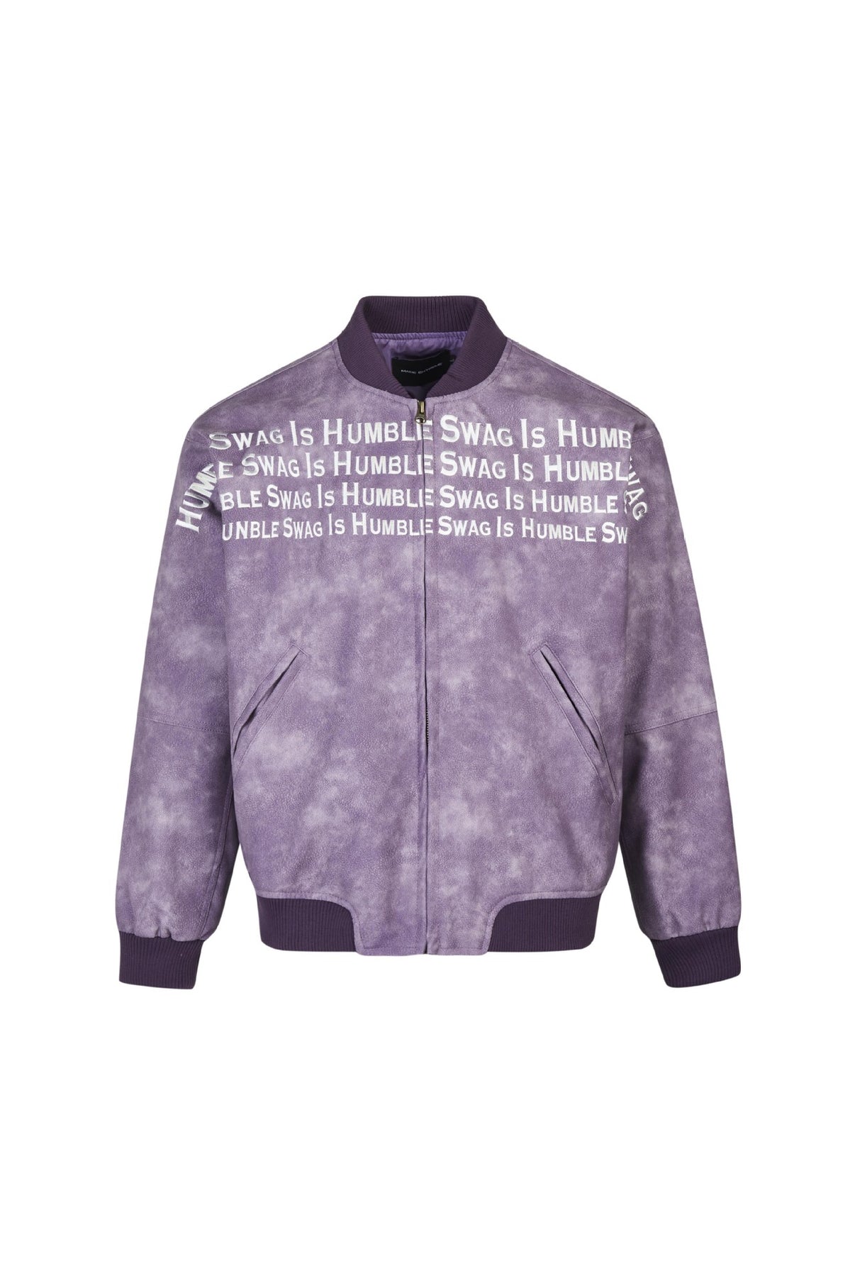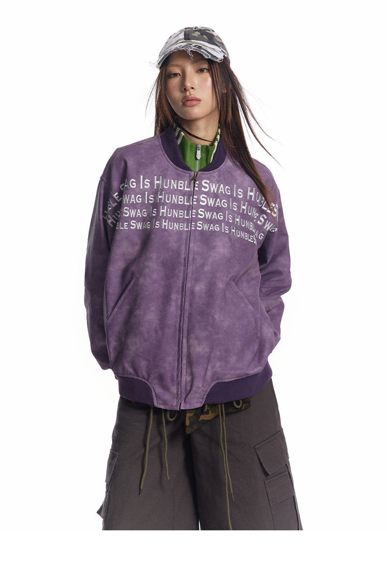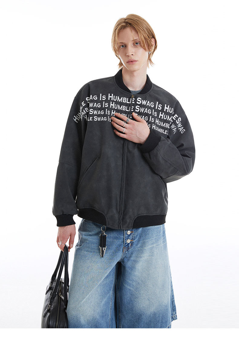 MADEEXTREME Vintage Tie-dye PU Leather Letter Embroidered Jacket
