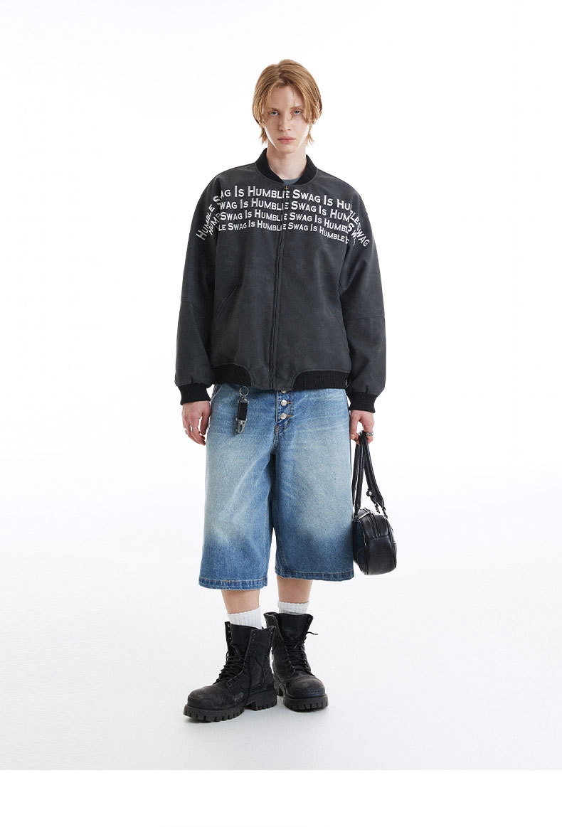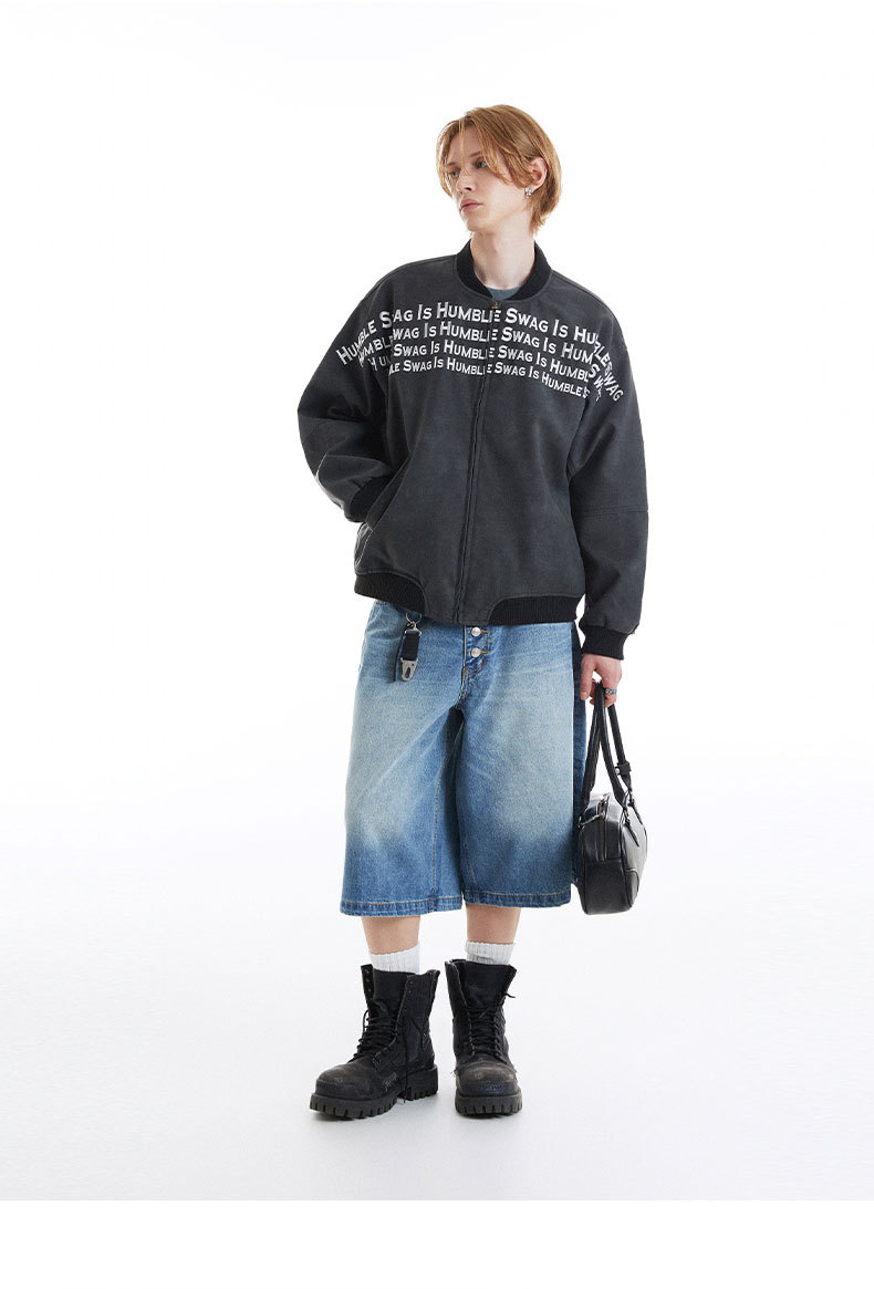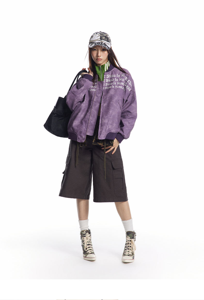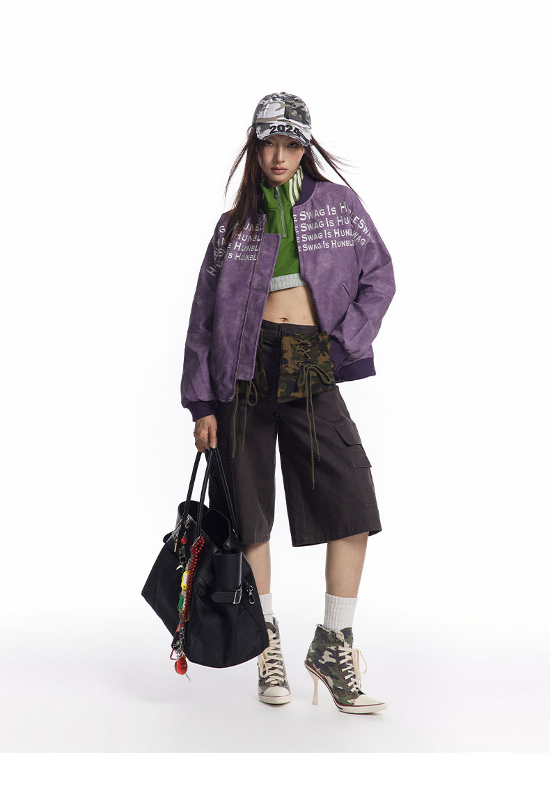 MADEEXTREME Vintage Tie-dye PU Leather Letter Embroidered Jacket