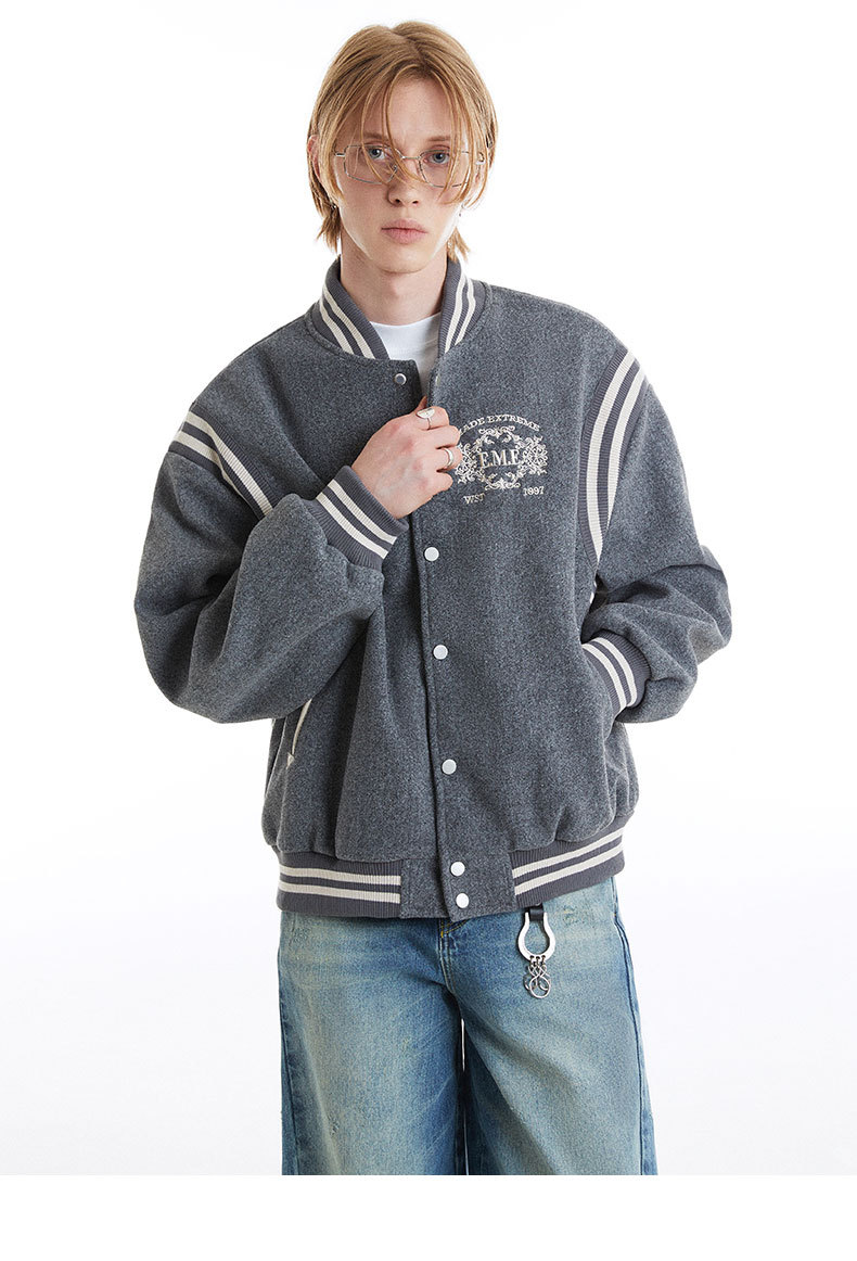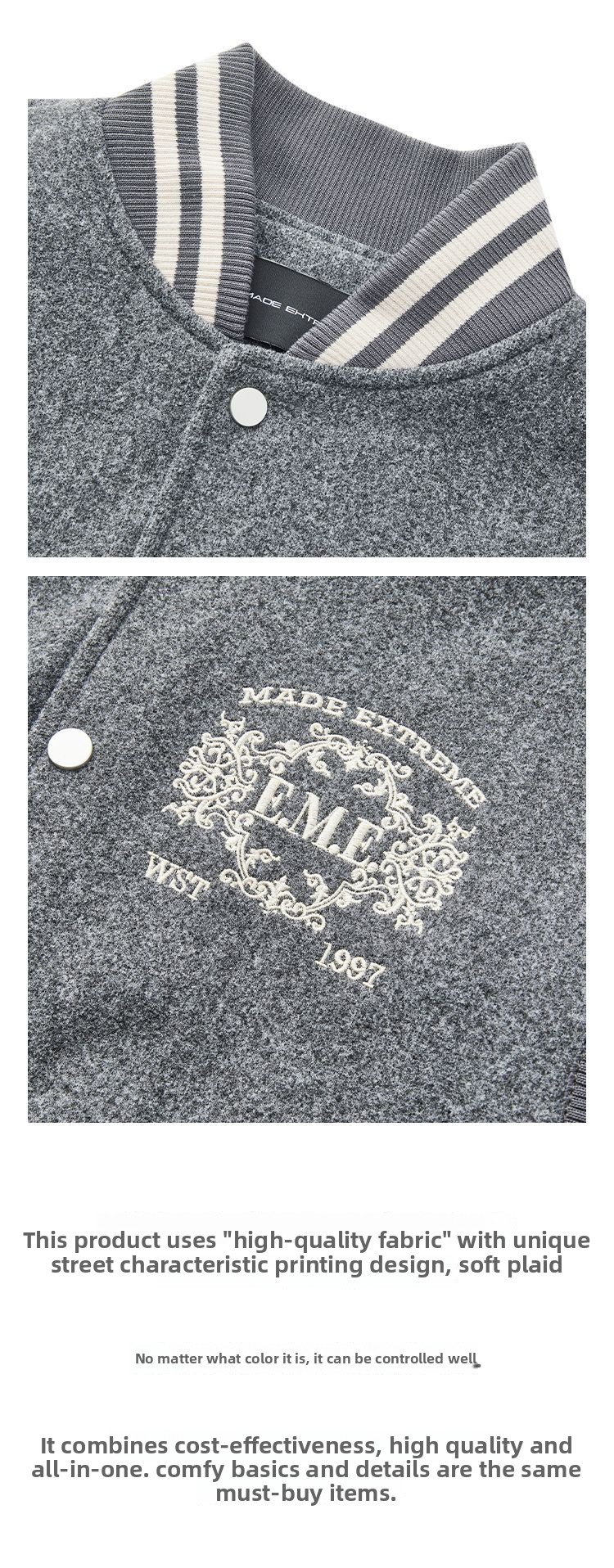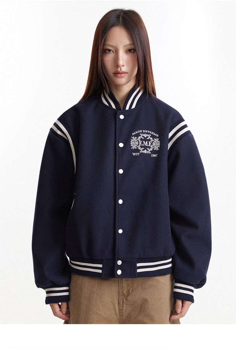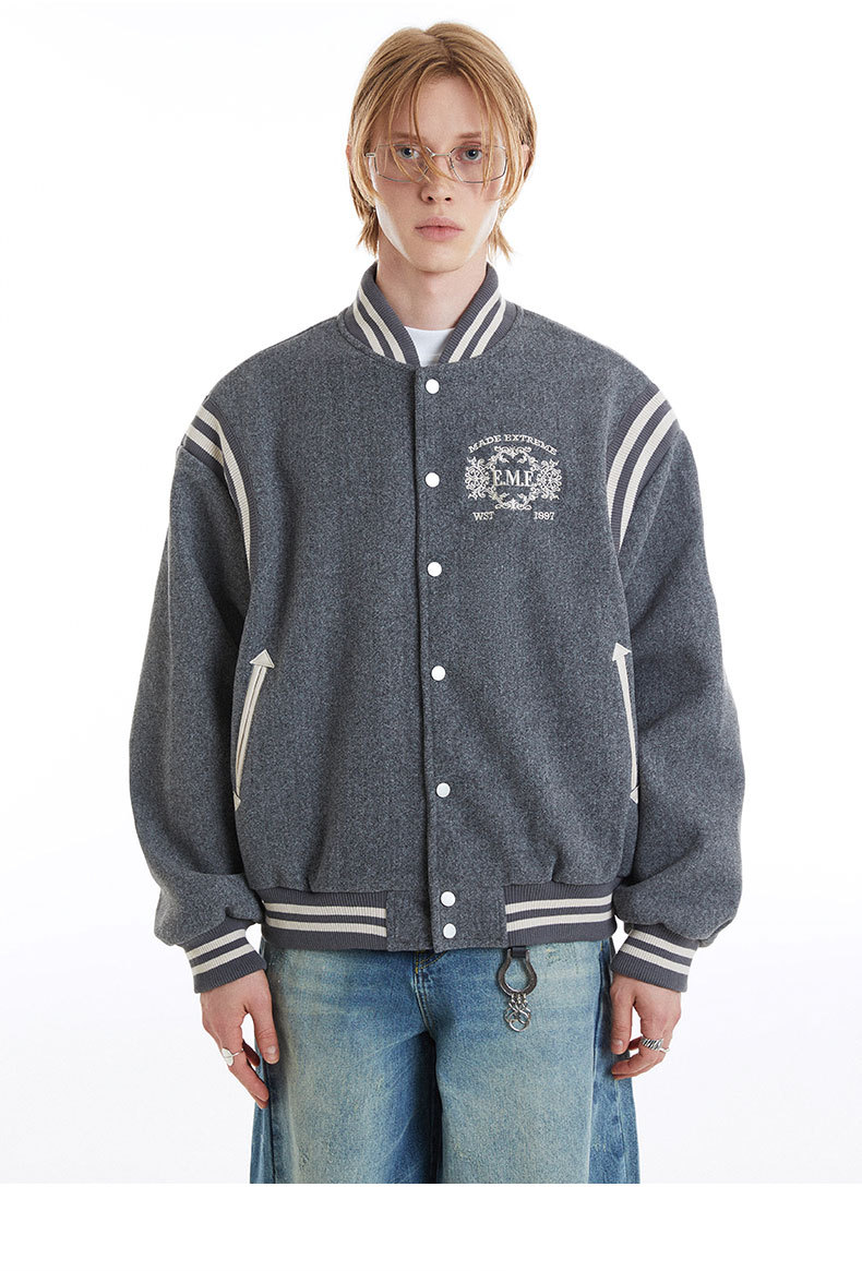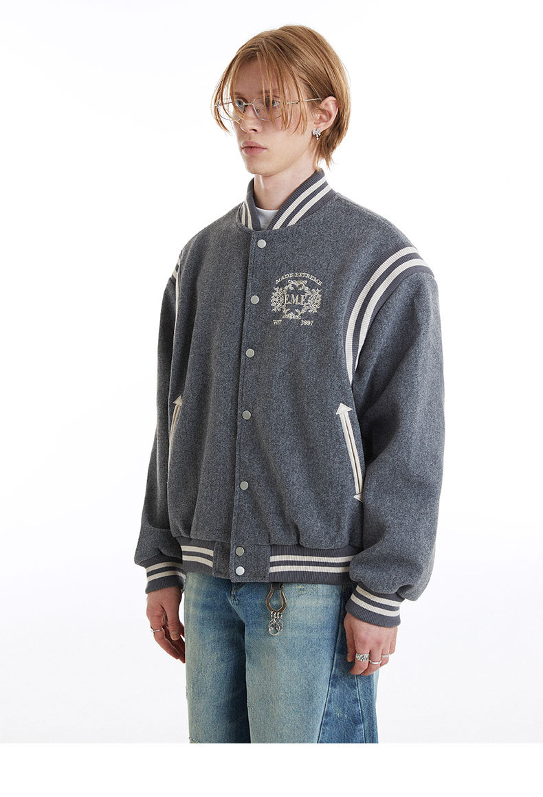 MADEEXTREME Vintage Woolen Badge Letter Embroidered Autumn/winter Casual Cleanfit Jacket Jacket