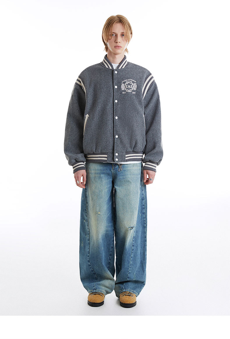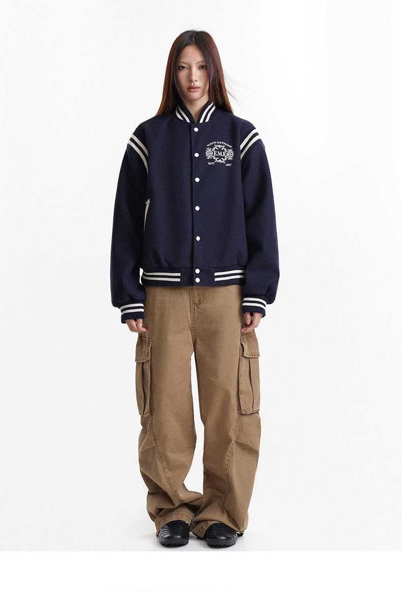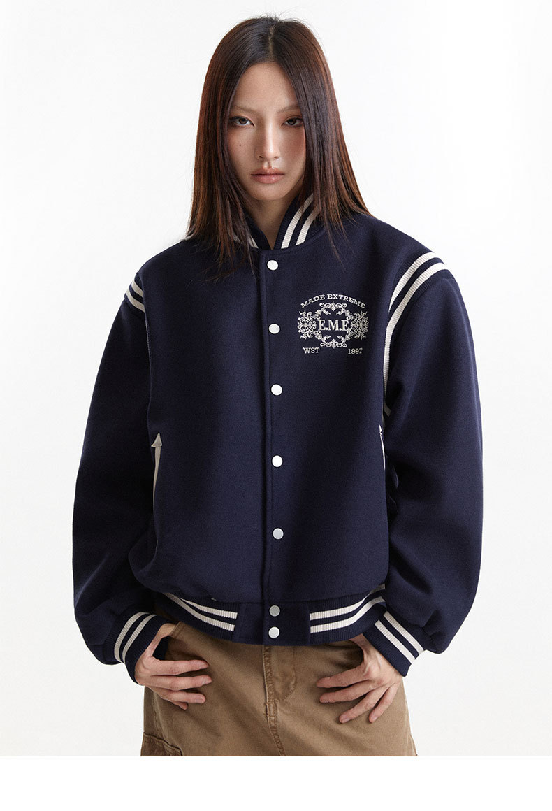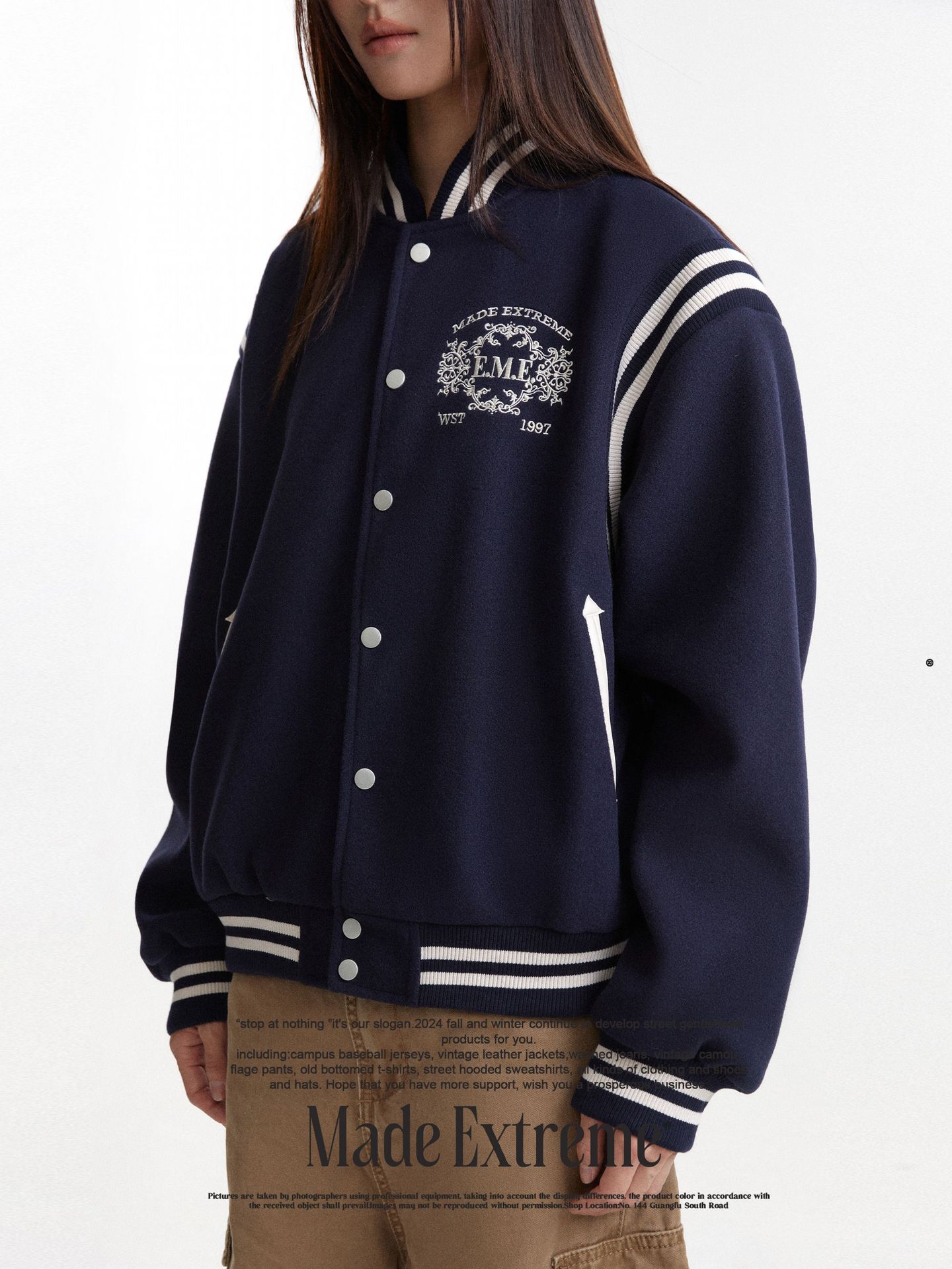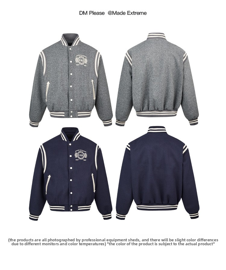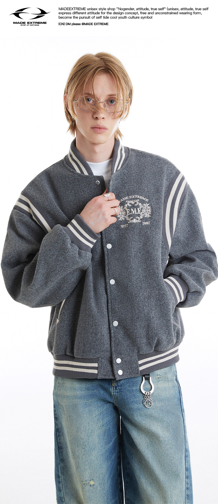 MADEEXTREME Vintage Woolen Badge Letter Embroidered Autumn/winter Casual Cleanfit Jacket Jacket