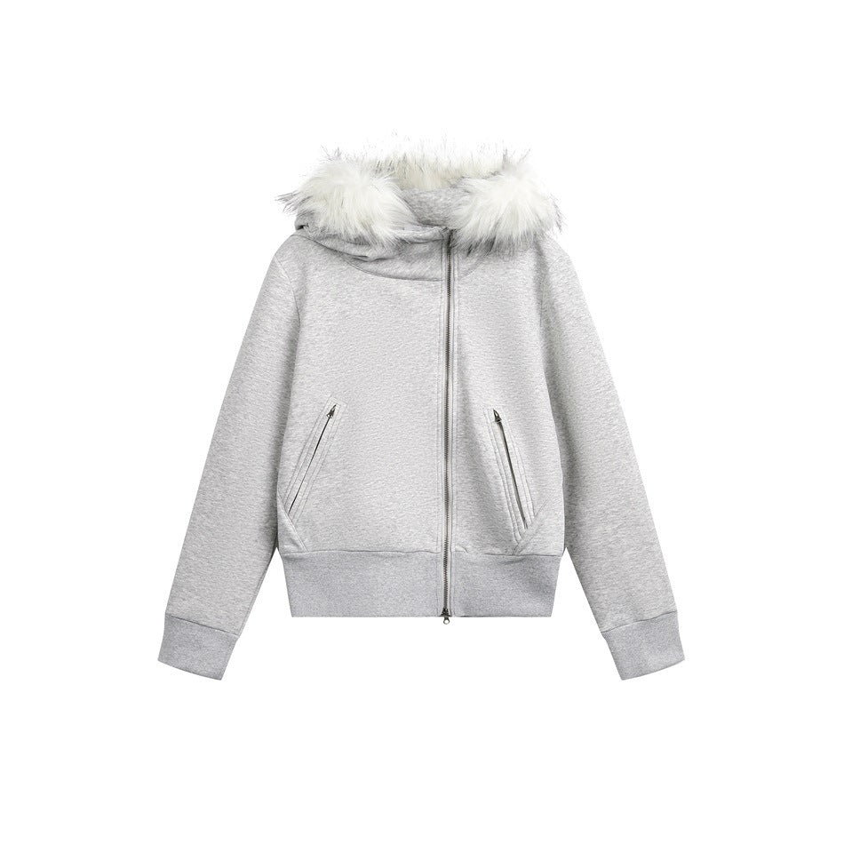 OUSWE Slash Zip Millennial Fur Collar Hooded Jacket