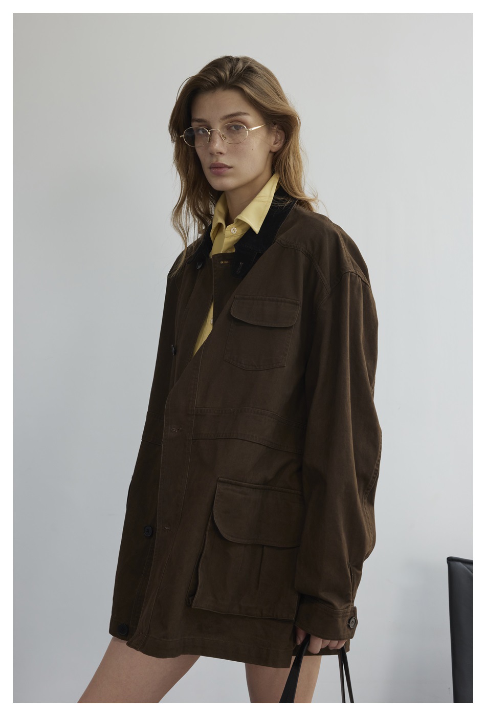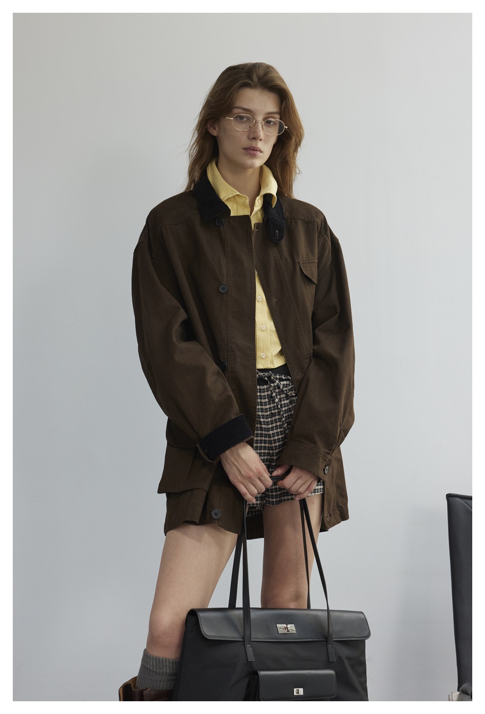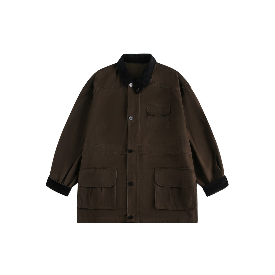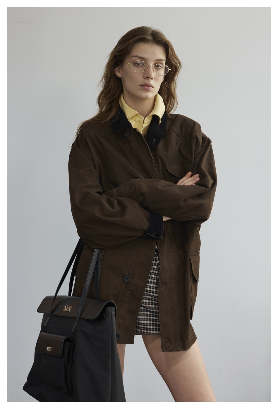 STAFFPICK Premium Sense Retro Trench Coat Medium and Long Loose Hunting Jacket