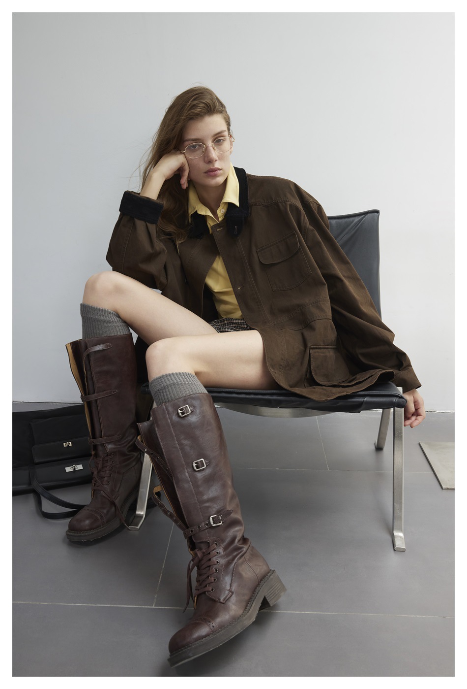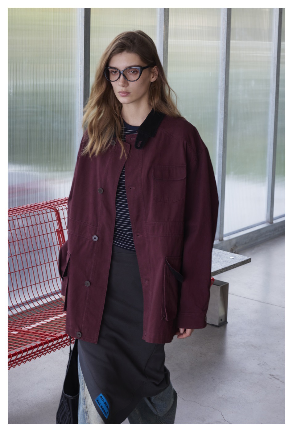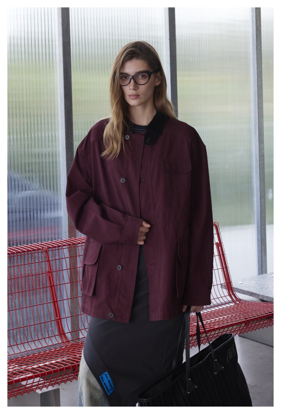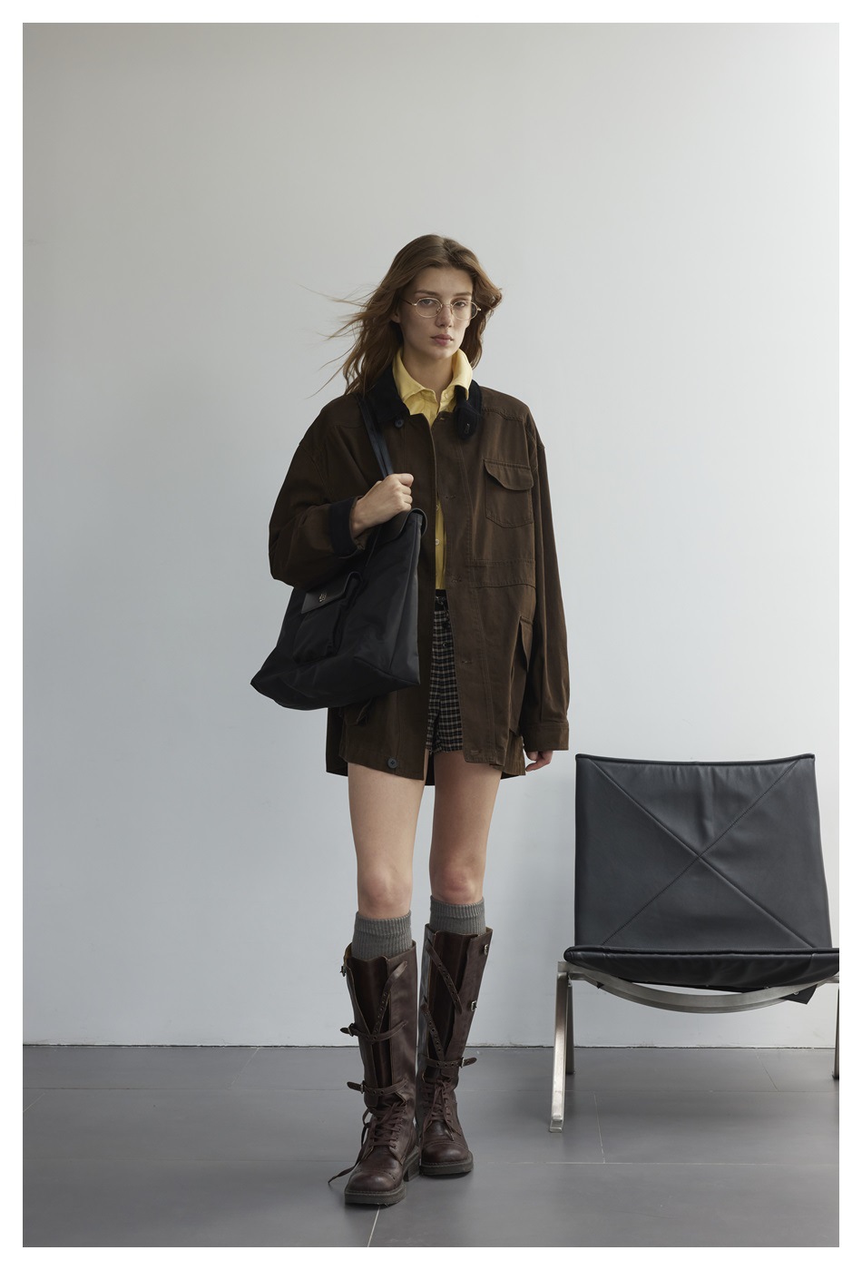STAFFPICK Premium Sense Retro Trench Coat Medium and Long Loose Hunting Jacket
