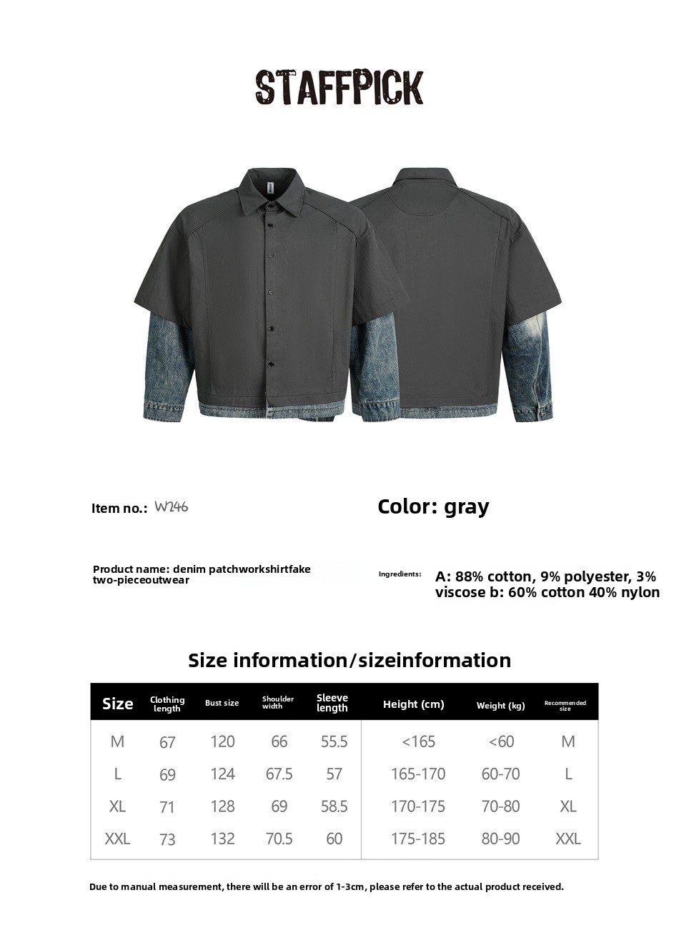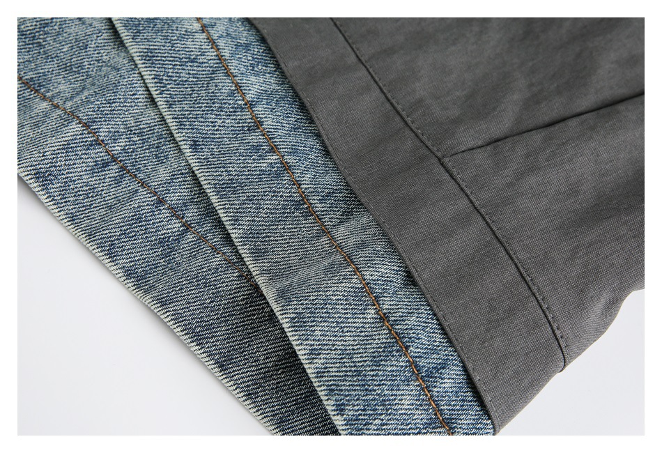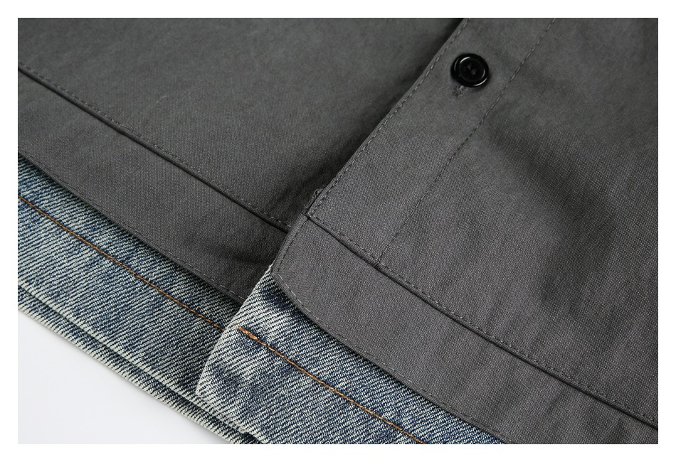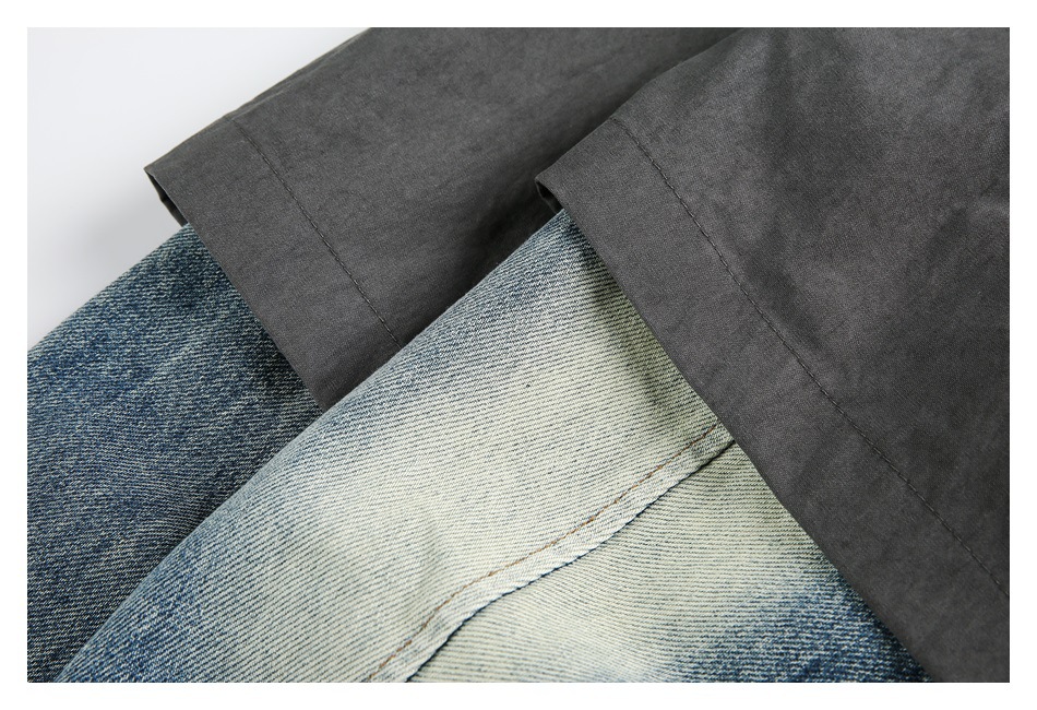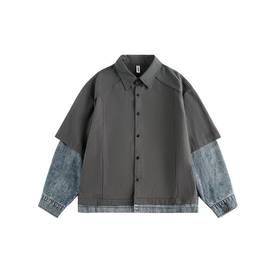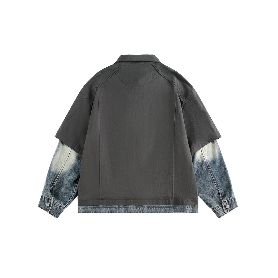 STAFFPICK Vintage Fake Two-piece Spliced Top Washed Denim Jacket