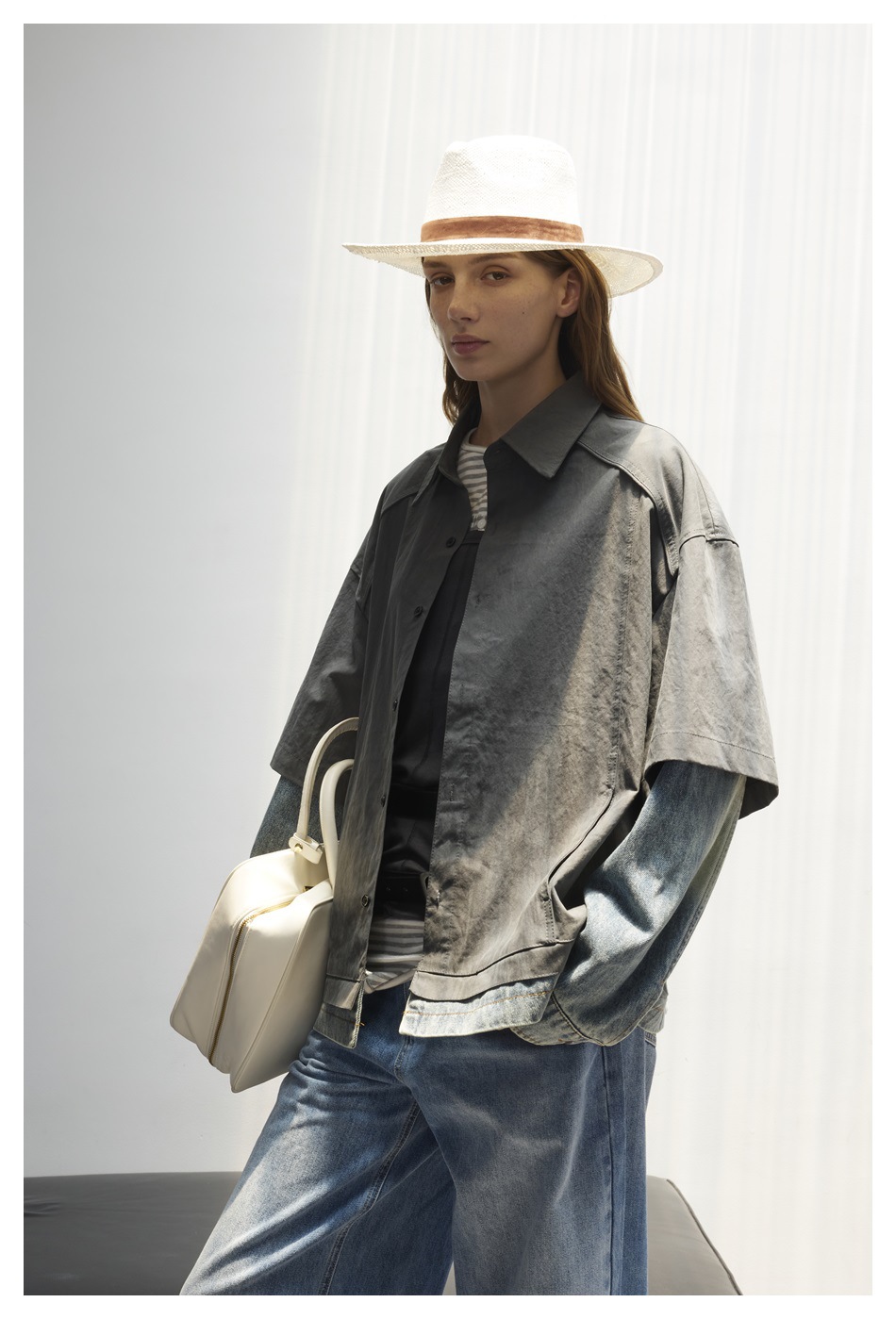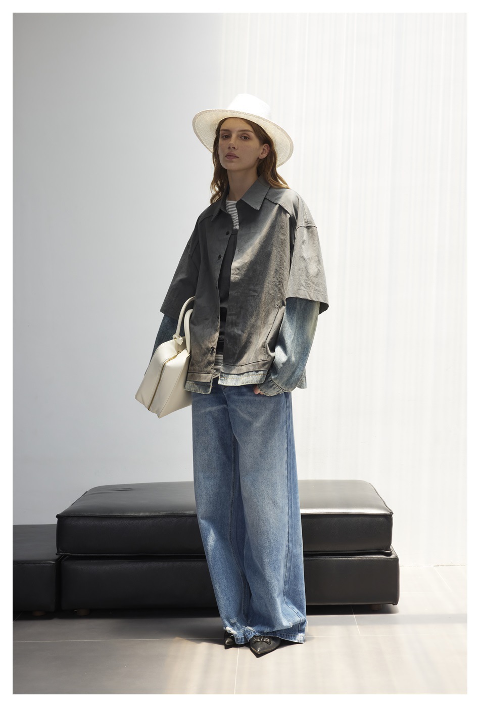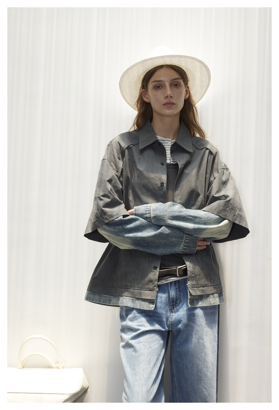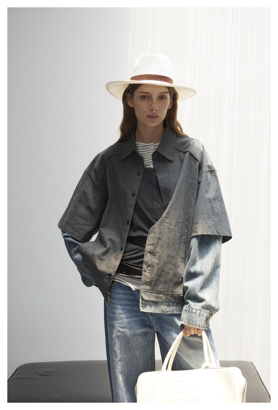 STAFFPICK Vintage Fake Two-piece Spliced Top Washed Denim Jacket