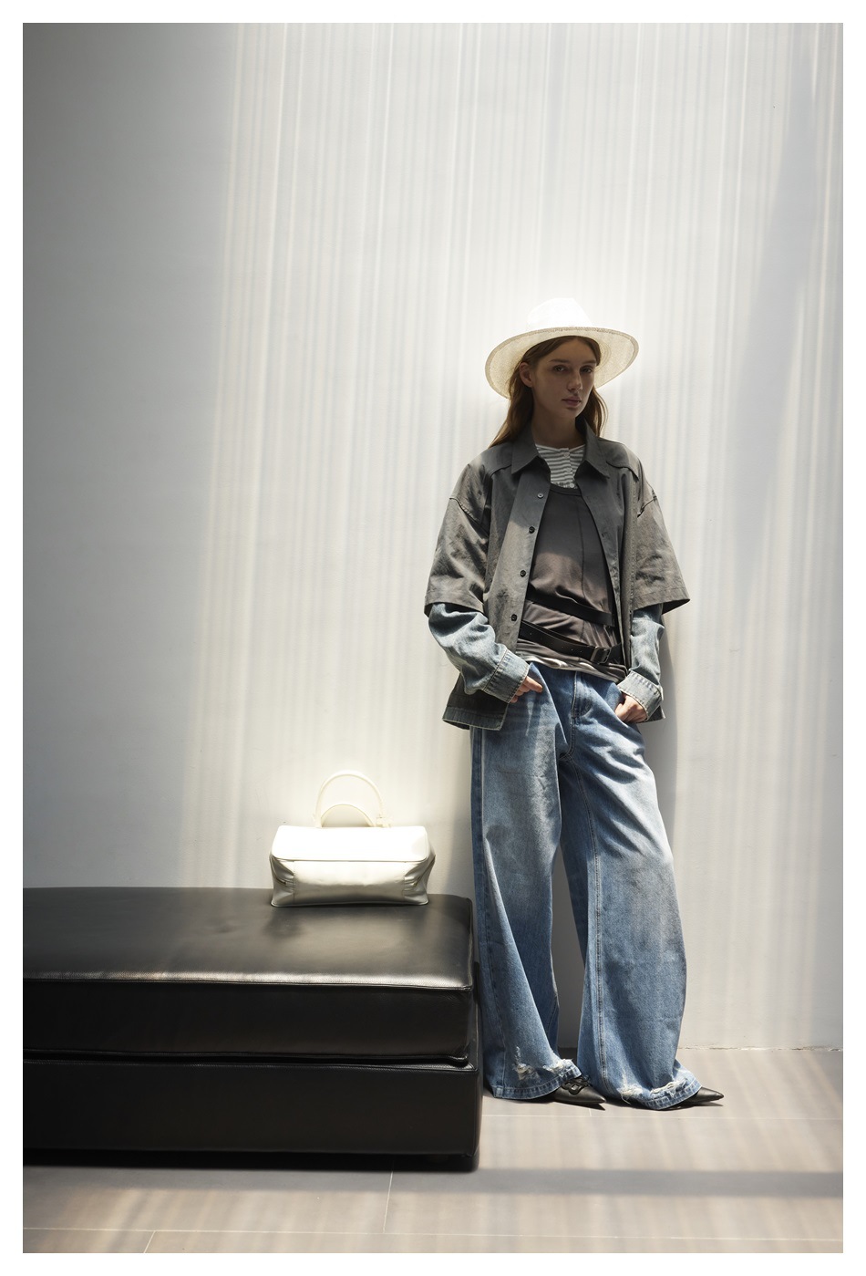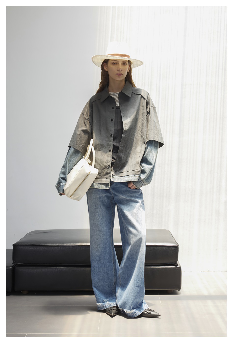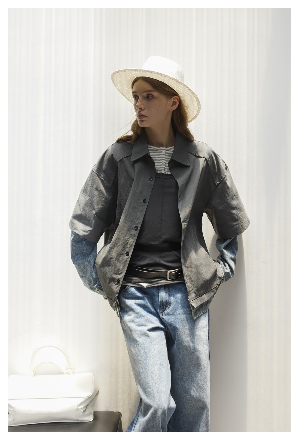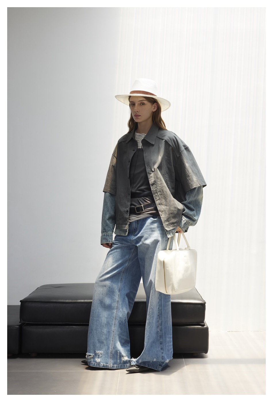 STAFFPICK Vintage Fake Two-piece Spliced Top Washed Denim Jacket
