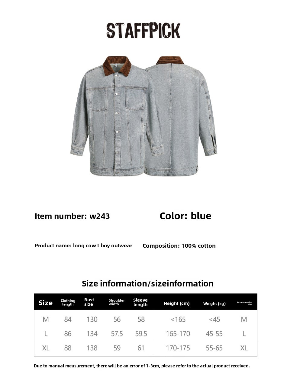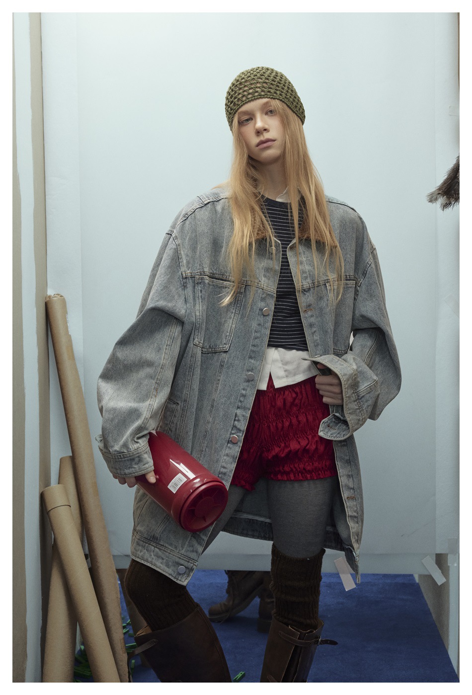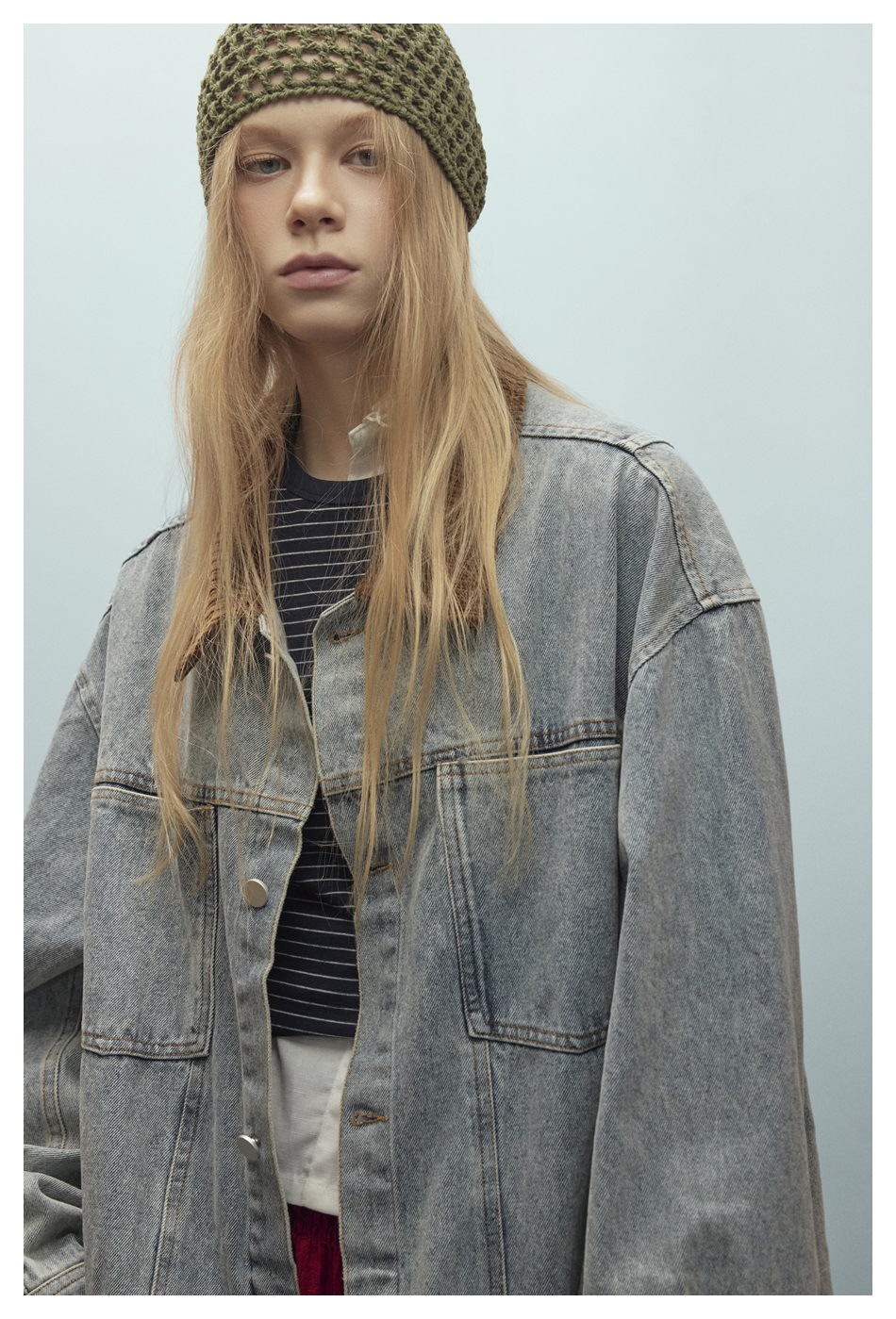 STAFFPICK Vintage Japanese Long Loose Trendy Denim Jacket