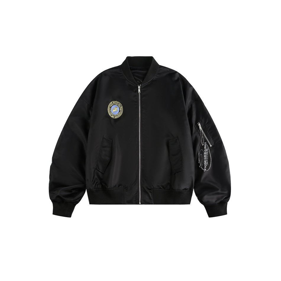Introducing our Loose-Fit Flight Jacket, a delightful blend of retro charm and contemporary style. This baseball collar jacket stands out with its solid color options, making it a versatile addition to your wardrobe.