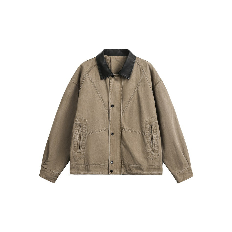 Introducing the Retro Cleanfit Jacket – a stylish and versatile PU Spliced Lapel Jacket designed for both men and women. This exceptional jacket combines contemporary fashion with a classic twist, making it an essential addition to any wardrobe.