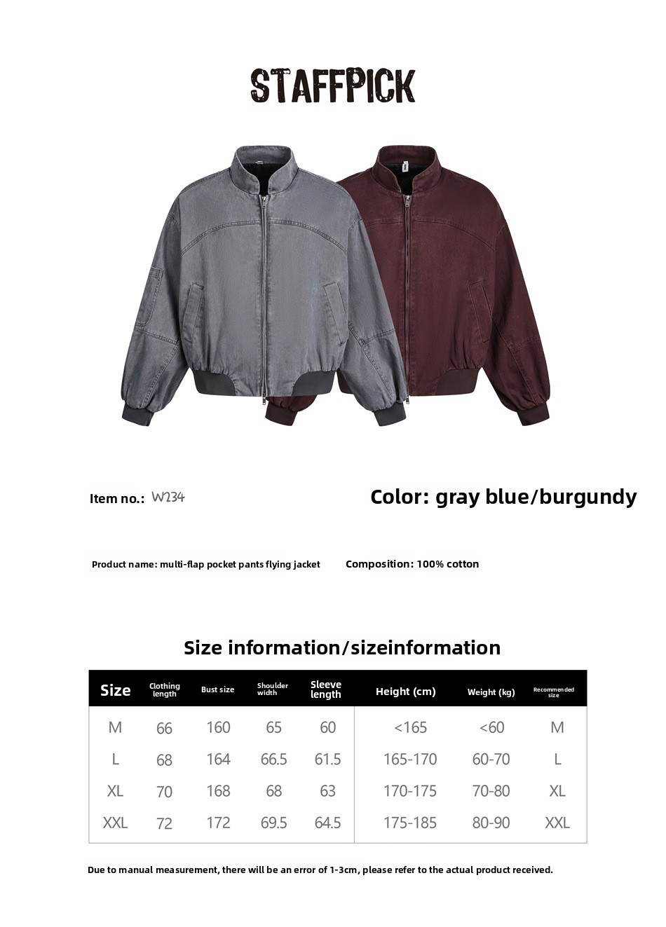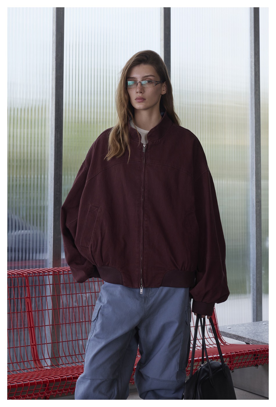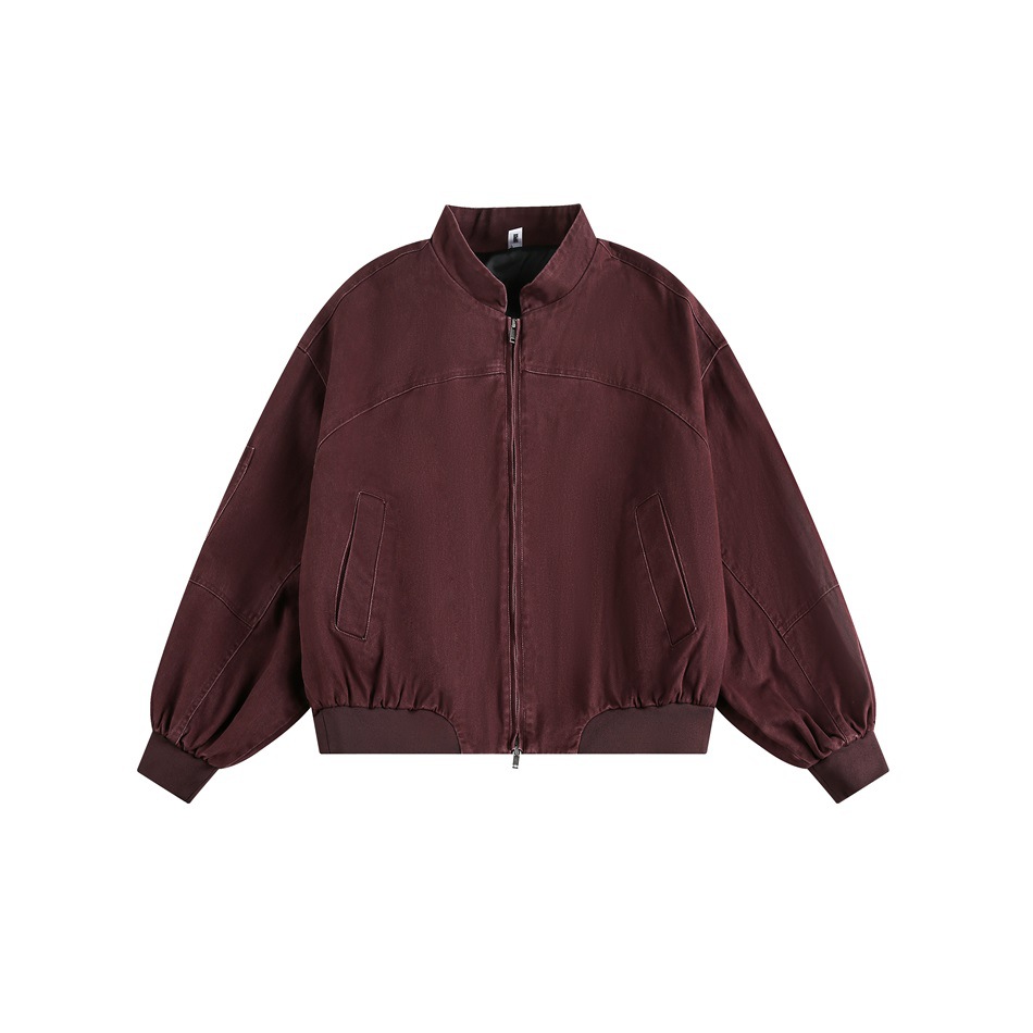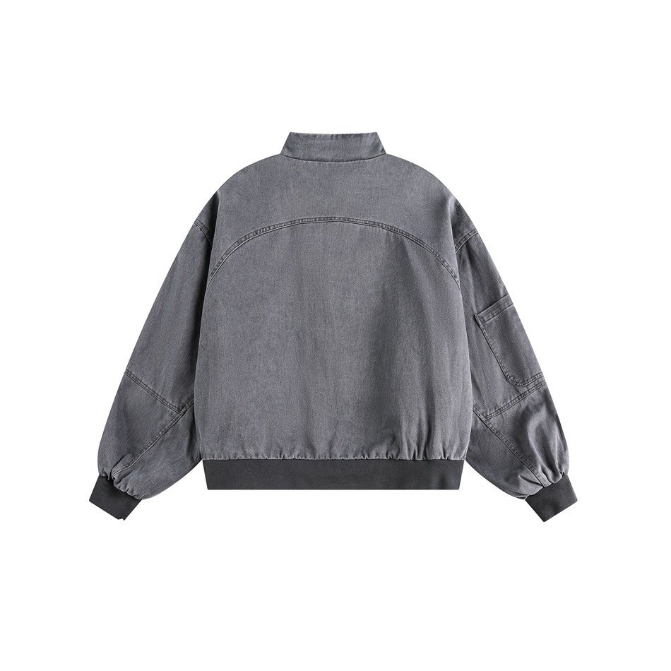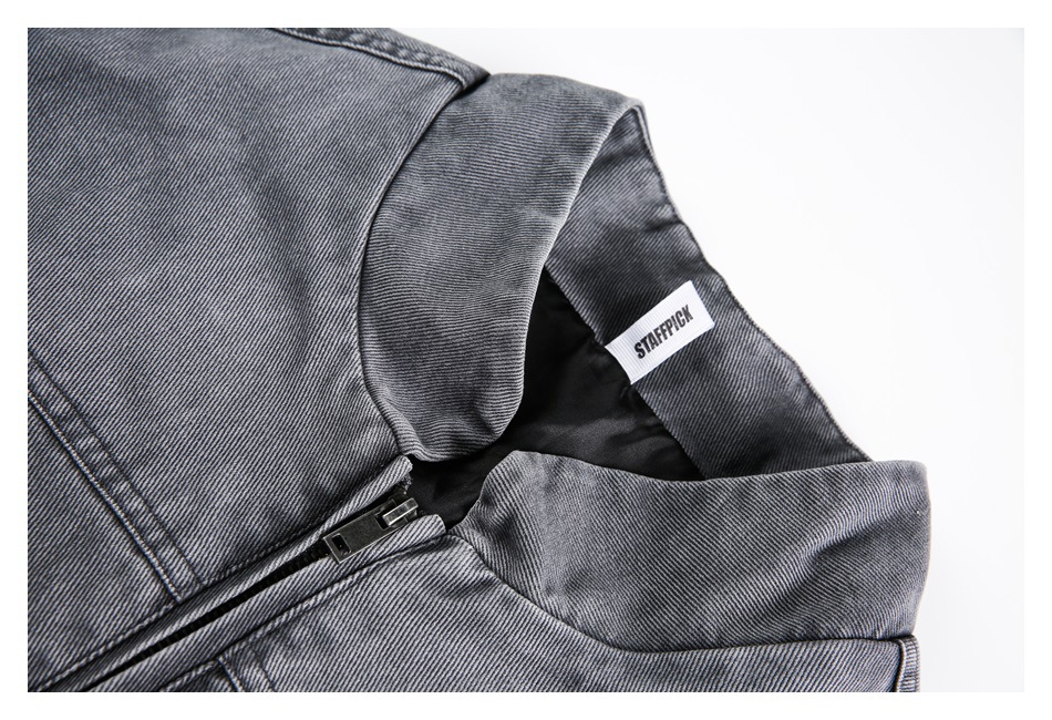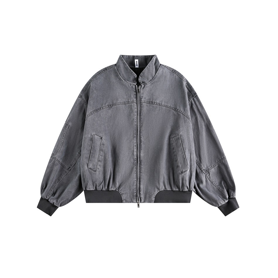 STAFFPICK Trendy Retro Washed Stand-up Collar Bomber Jacket