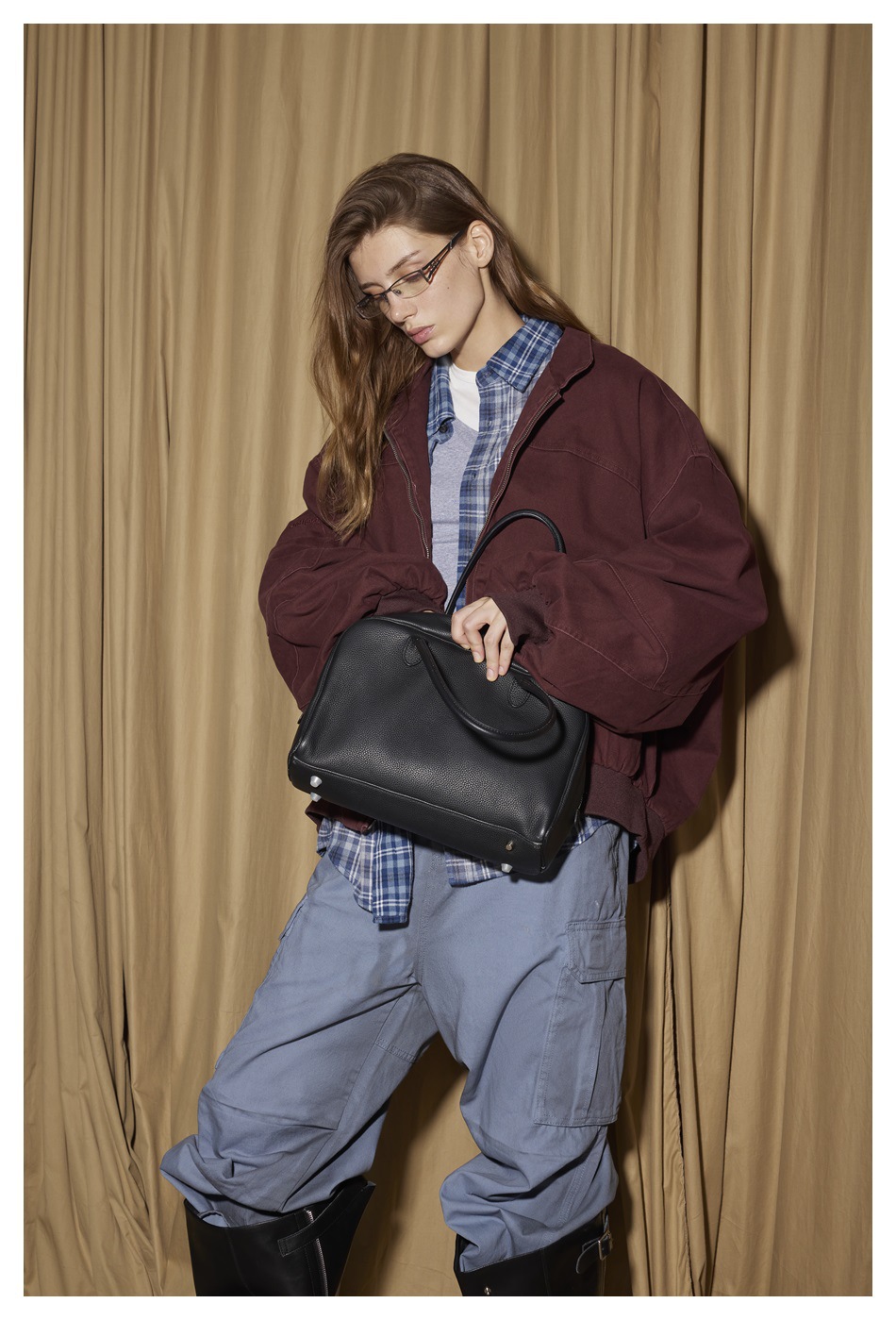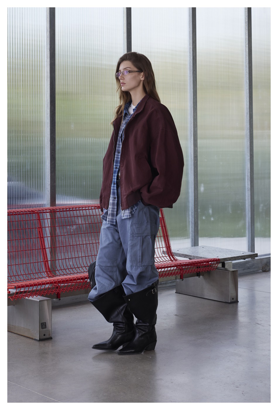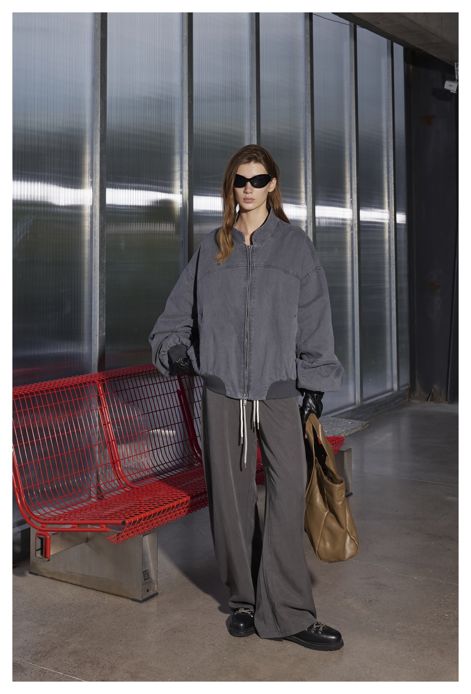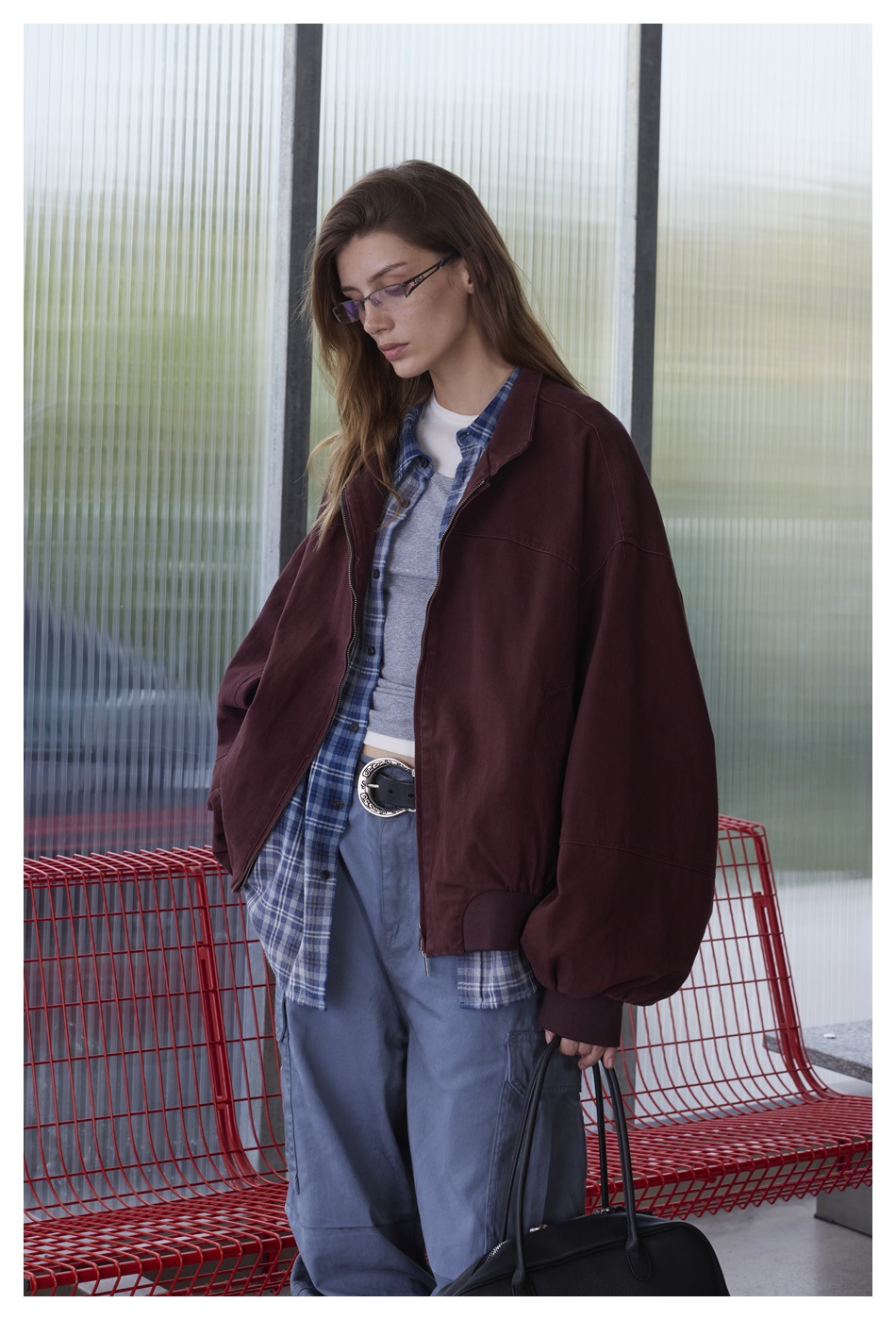 STAFFPICK Trendy Retro Washed Stand-up Collar Bomber Jacket