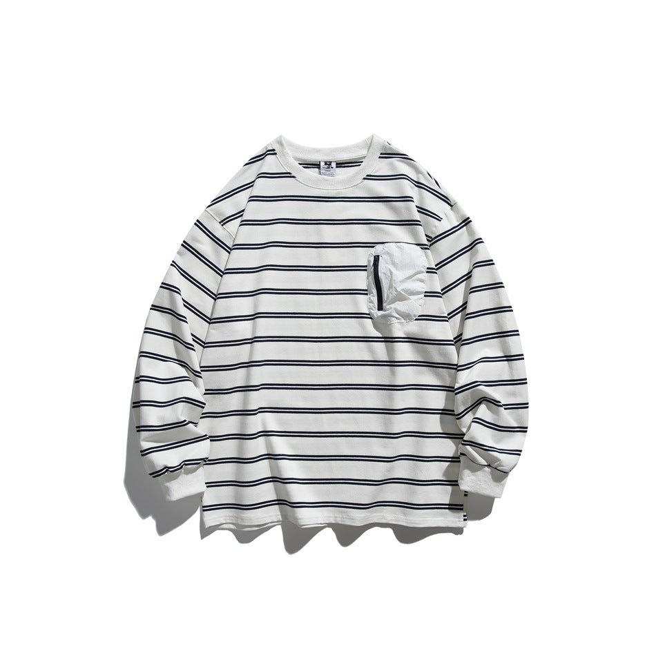 Introducing our Striped Retro Outdoor Crew Neck Sweatshirt, a perfect blend of style and comfort for your casual wardrobe. Designed with an emphasis on minimalist aesthetics, this sweatshirt features a unique three-dimensional pocket that not only adds a touch of sophistication but also offers practical storage for your essentials.