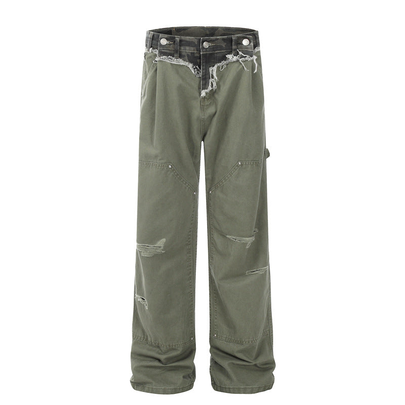 Introducing our Dragging Leisure Pants, a perfect blend of style and comfort designed for both men and women. These workwear-inspired pants feature a unique camouflage patchwork design, accented with trendy distressed details that add a touch of edginess to your wardrobe.