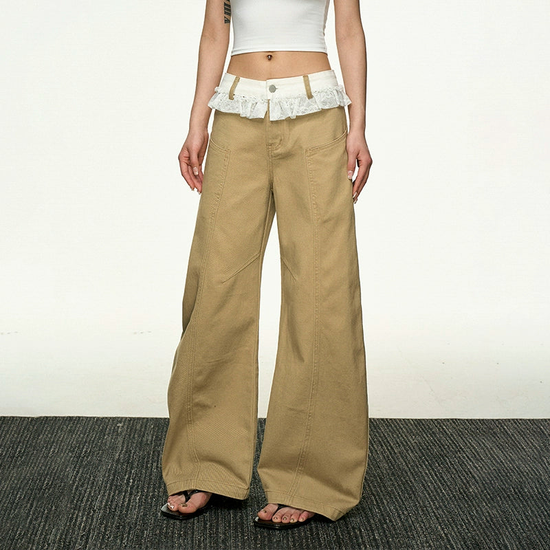 Elevate your style with our Lace Splice Contrast Waistband Casual Pants. These loose-fitting, slimming straight-leg trousers are the ultimate wardrobe staple. Featuring trendy lace splice design, they exude youthful charm and adapt effortlessly to any occasion. The wide leg cut not only offers unparalleled comfort but also enhances your height with a graceful drape. Perfect for any season, these versatile wide leg long pants promise to keep your look fresh and fashionable. Don’t miss out on this must-have piece for a chic and relaxed outfit!