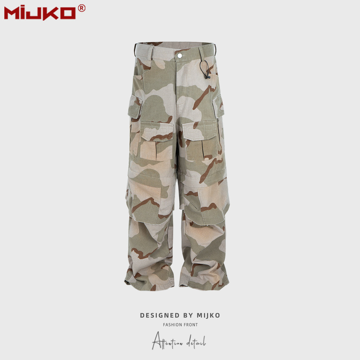 MIJKO Camouflage Multi-pocket Cat Whisker Stitching Velcro Elastic Slacks