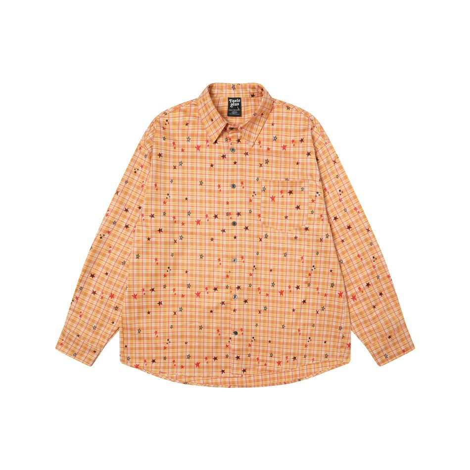 TaelePlus Academy Star Print Plaid Long Sleeve Shirt