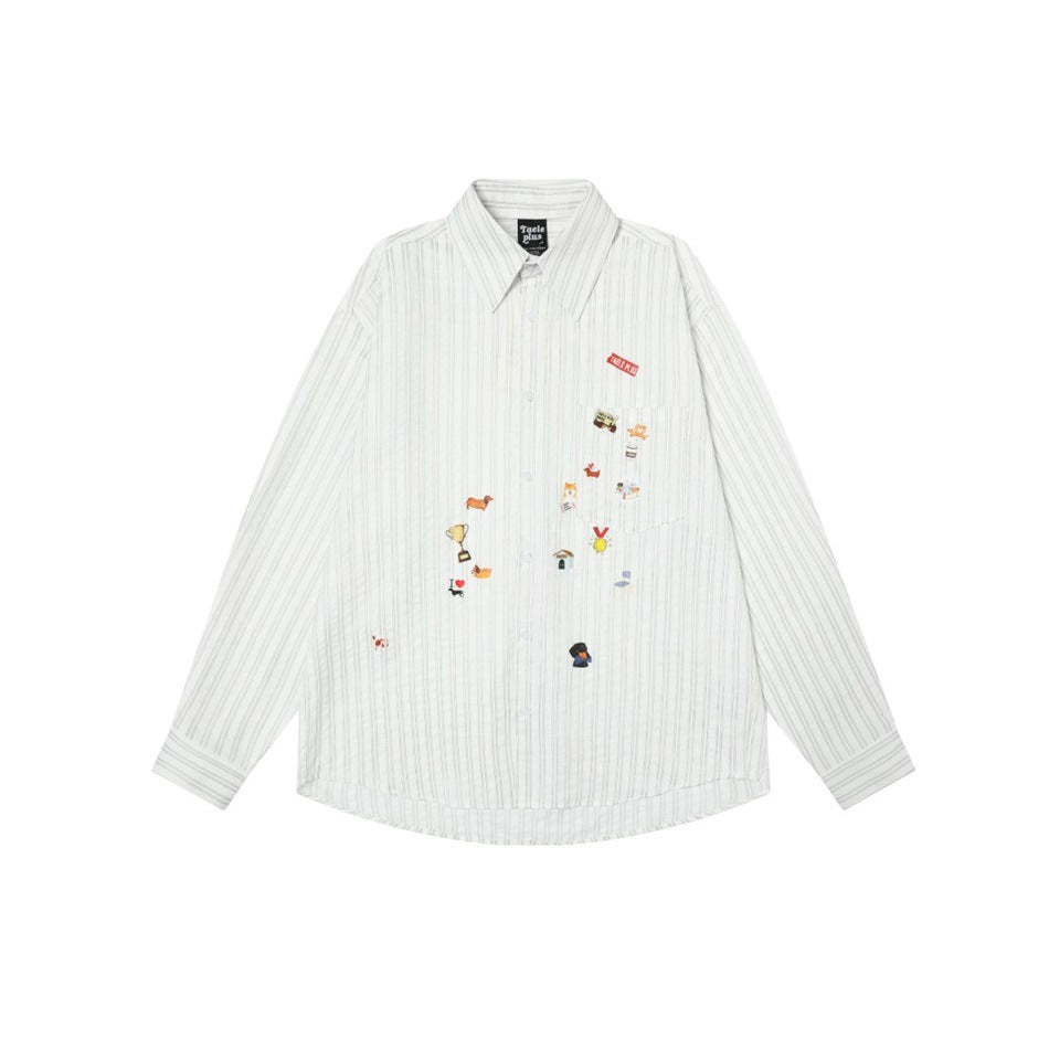 With its combination of style and comfort, this shirt is a fantastic choice for anyone looking to elevate their everyday look. Whether you're dressing it up or down, our Striped Cartoon Print Shirt is a must-have for anyone aiming to express their individuality in a fashionable and carefree manner. Embrace the fusion of playful design and timeless stripes with this trendy staple that seamlessly integrates into any wardrobe.