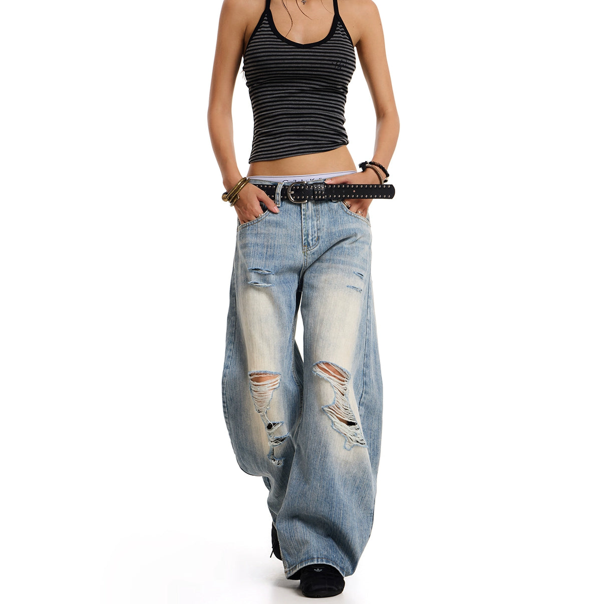 Made with a trendy washed finish and designed with cool distressing, these jeans effortlessly channel that retro streetwear look that’s so in right now. Whether you’re heading out with friends or just lounging around, they’re perfect for any occasion. The wide-leg design is They capture that youthful spirit with a laid-back, cool vibe that’s definitely on-trend. So, if you’re looking for a pair of jeans that are both stylish and functional, these are the ones to grab!