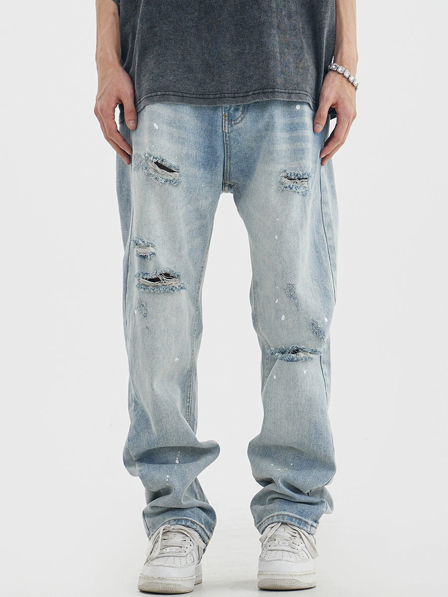 Featuring innovative torn and distressed detailing, this design is not only eye-catching but also embodies a **novel take on classic denim**, ensuring you stand out in any crowd. The **draping quality** of the fabric provides exceptional comfort and versatility, making these jeans suitable for any casual occasion.