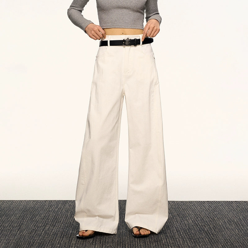 Introducing our chic **Slimming Floor-Length Pants**, the ultimate addition to your wardrobe! These elegant white straight-leg casual pants are designed specifically for women who value both comfort and style. With their loose, wide-leg silhouette, these versatile pants will quickly become your go-to choice for any occasion.