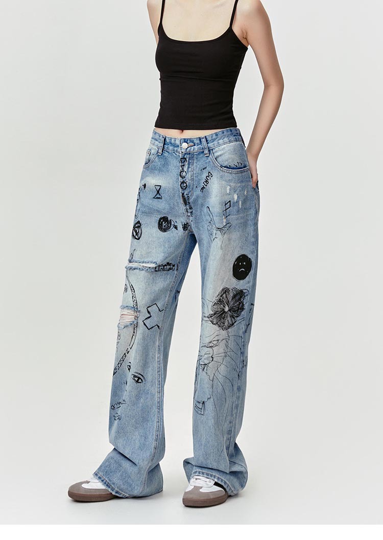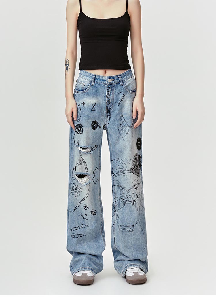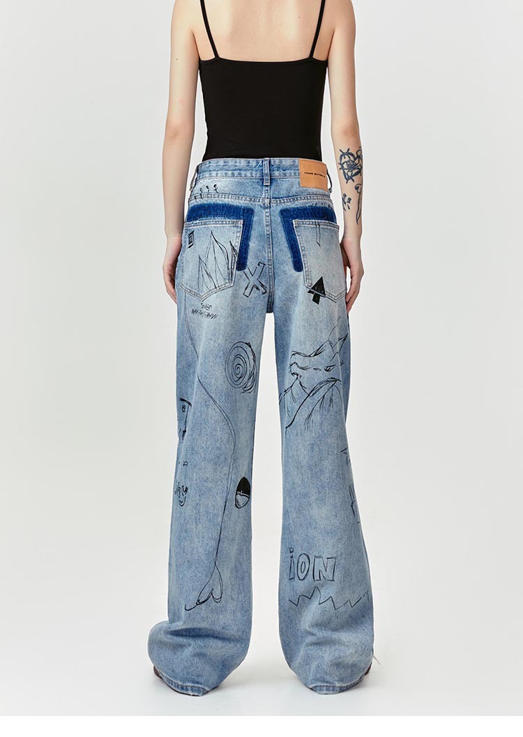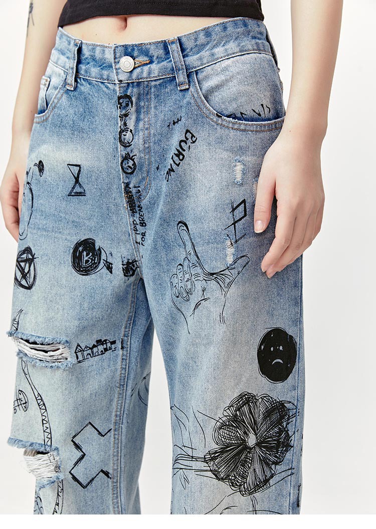 MADEEXTREME Graffiti Fun Niche Print Jeans