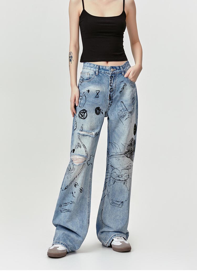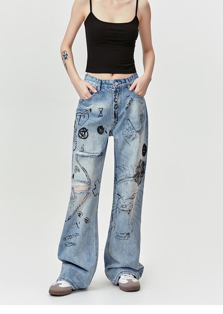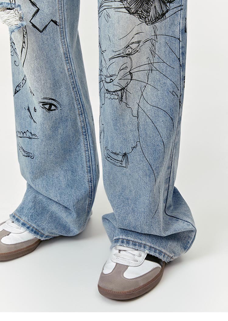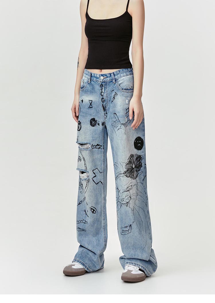 MADEEXTREME Graffiti Fun Niche Print Jeans